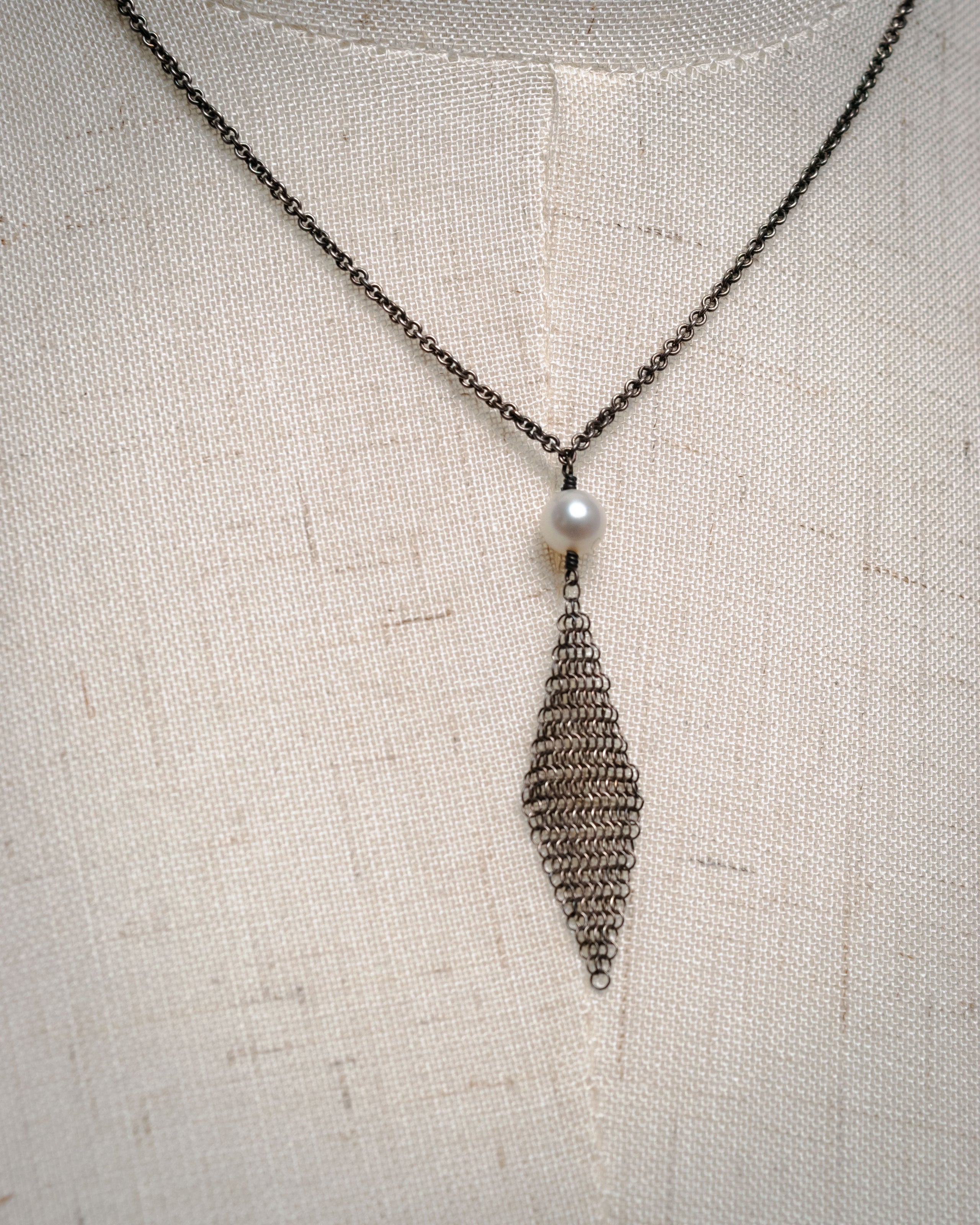 “TIFFANY & CO.” 1990-2005 Pearl mesh drop necklace