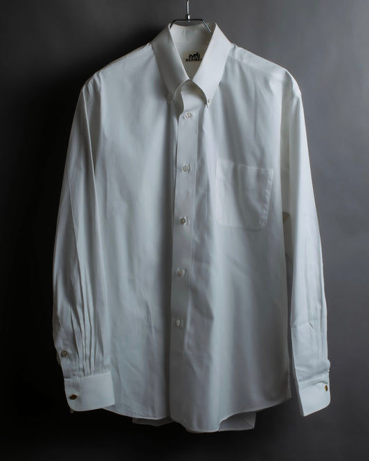 “HERMES” 80’s clou de selle-button jacquard dress shirt -