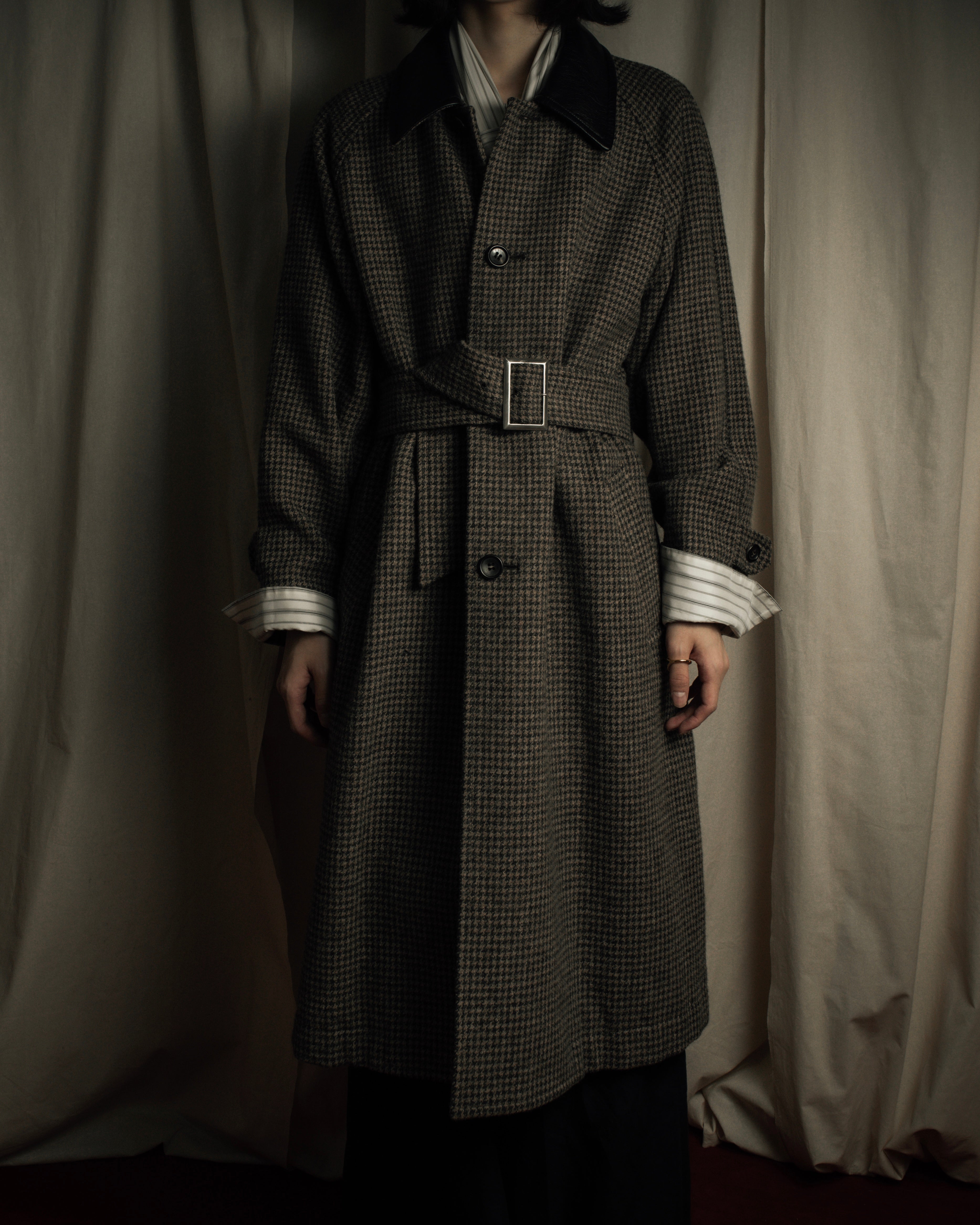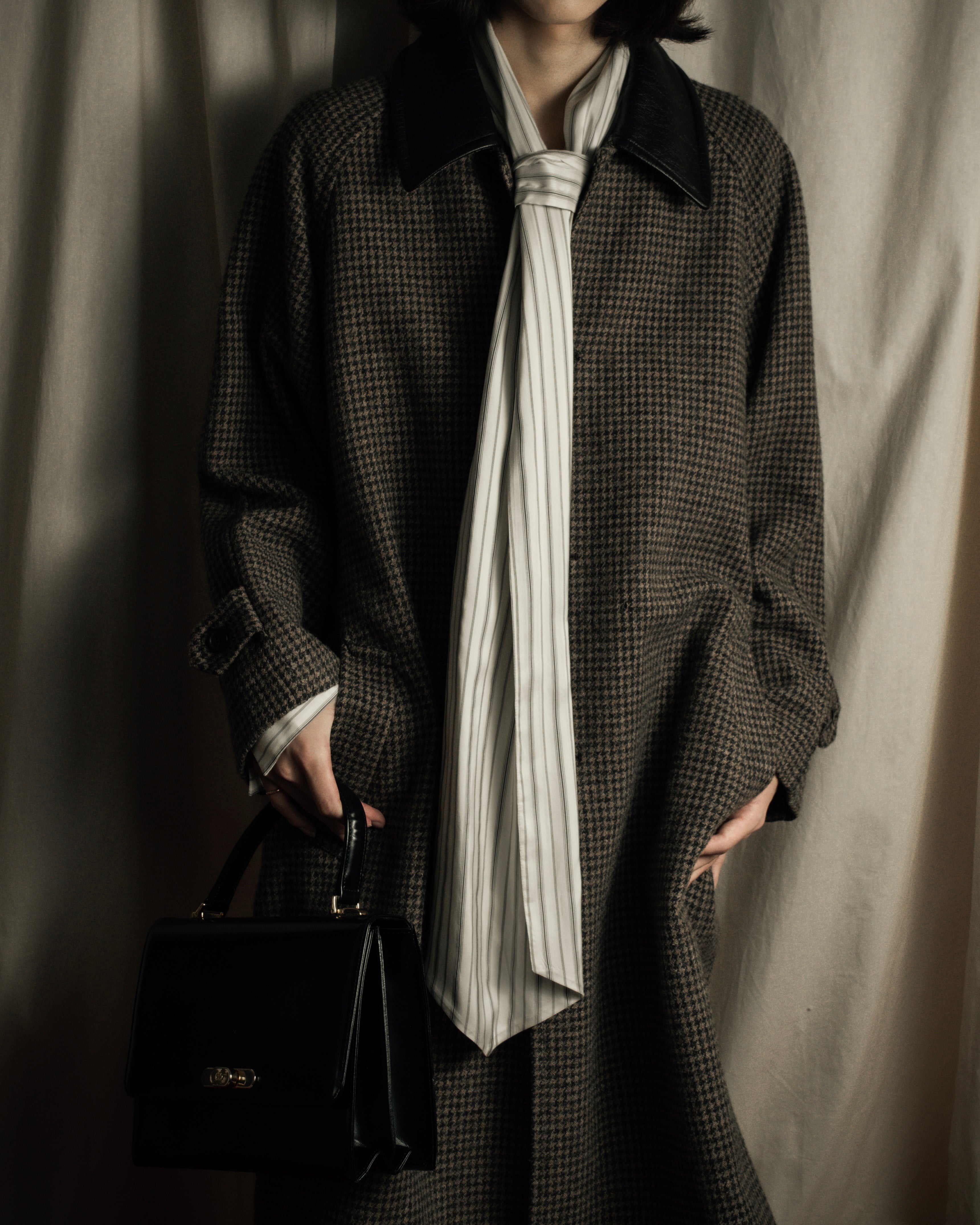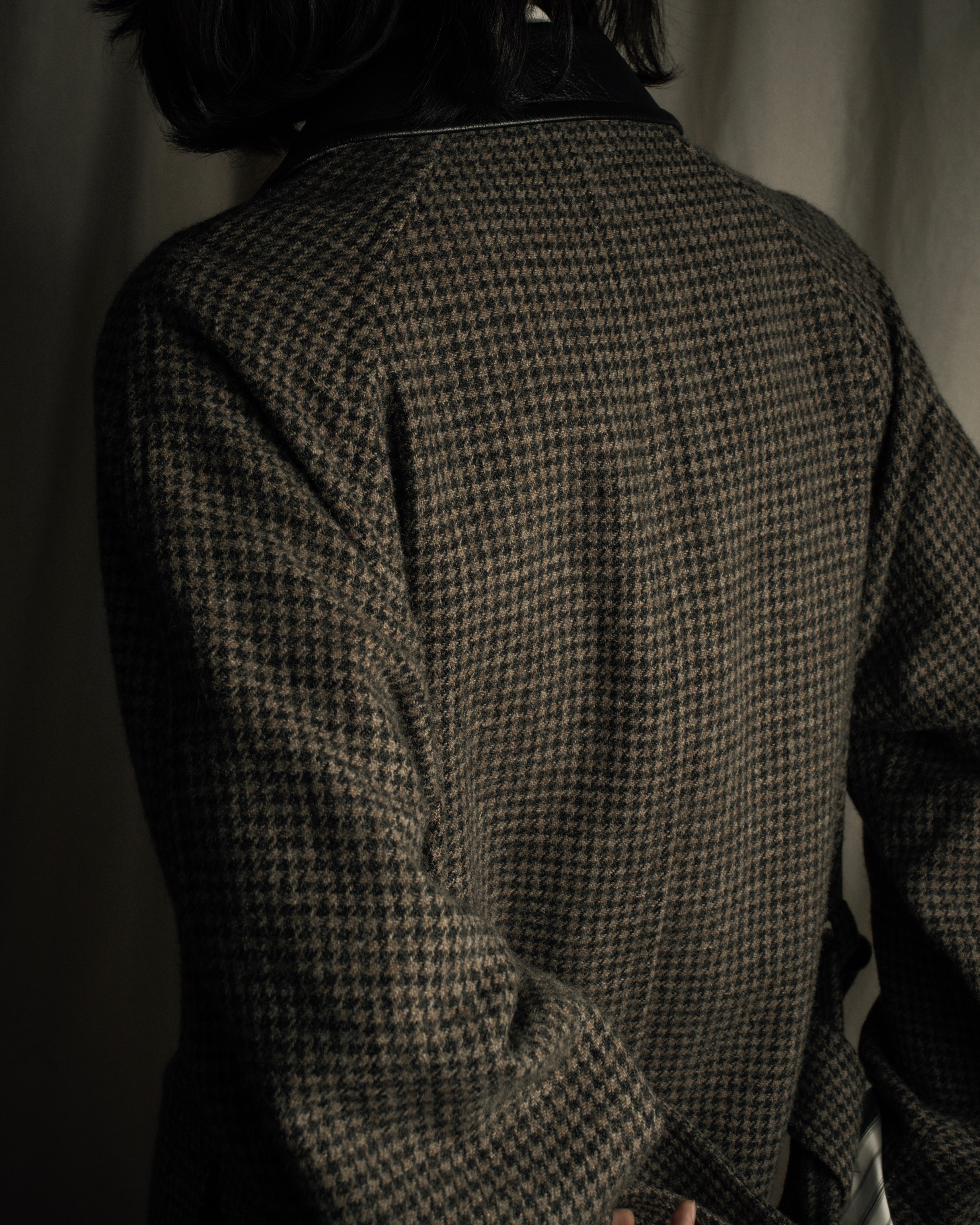 "tricot COMME des GARCONS" Leather collar design houndstooth pattern oversized long coat