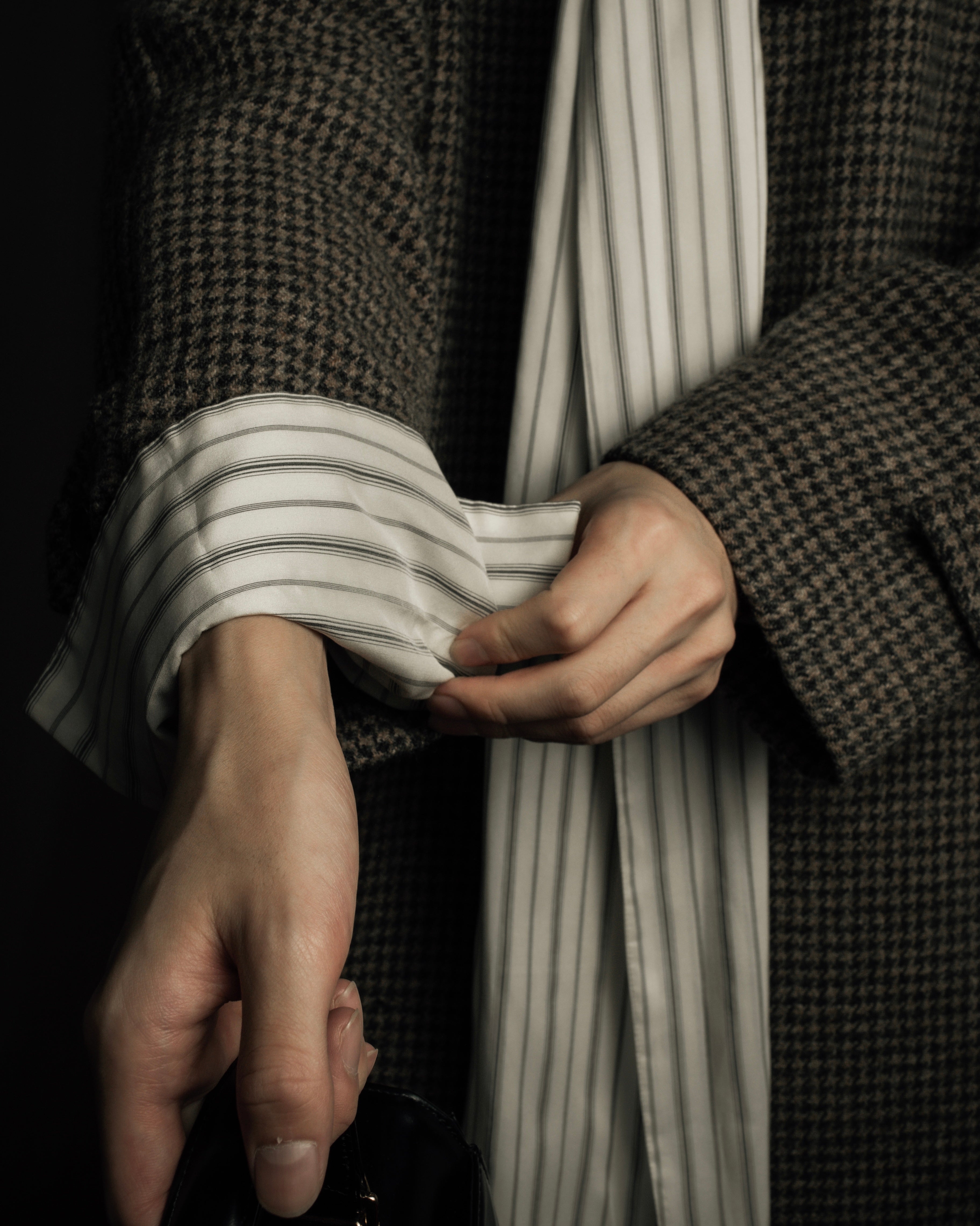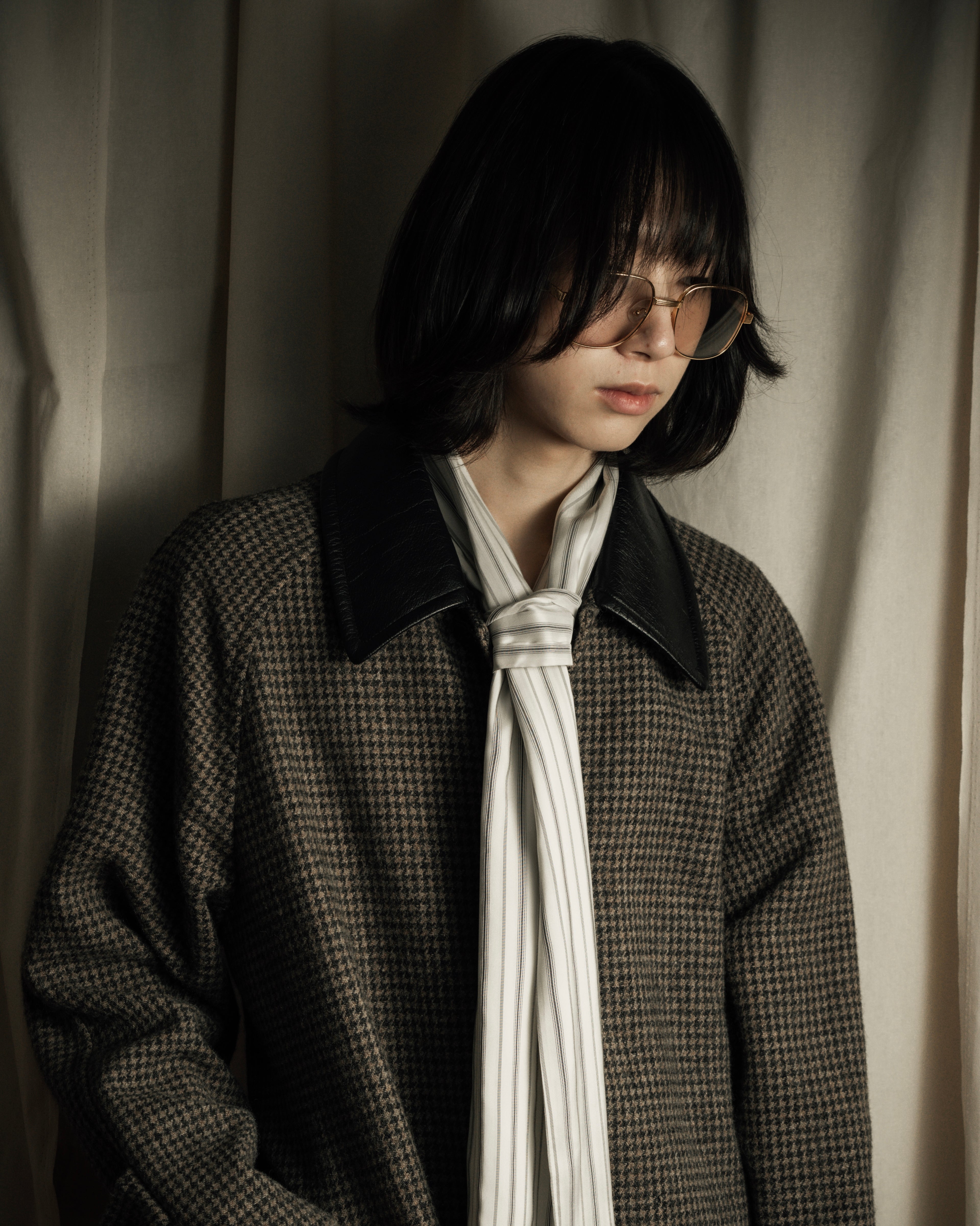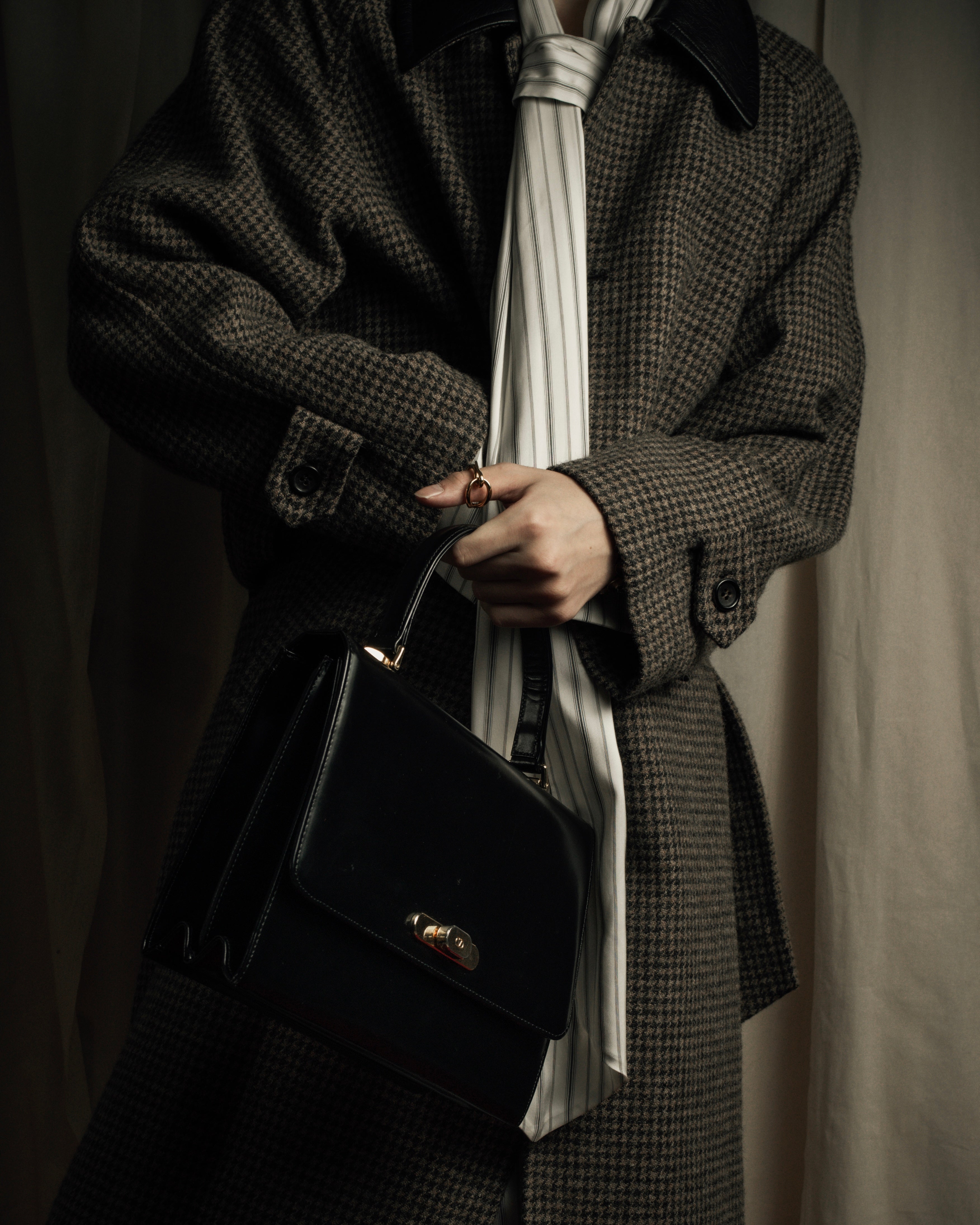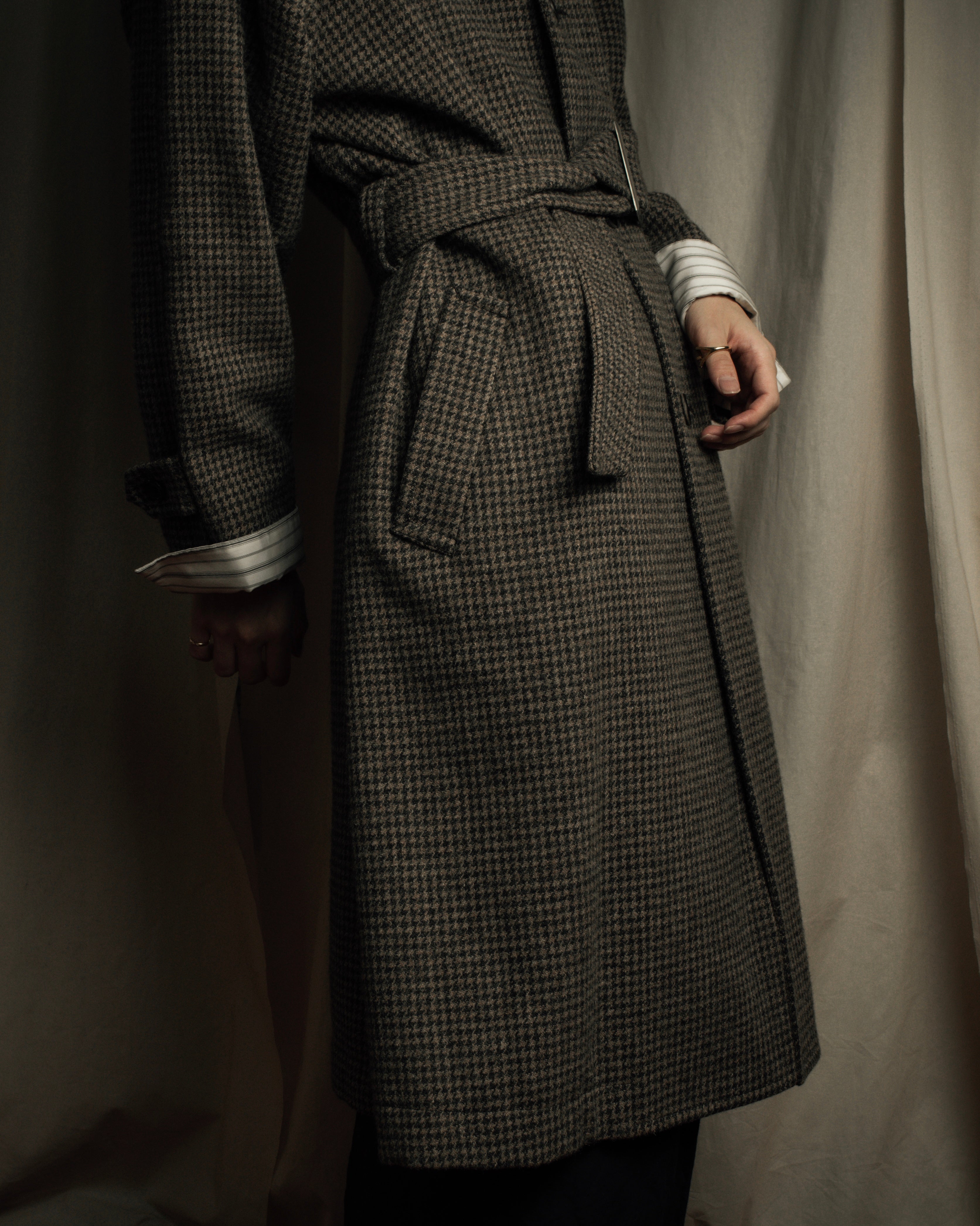 "tricot COMME des GARCONS" Leather collar design houndstooth pattern oversized long coat