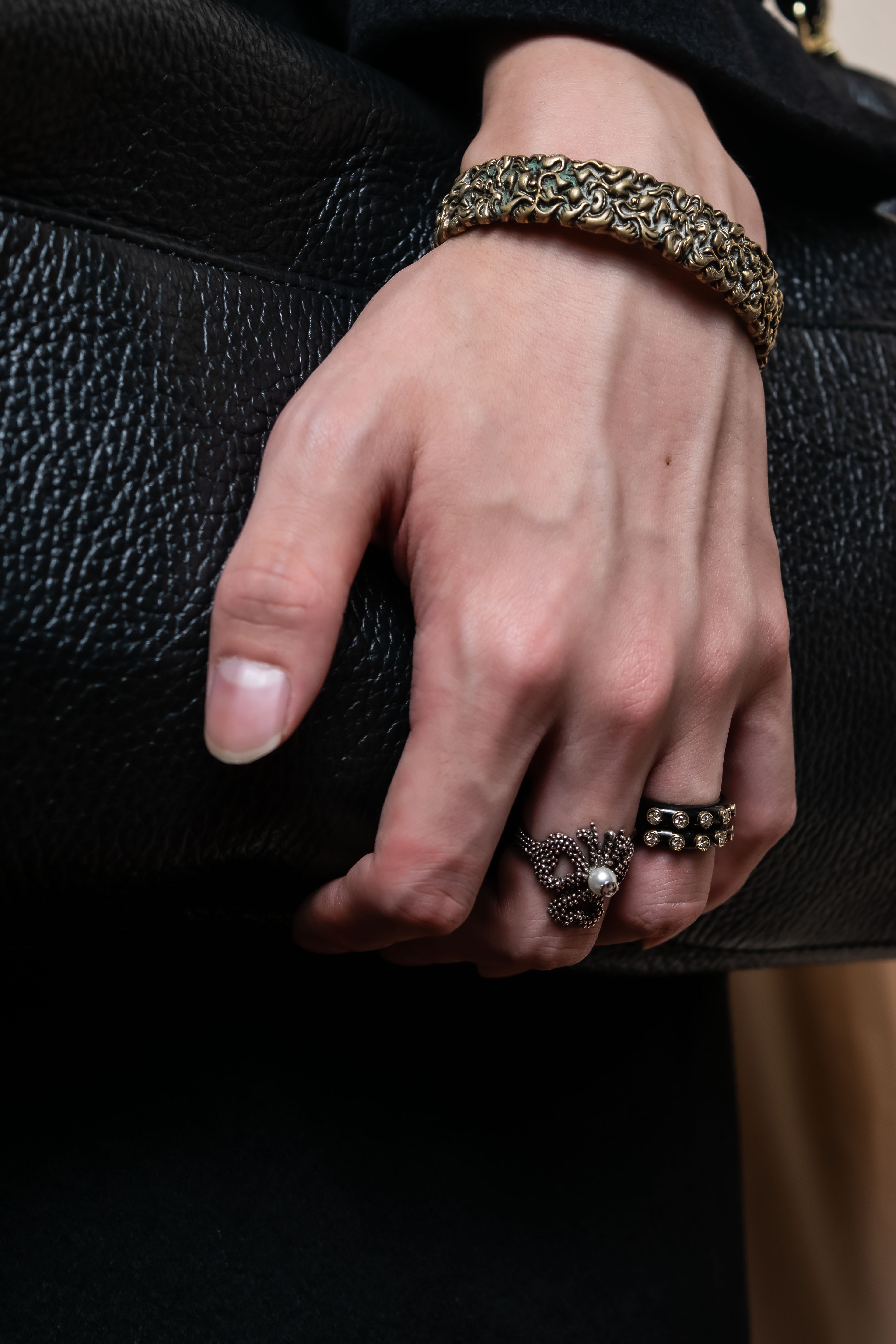 "Maison Martin Margiela" Black lacquered hollow double finger ring -