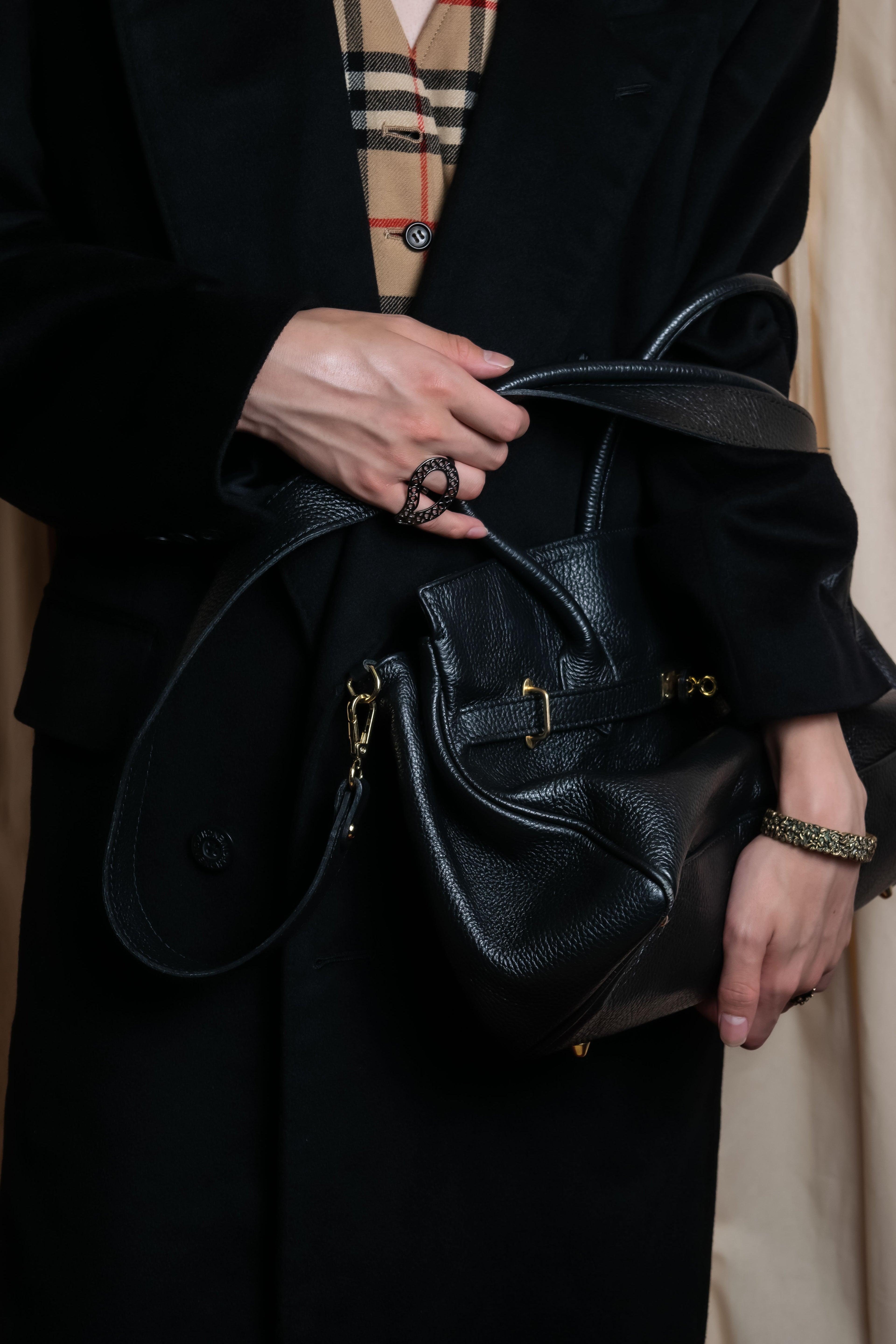 "AULENTTI" Gold closure belt design leather 2-way bag -