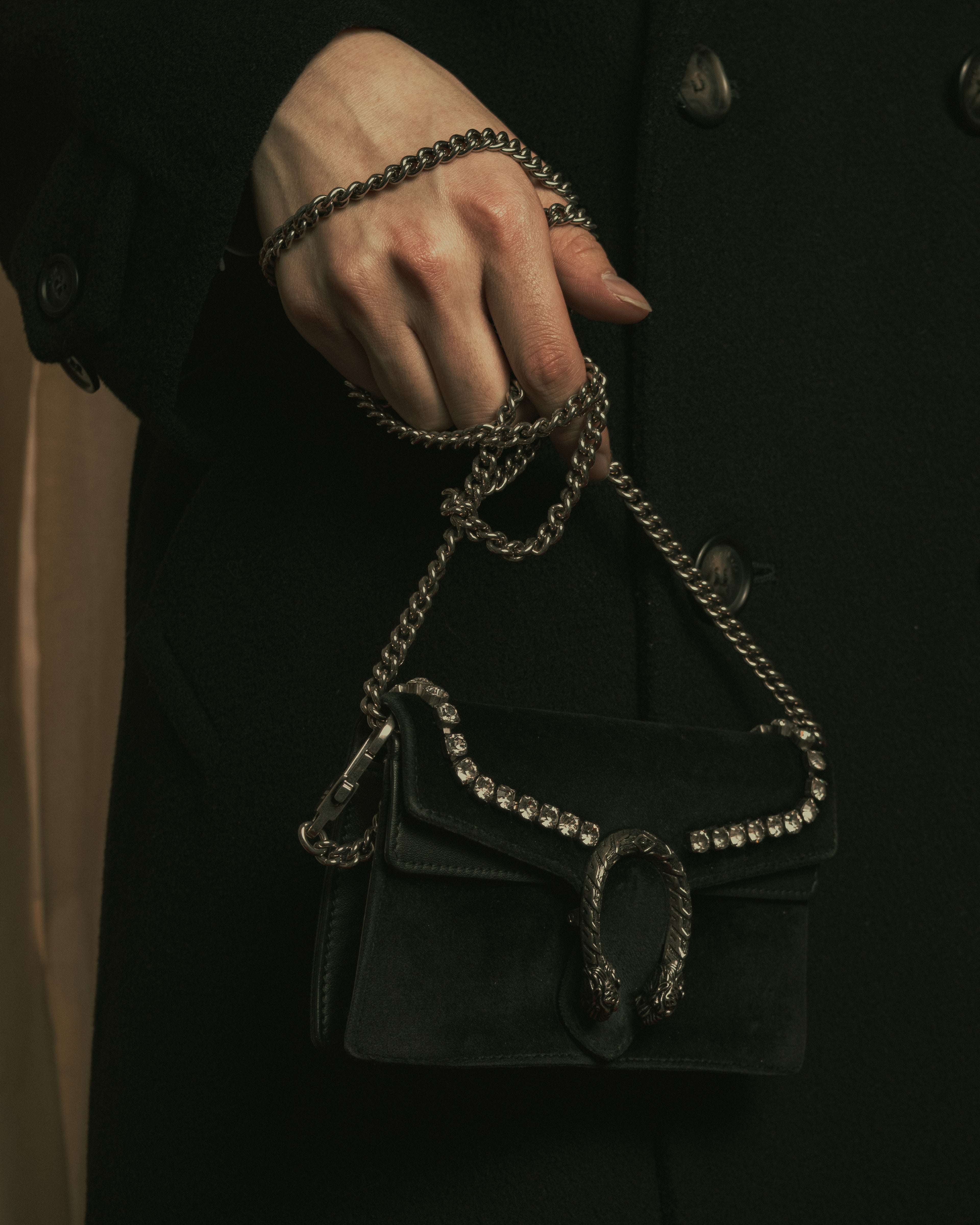 "GUCCI" Dionysus velvet crystal lined shoulder bag