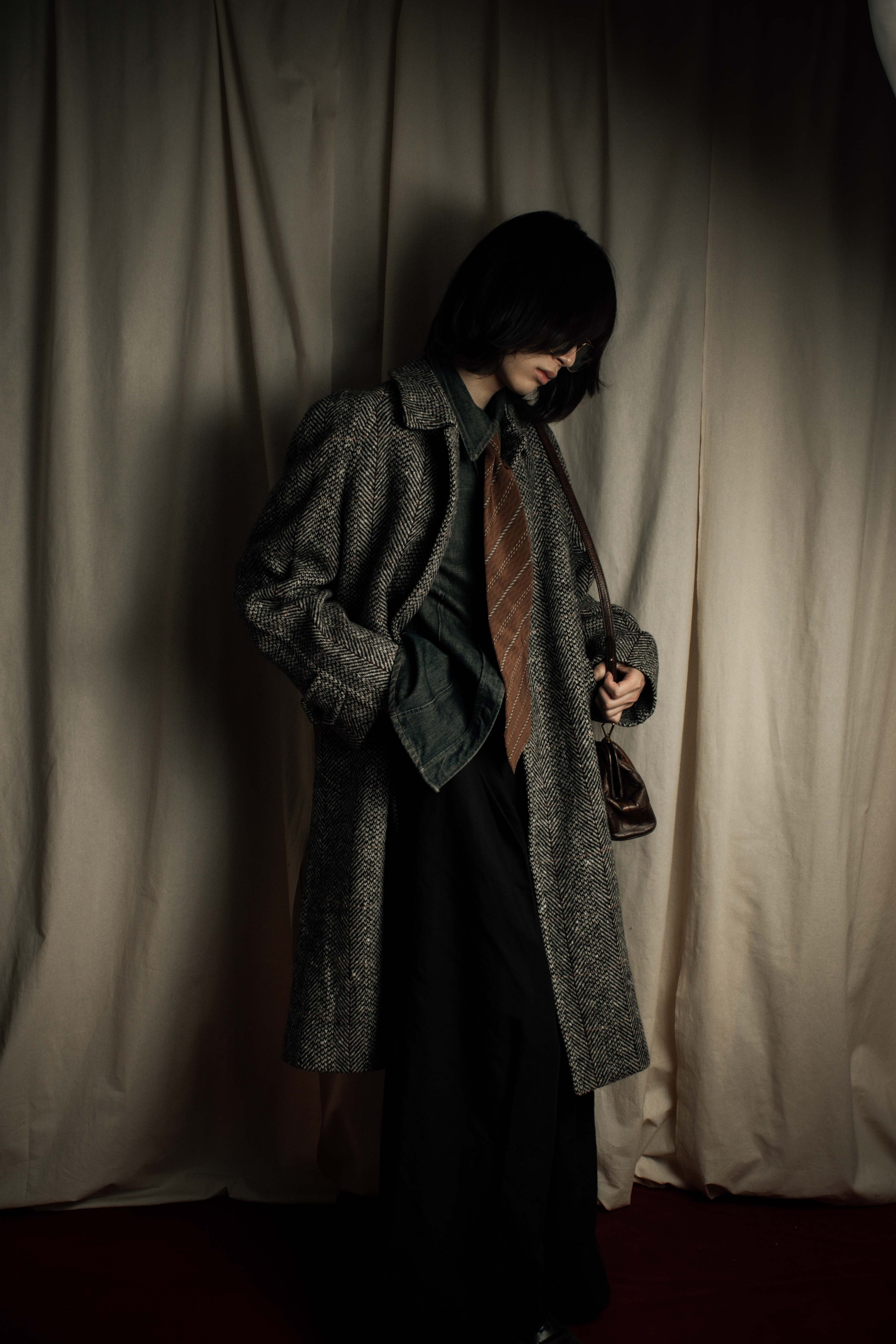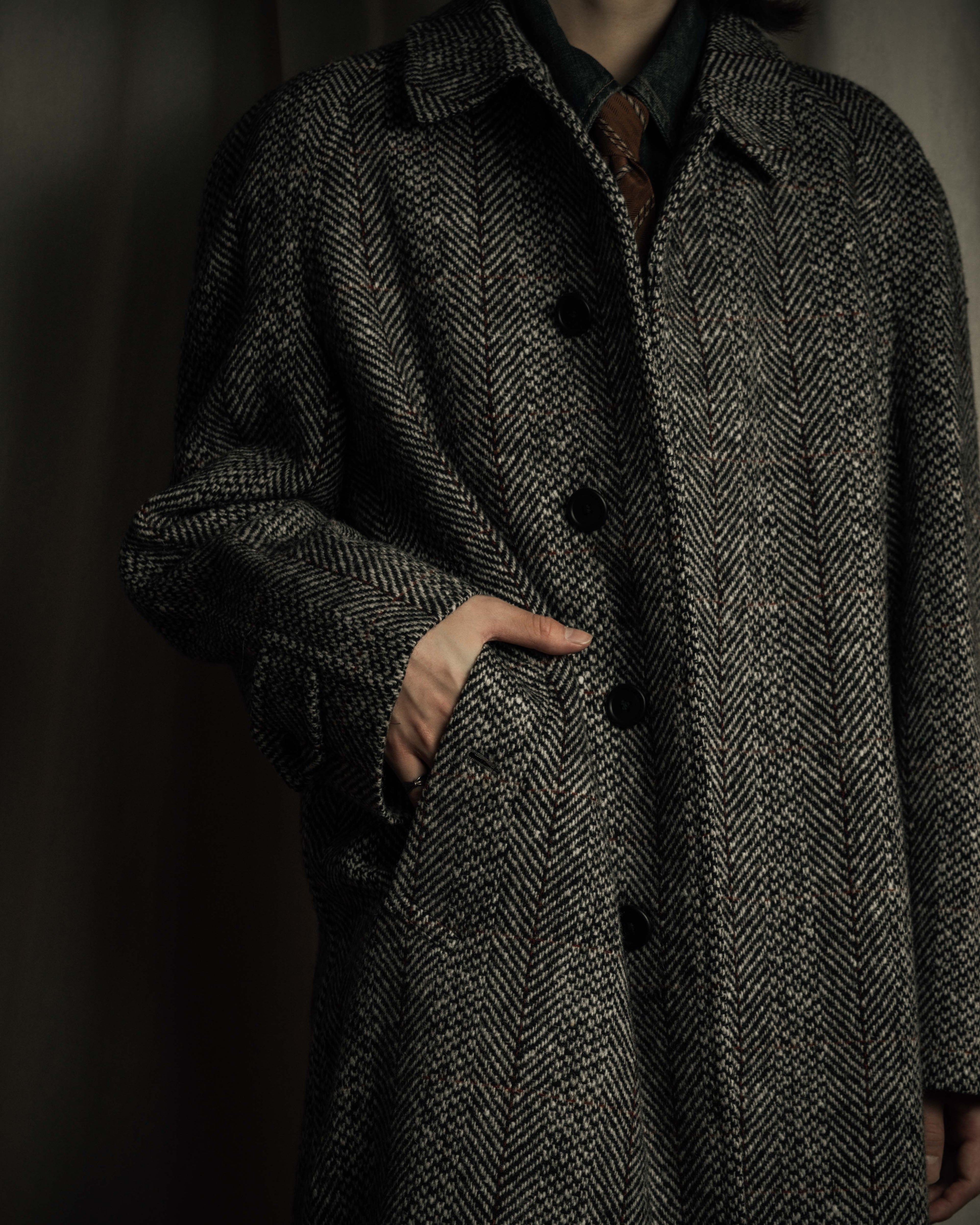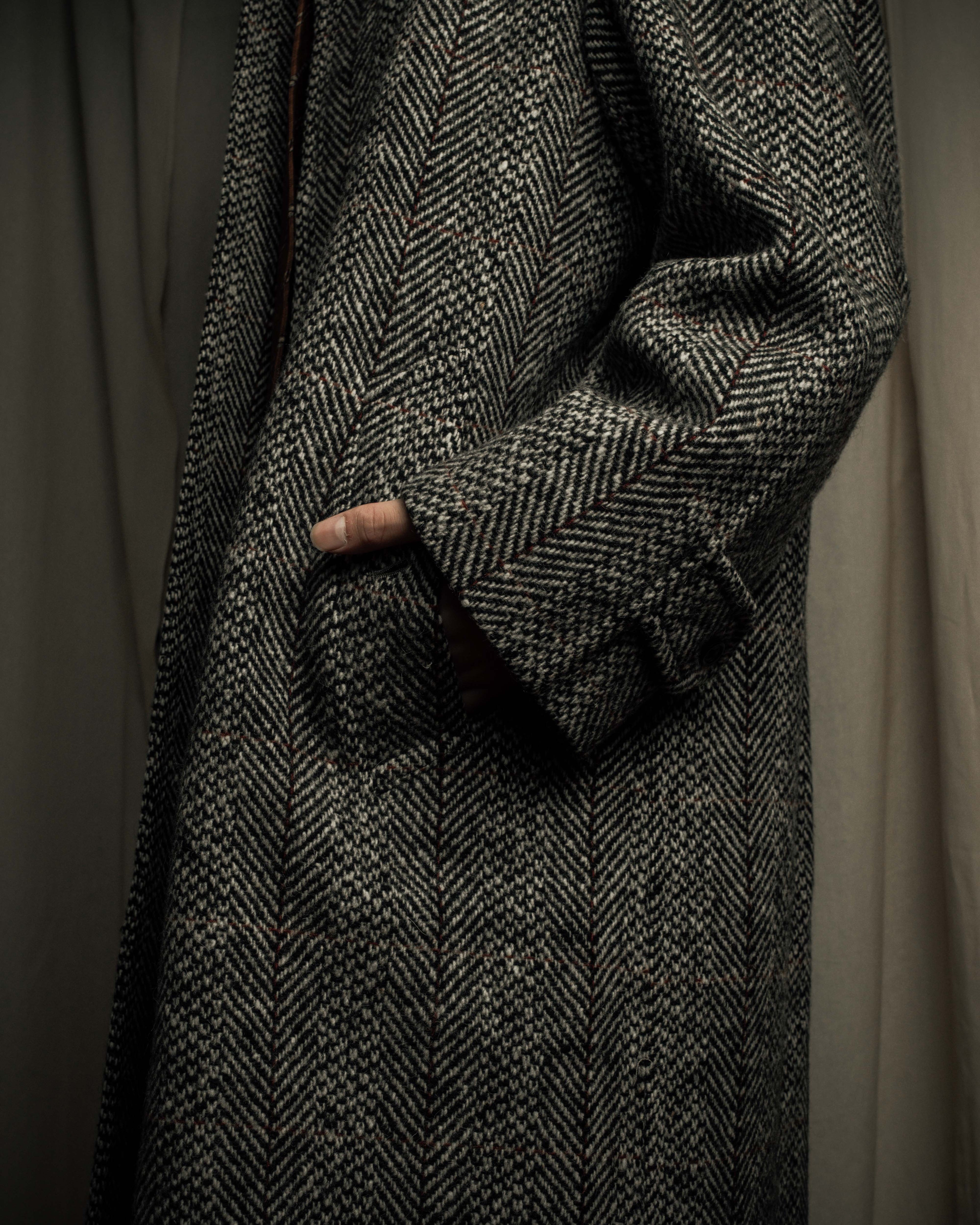 "YVES SAINT LAURENT" 70’s-80’s structured herringbone tweed tailored jacket