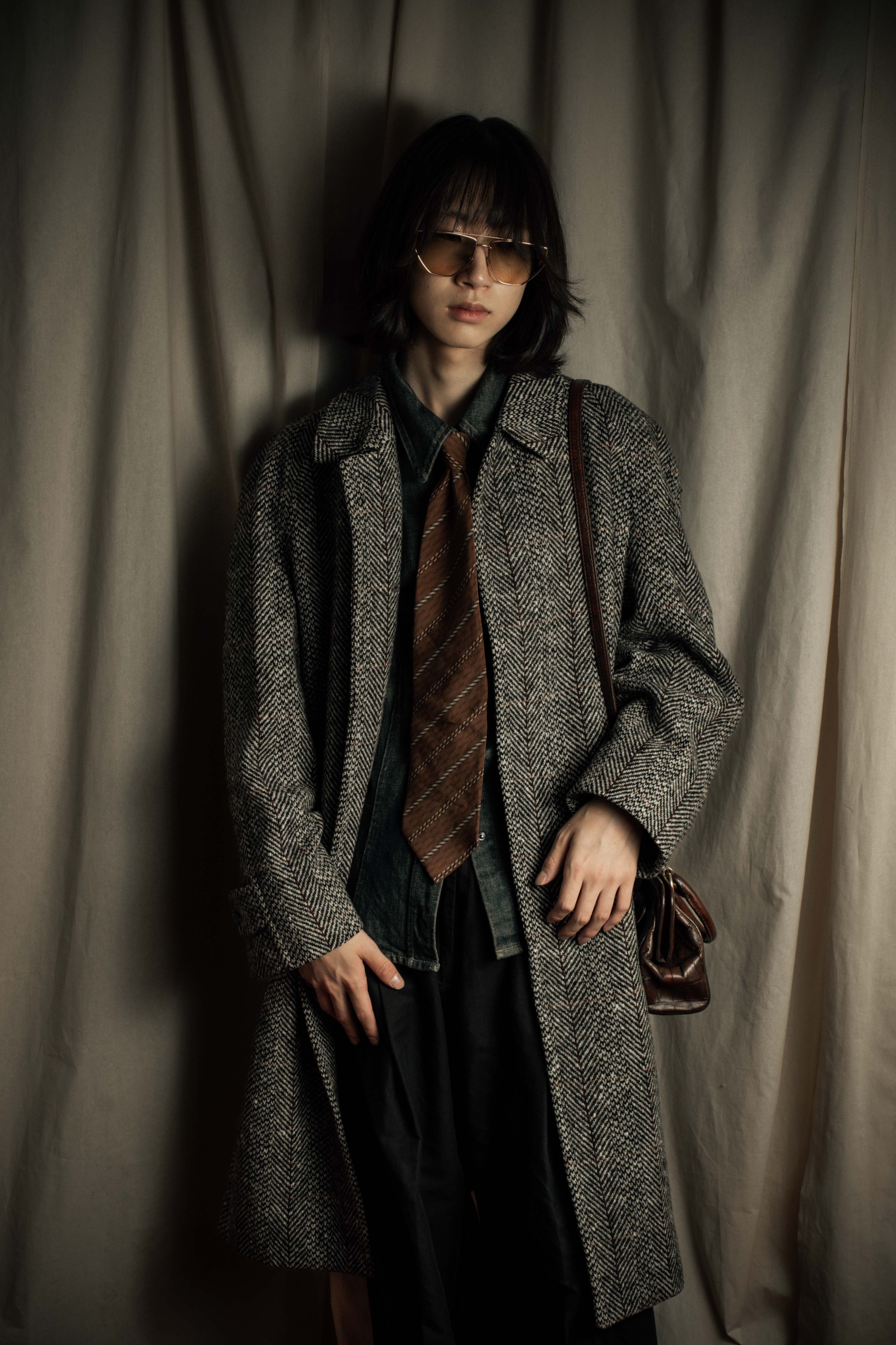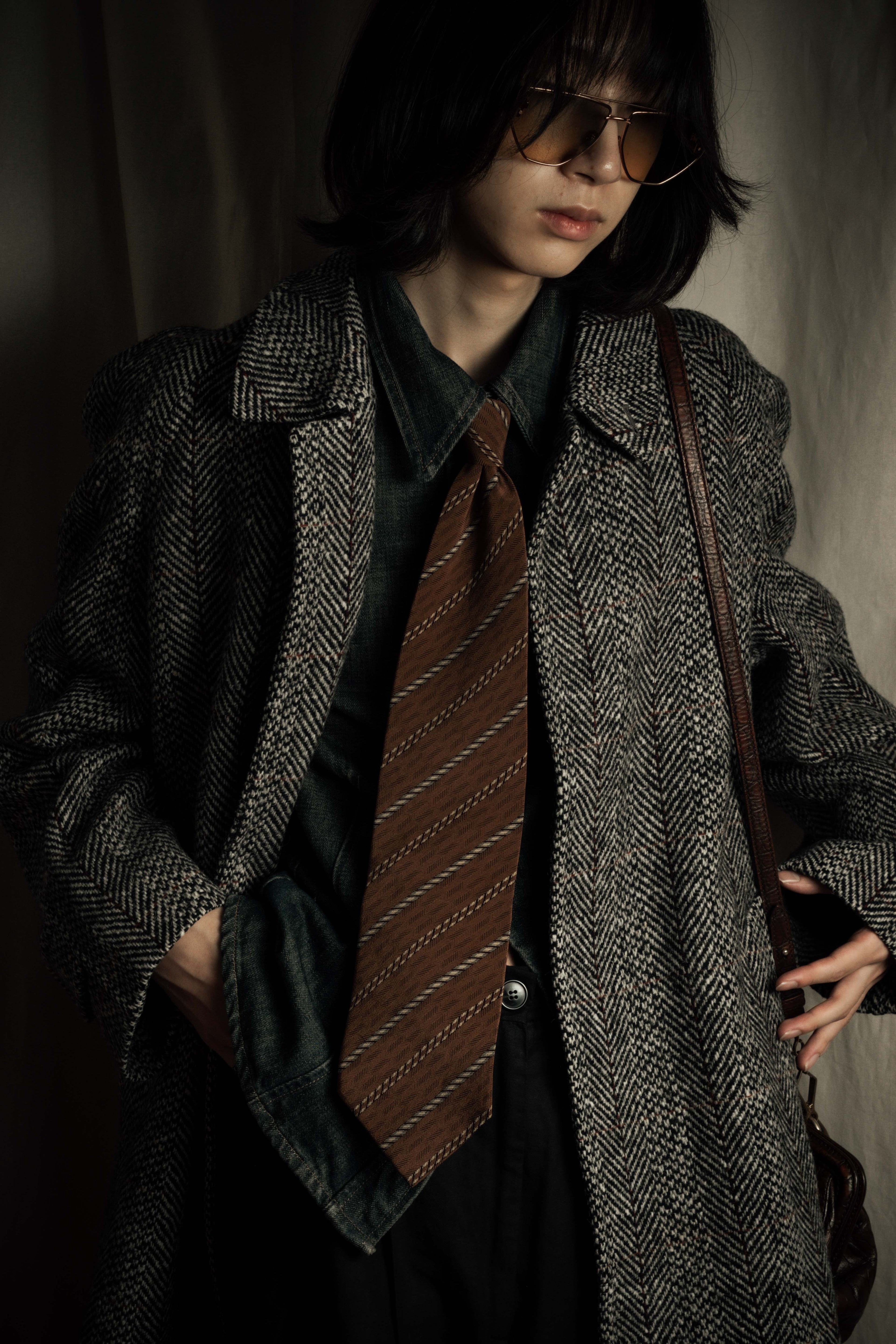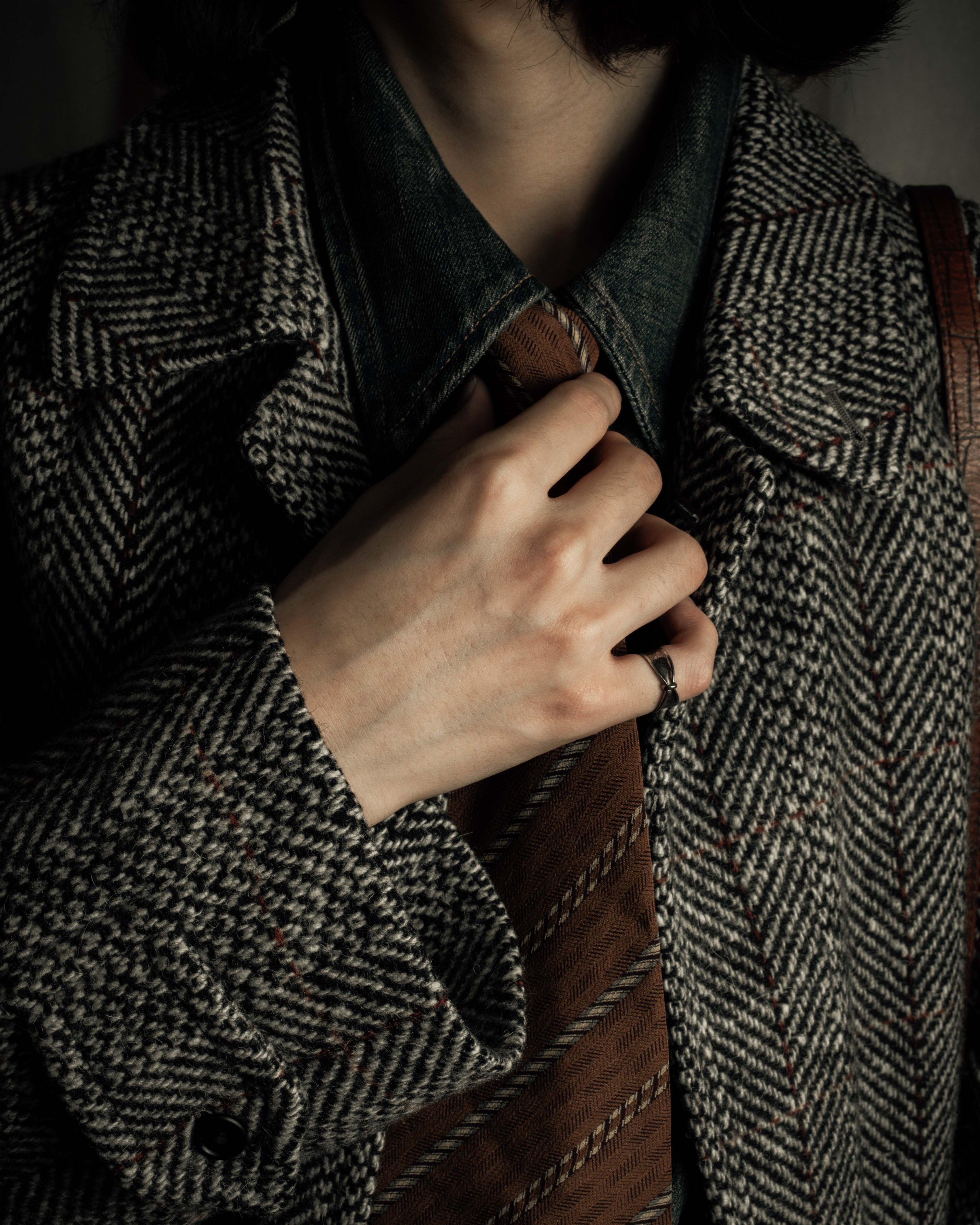 "YVES SAINT LAURENT" 70’s-80’s structured herringbone tweed tailored jacket