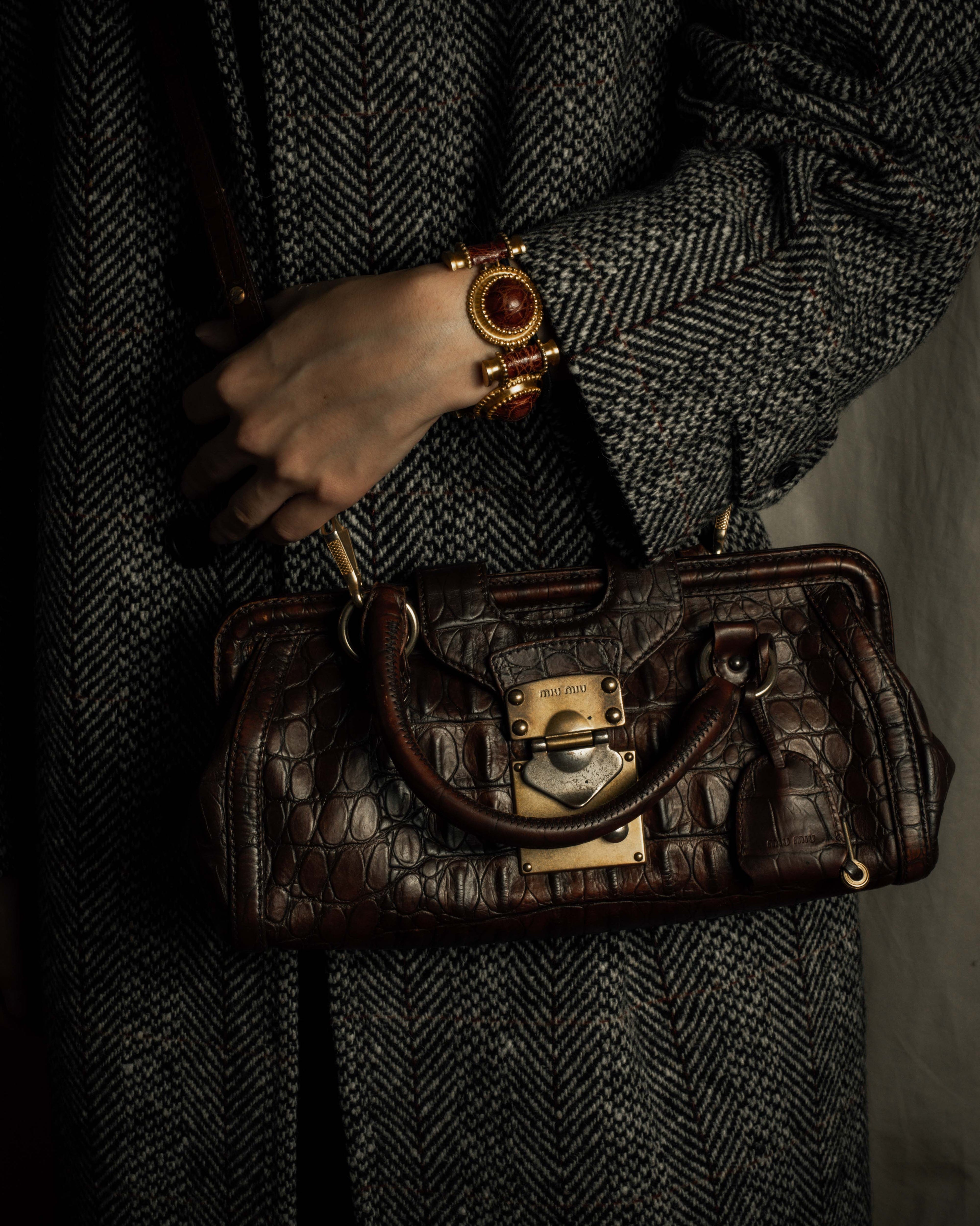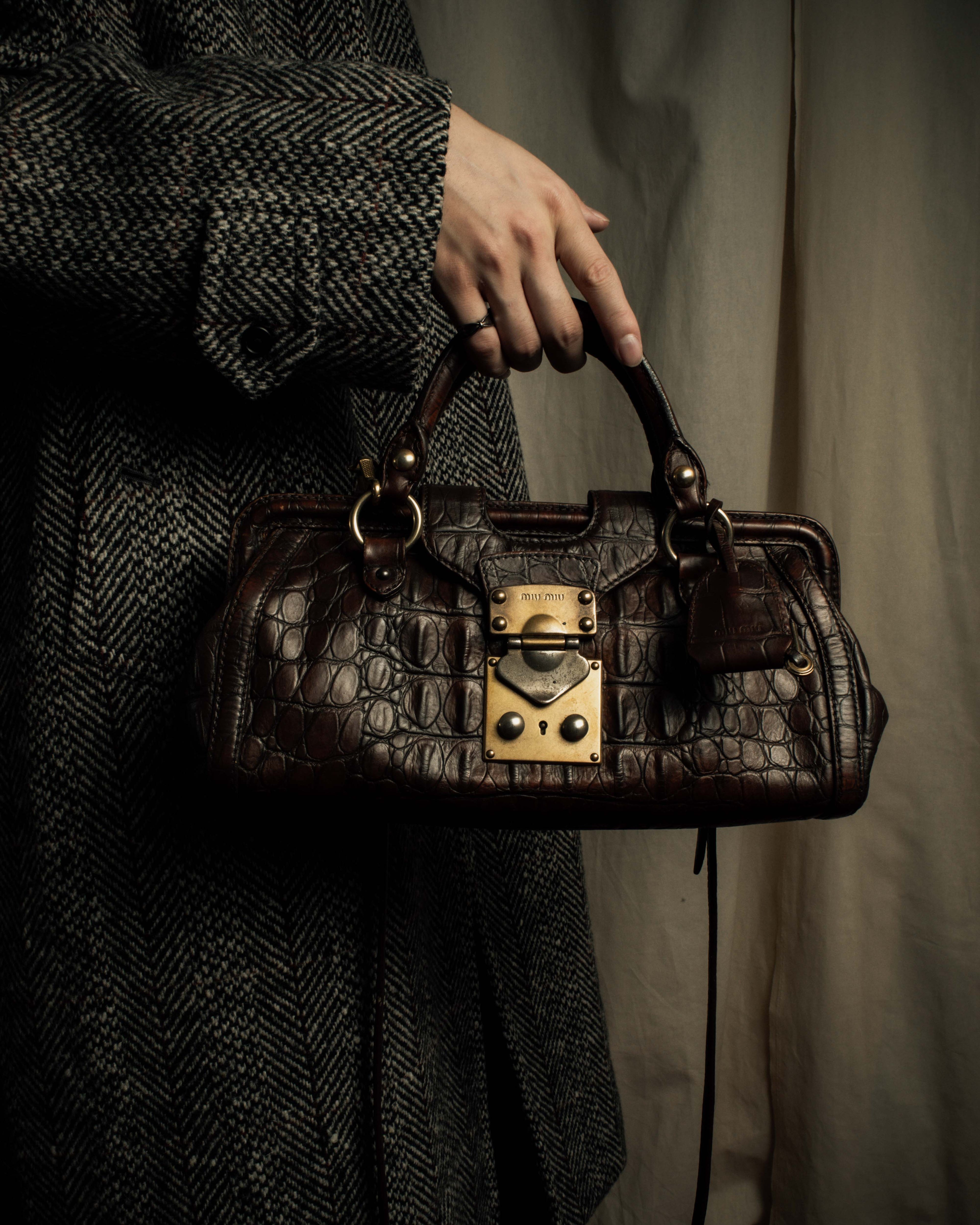 "MIU MIU" Antique design crocodile embossed leather 2way bag