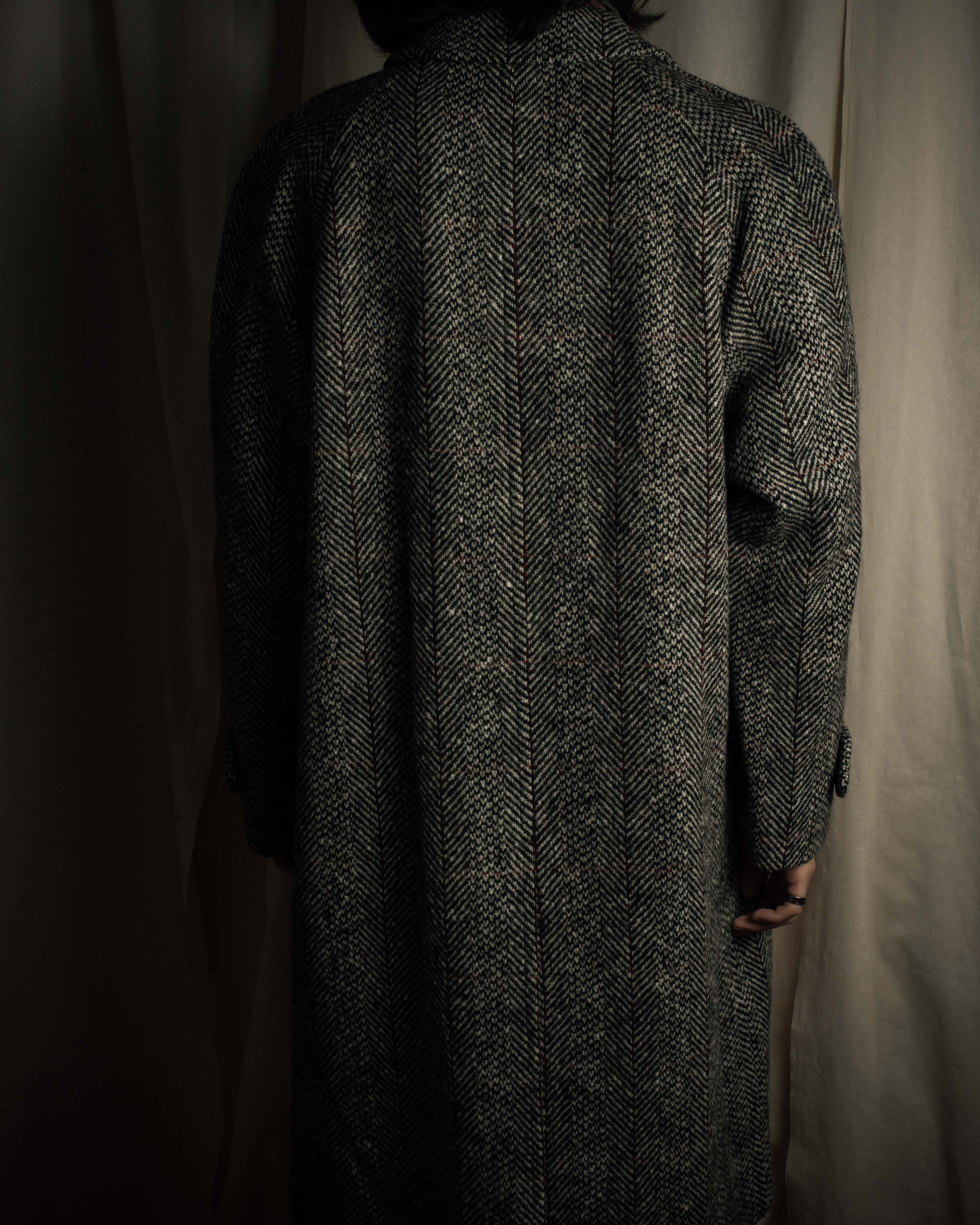 "BURBERRYS" British tweed fly front stand collar coat