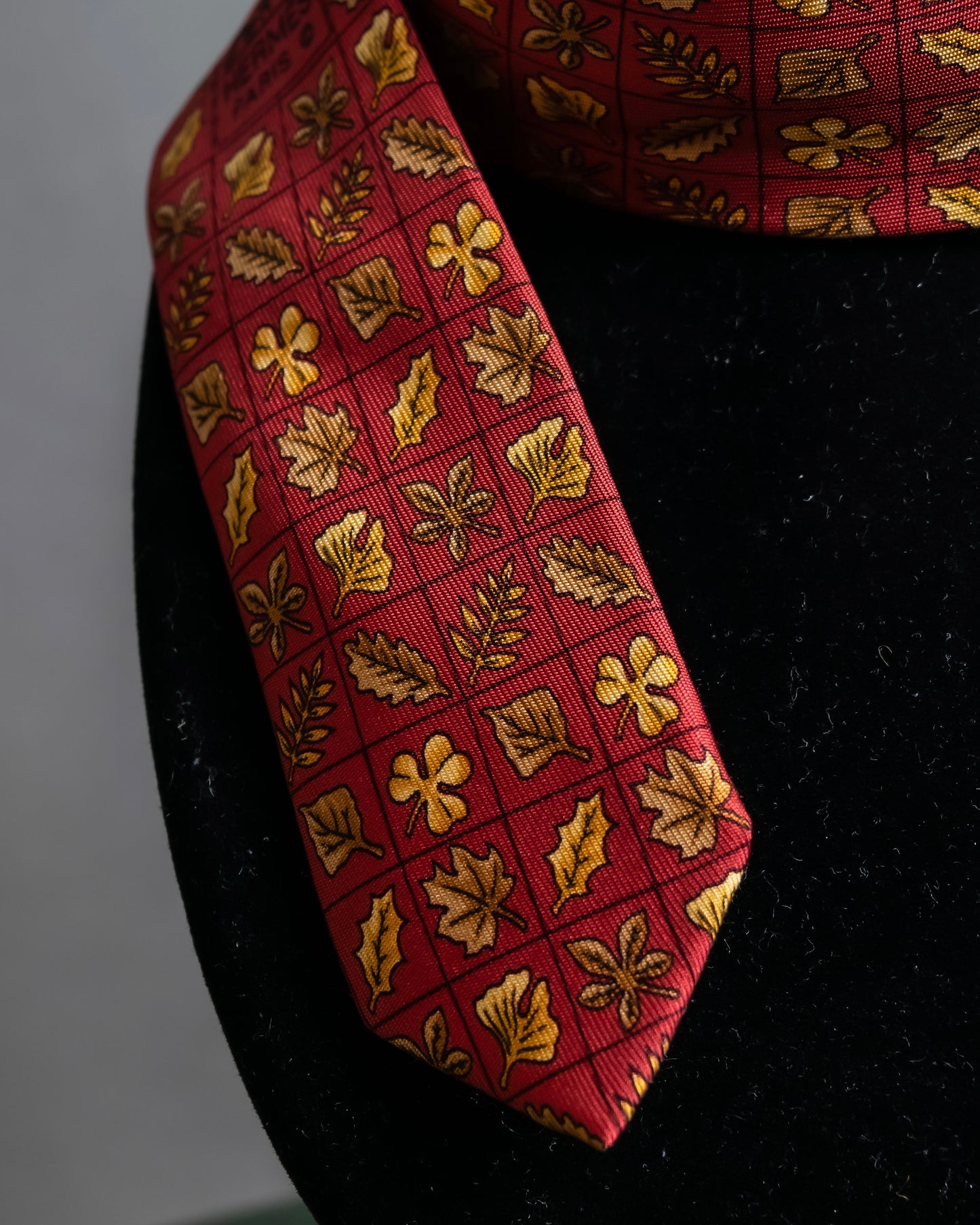 "HERMES" 100% silk fallen leaves pattern neck tie