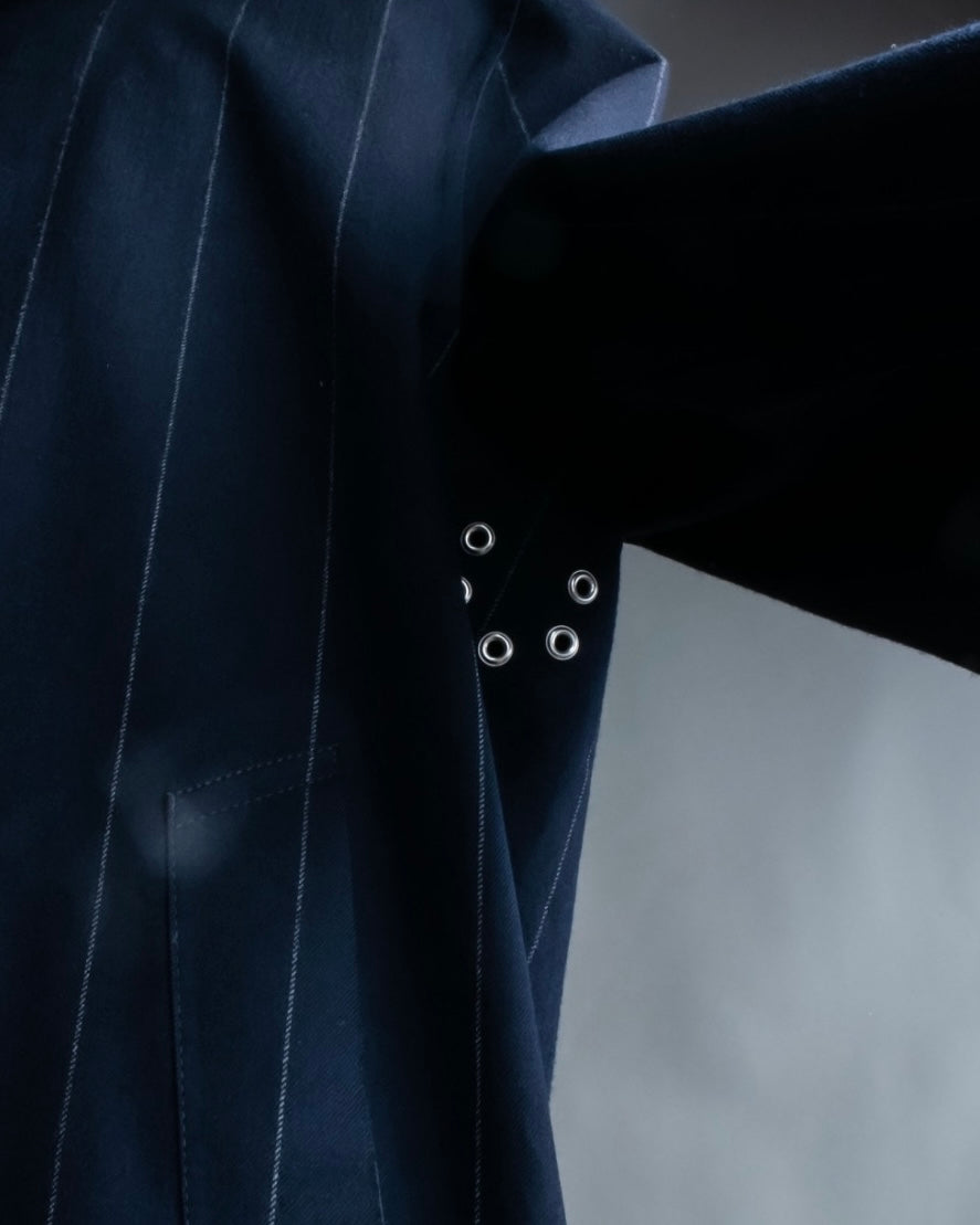 This masterpiece features an iconic silhouette that is close to an oversized box silhouette, with a modern striped design.
