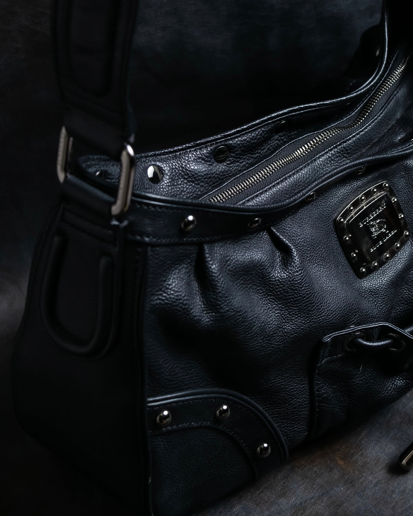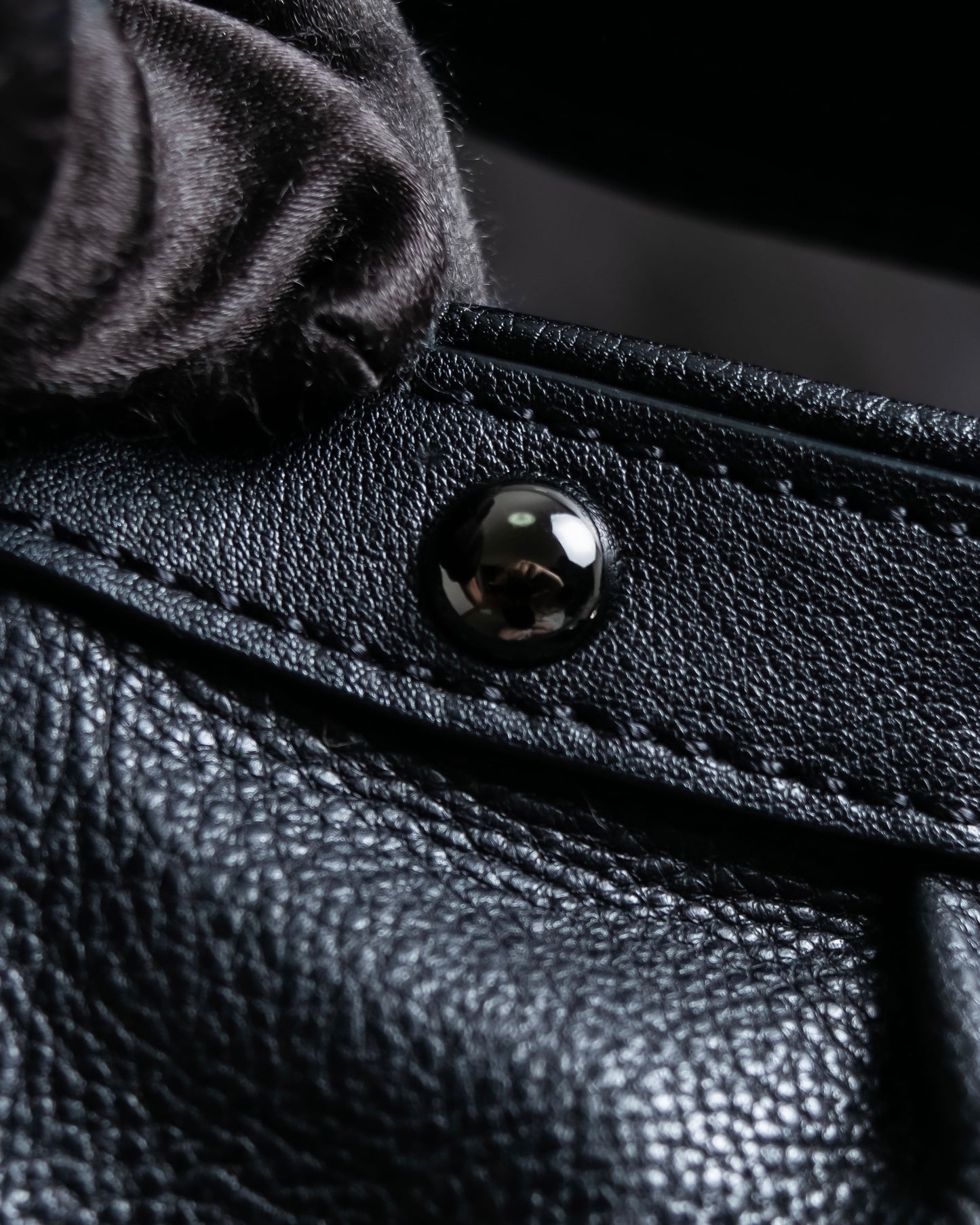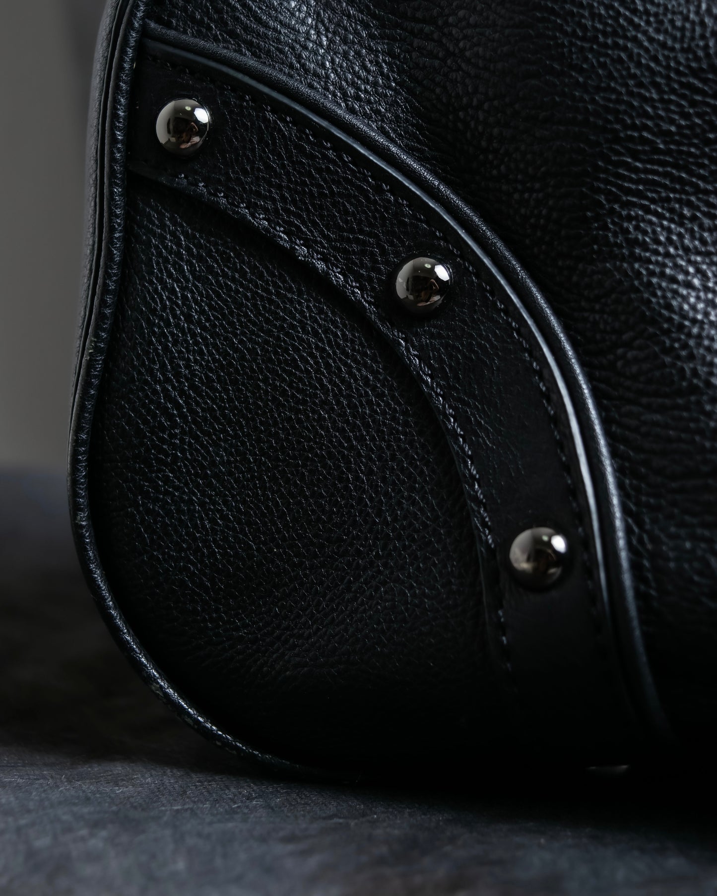 This masterpiece has a horizontal shape, adjustable outer pockets with drawstrings, and beautiful decorative silver studs on the sides and piping.