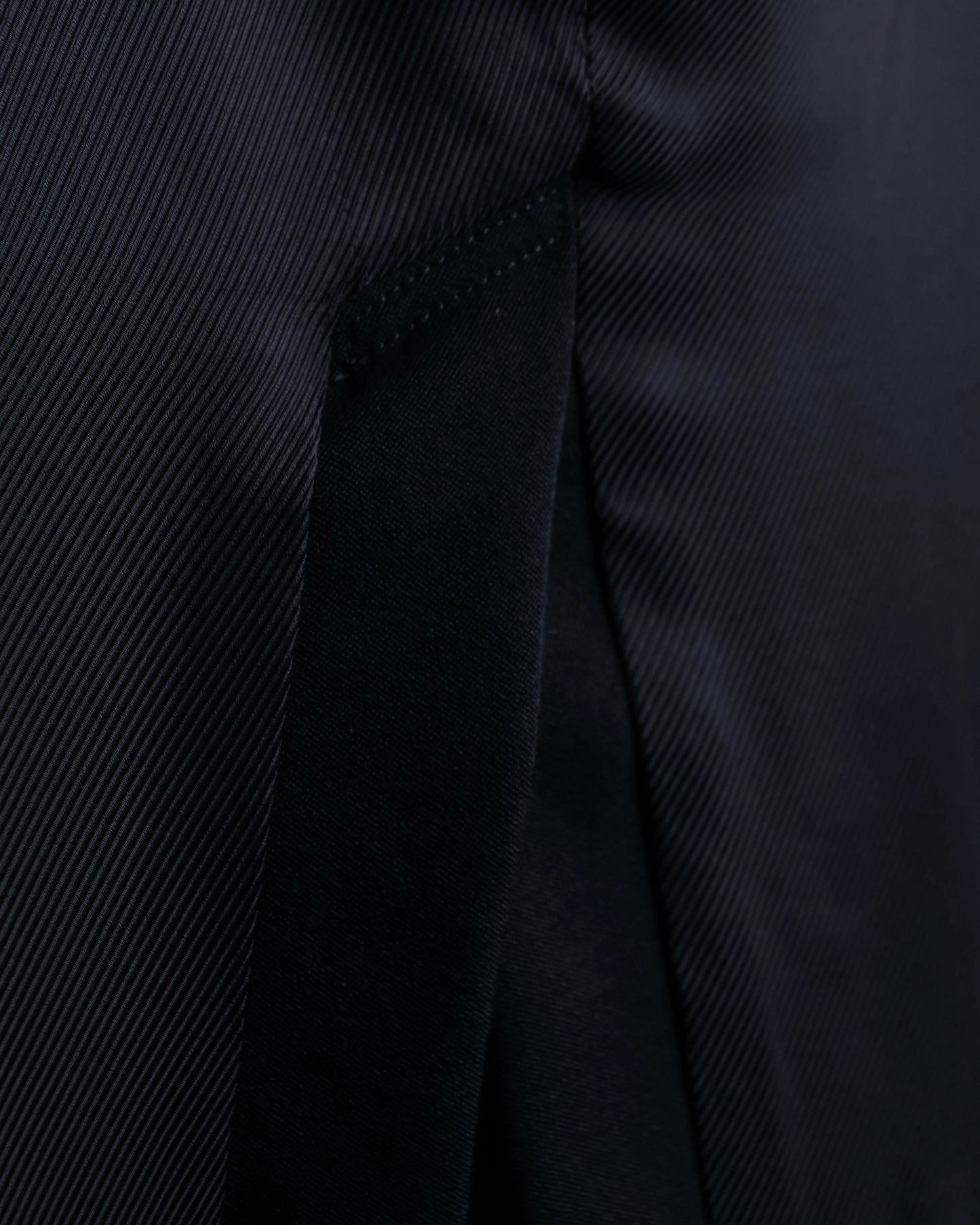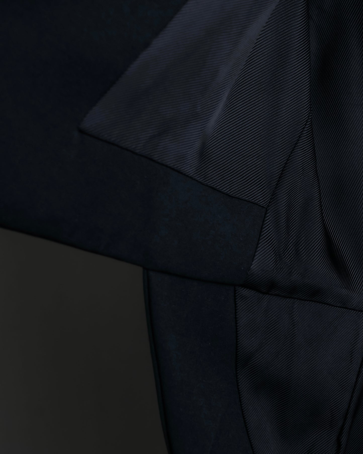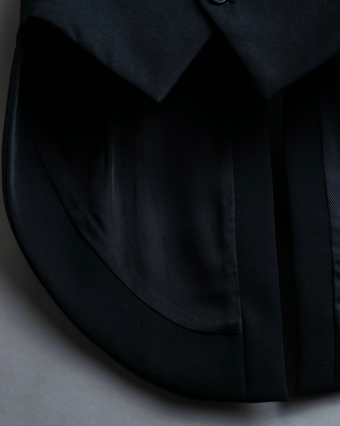 In addition, the vest has a unique design with a shiny lining on the back, but the hem of the swallowtail part is made of a sturdy outer fabric. It gives the impression that Yamamoto is committed to creating things that combine new elements while retaining its traditions.