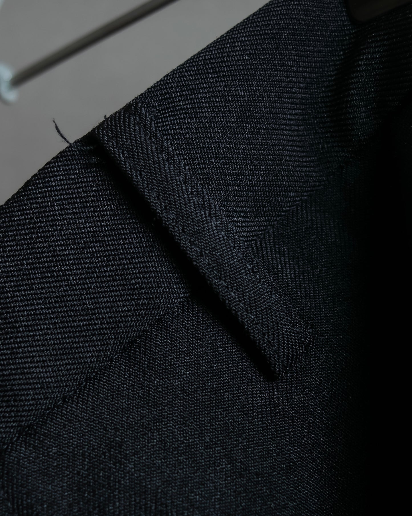 As for styling, we recommend pairing a plain no-collar jacket with a top and an asymmetrical layered shirt with long and short sleeves to bring out the shape of the pants and create a three-dimensional silhouette. Also, by choosing matte derby shoes or plain-toed leather shoes for your feet, you can achieve an exquisite balance of elegance and avant-garde.
