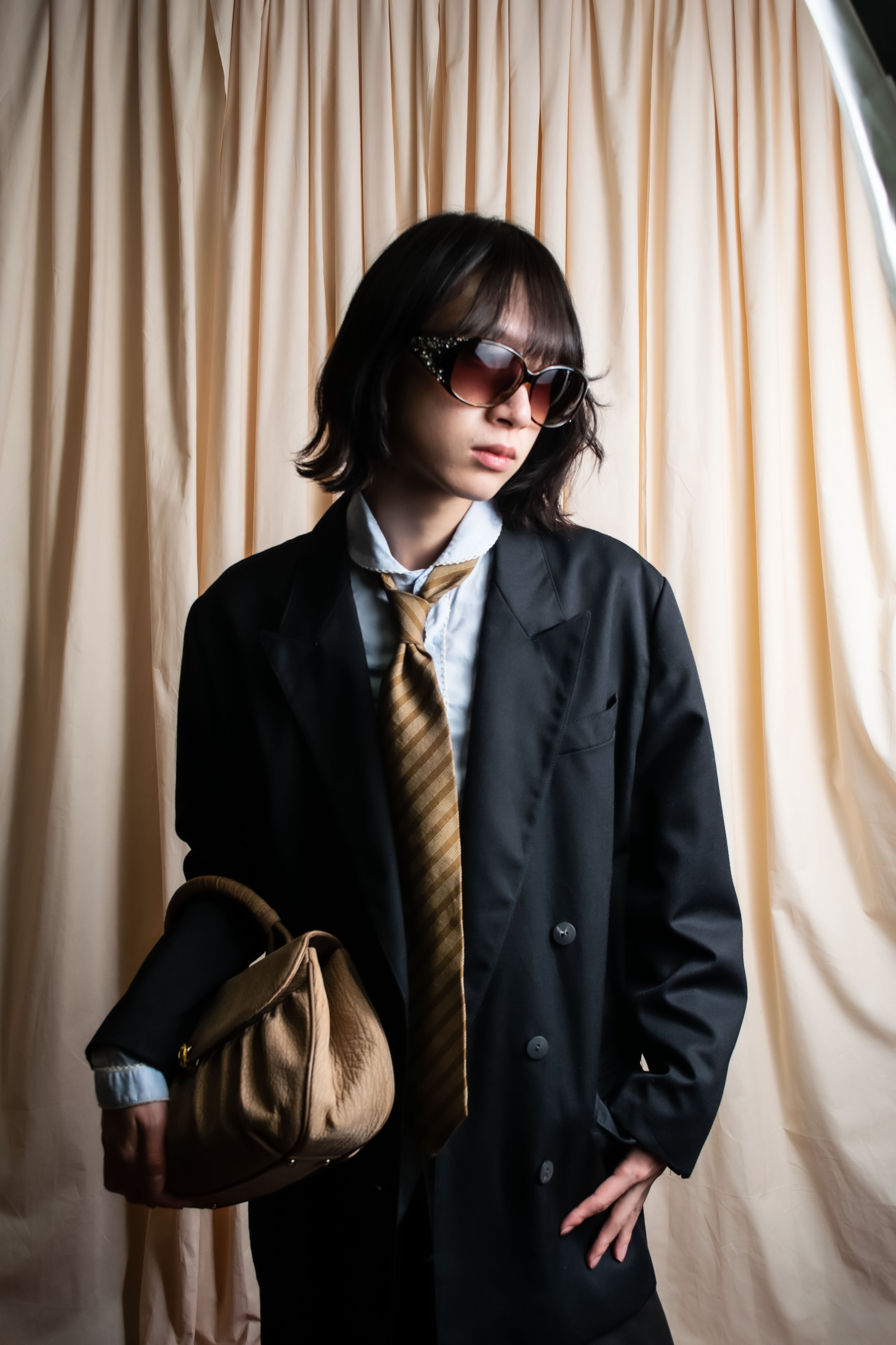 “Gianni Versace” 80’s-90’s Shadowed-texture tailored jacket