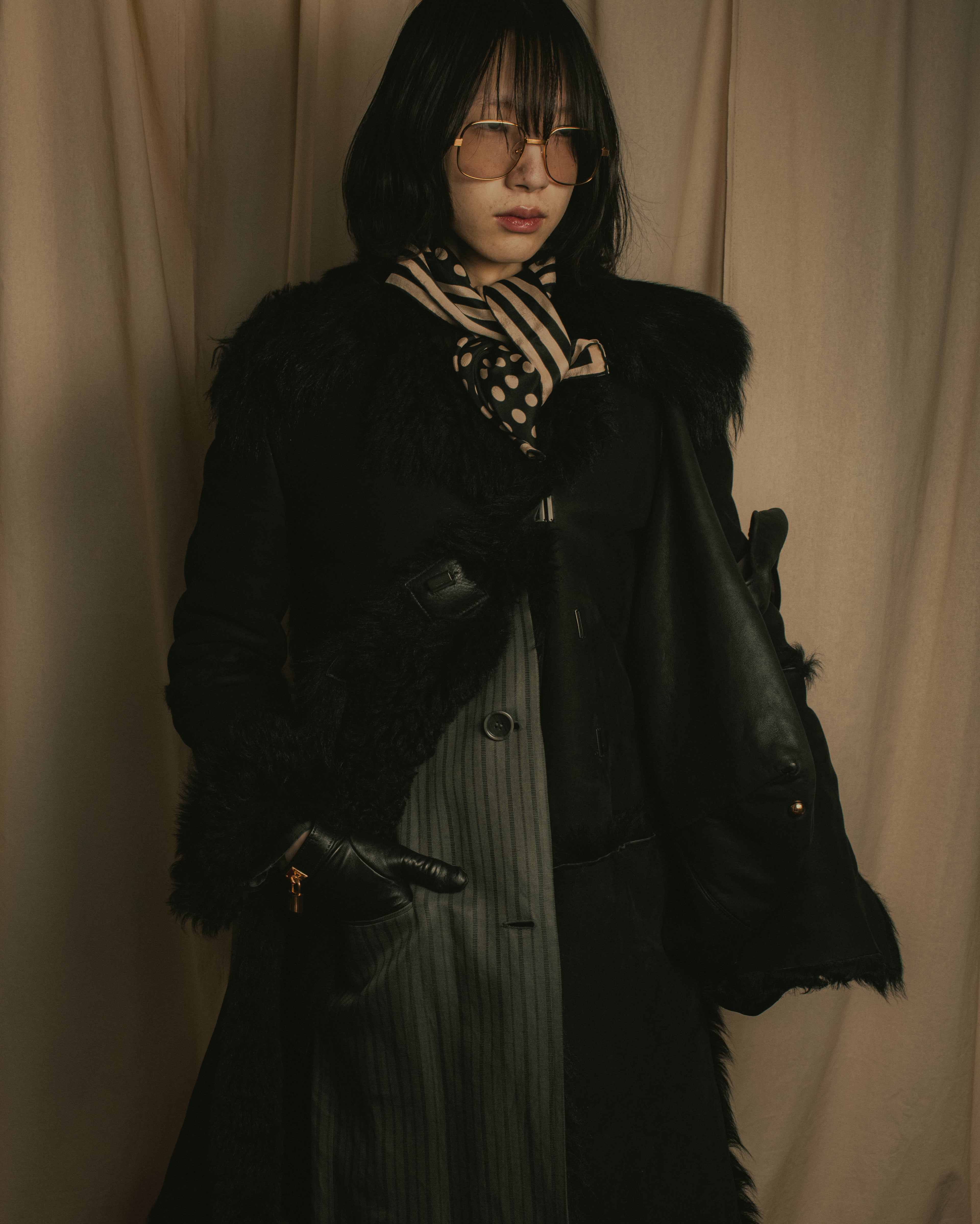 -SPECIAL- "GUCCI" 90's-00's Leather combination fur long coat
