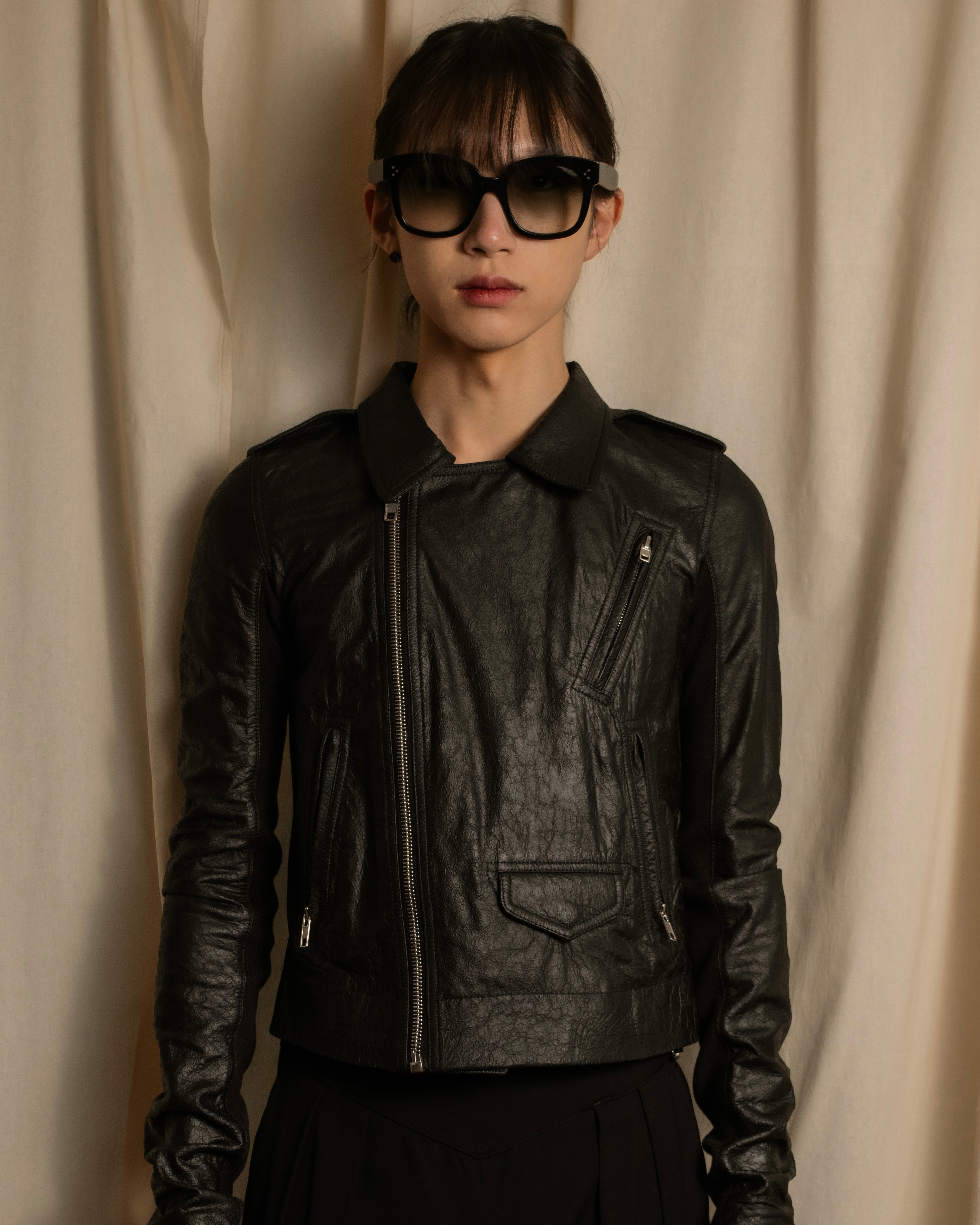 -SPECIAL- "Rick Owens" 15AW Beautiful wrinkles front zip leather jacket