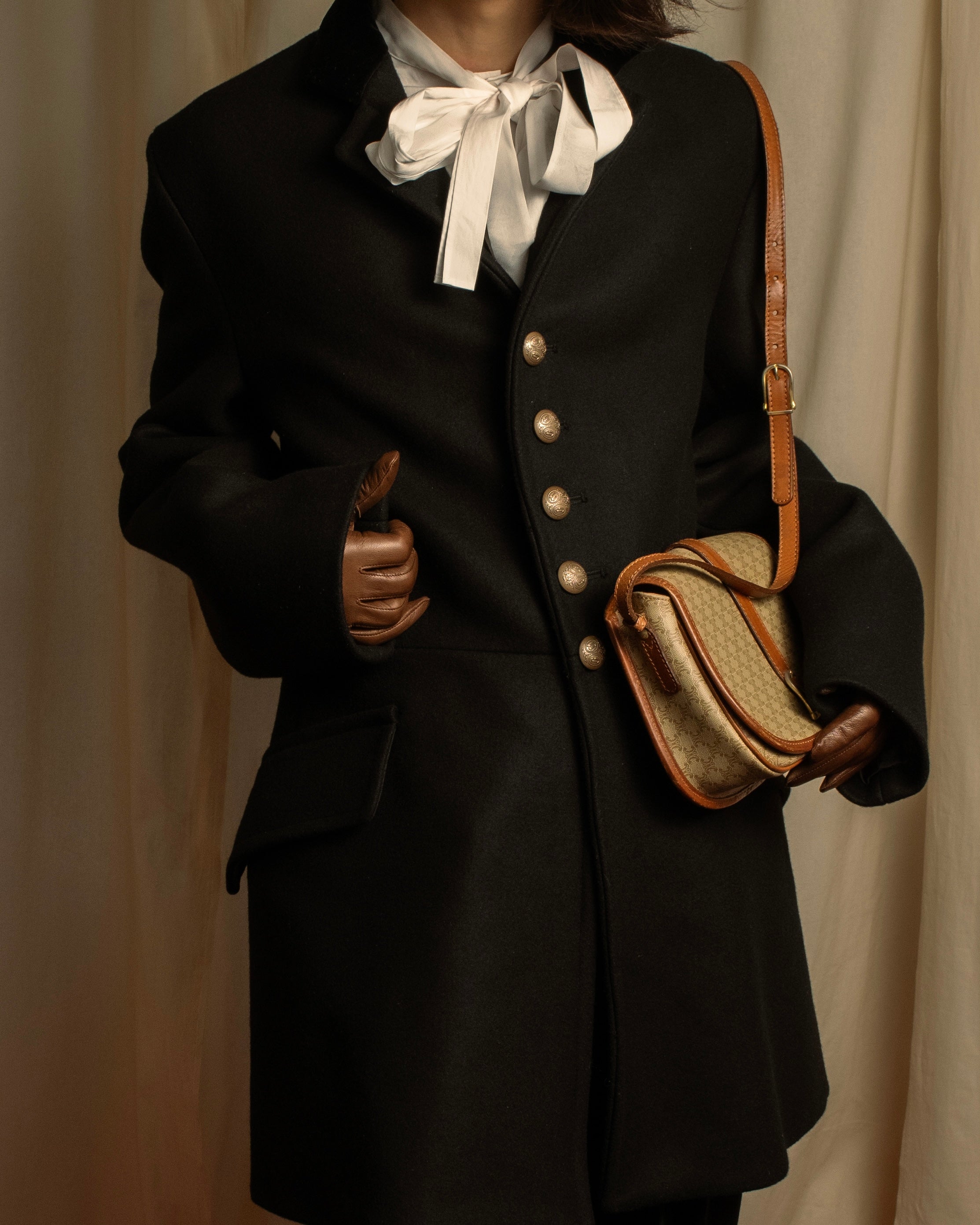 "YVES SAINT LAURENT" 70’s-80’s structured herringbone tweed tailored jacket
