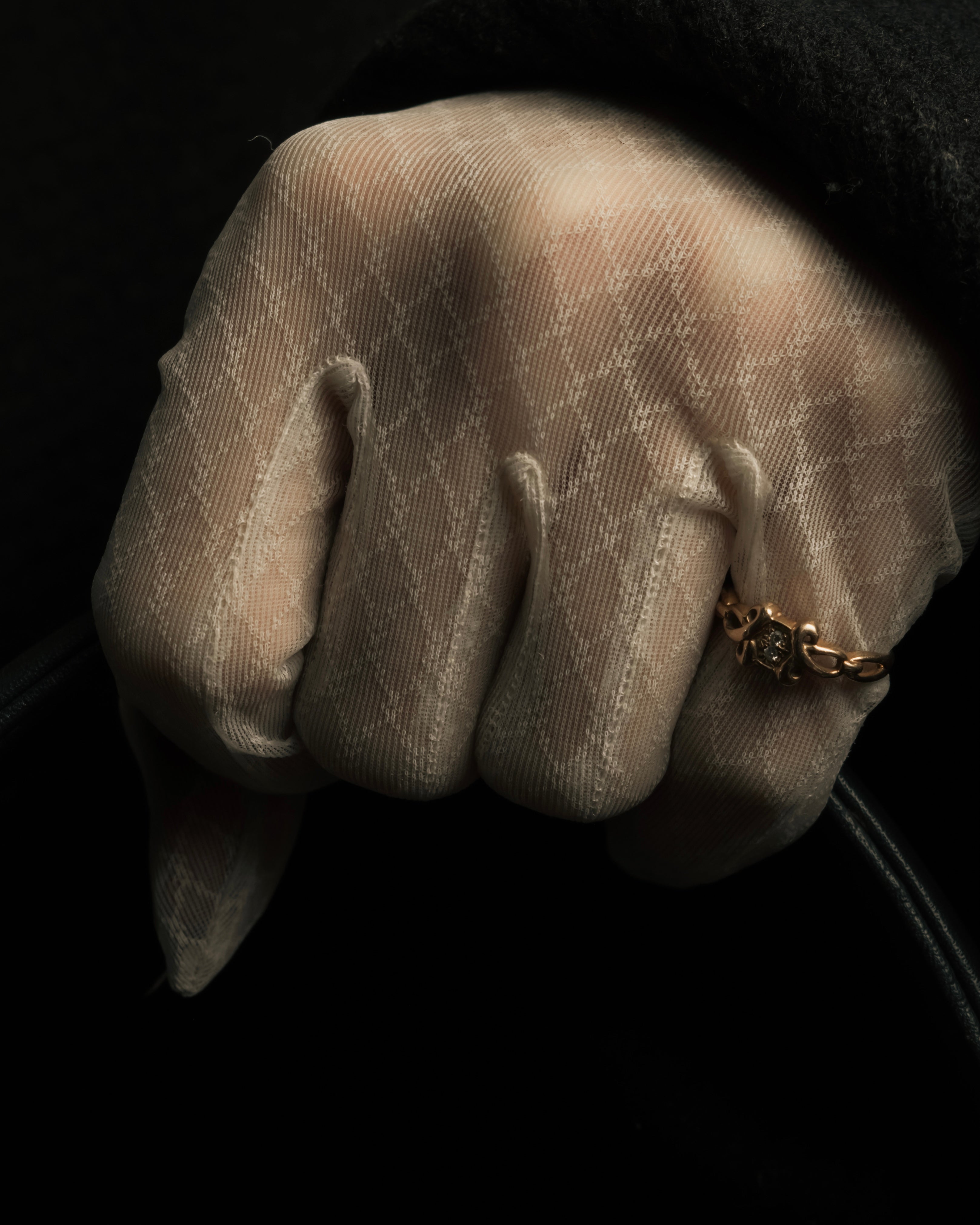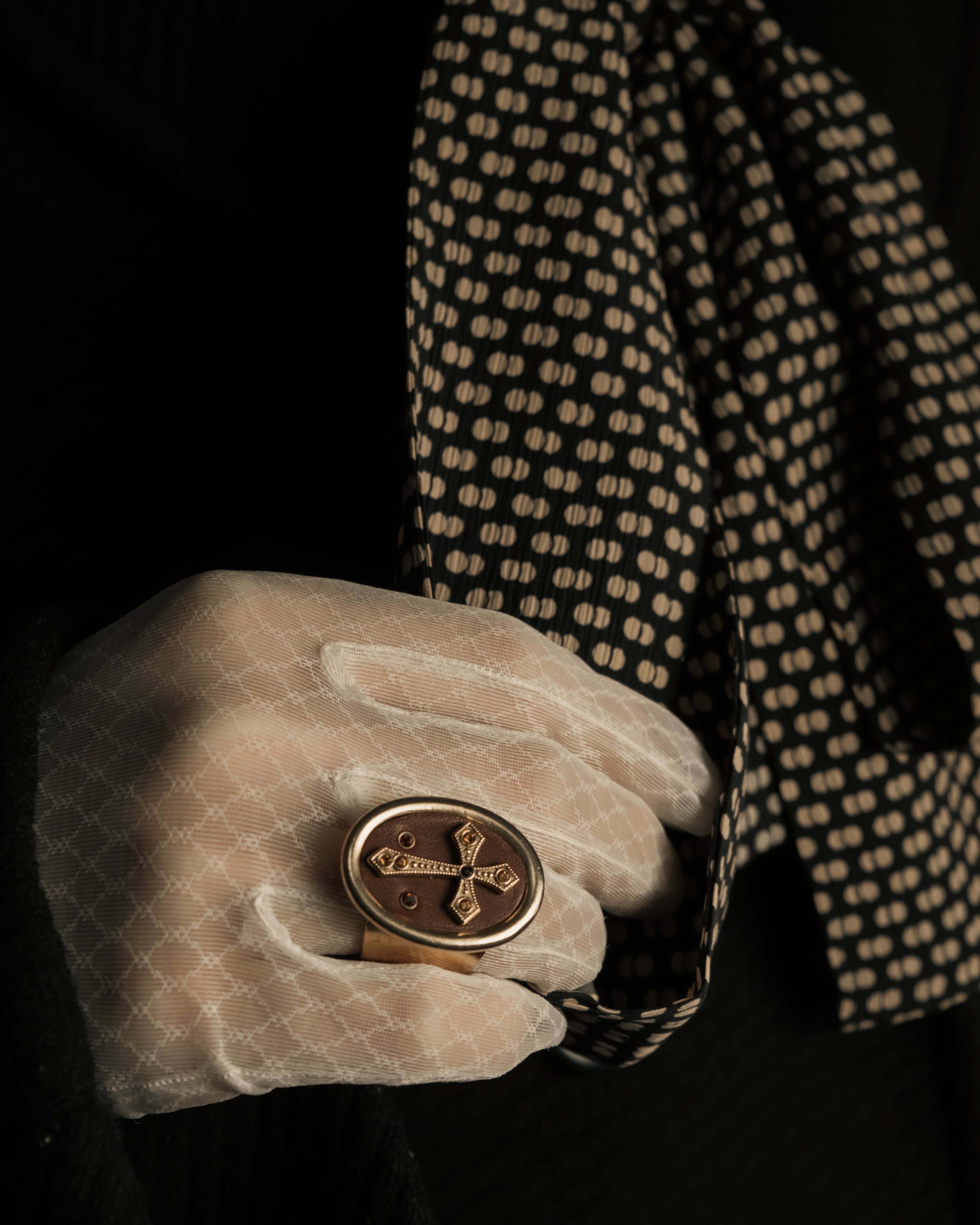 "JEAN PAUL GAULTIER" Cross motif leather panel gold ring -