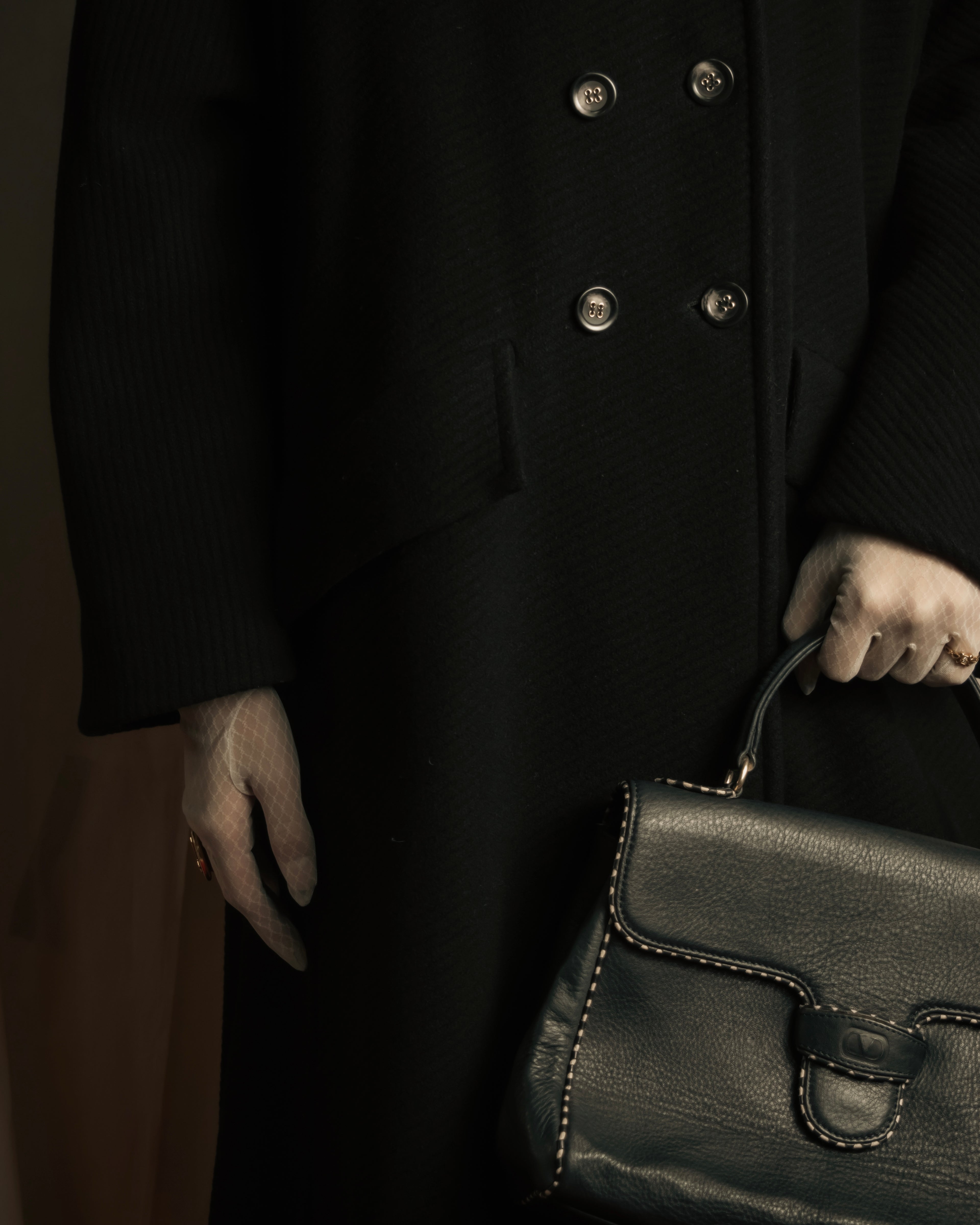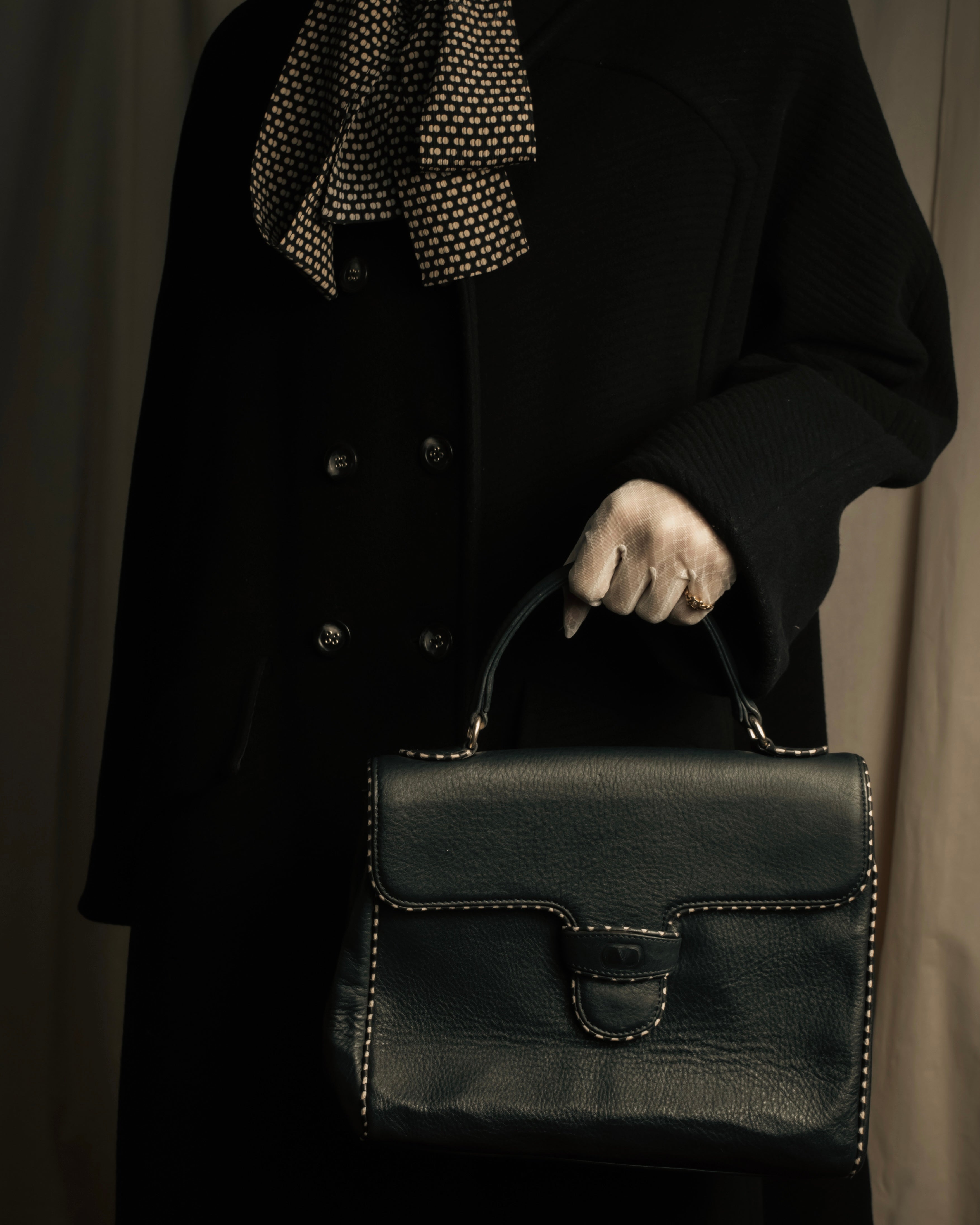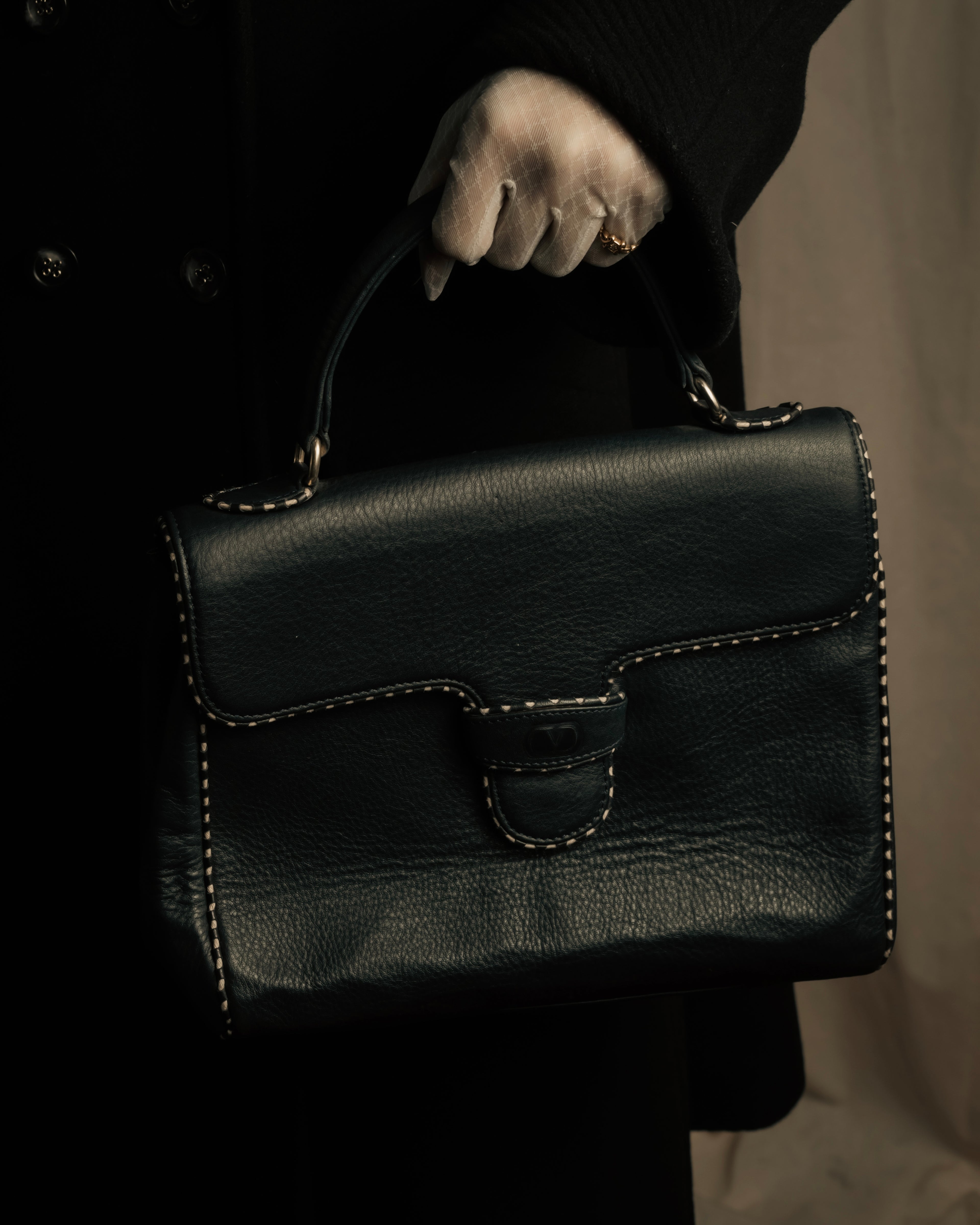 "Valentino Garavani" Saddle stitch design grain leather hand bag -