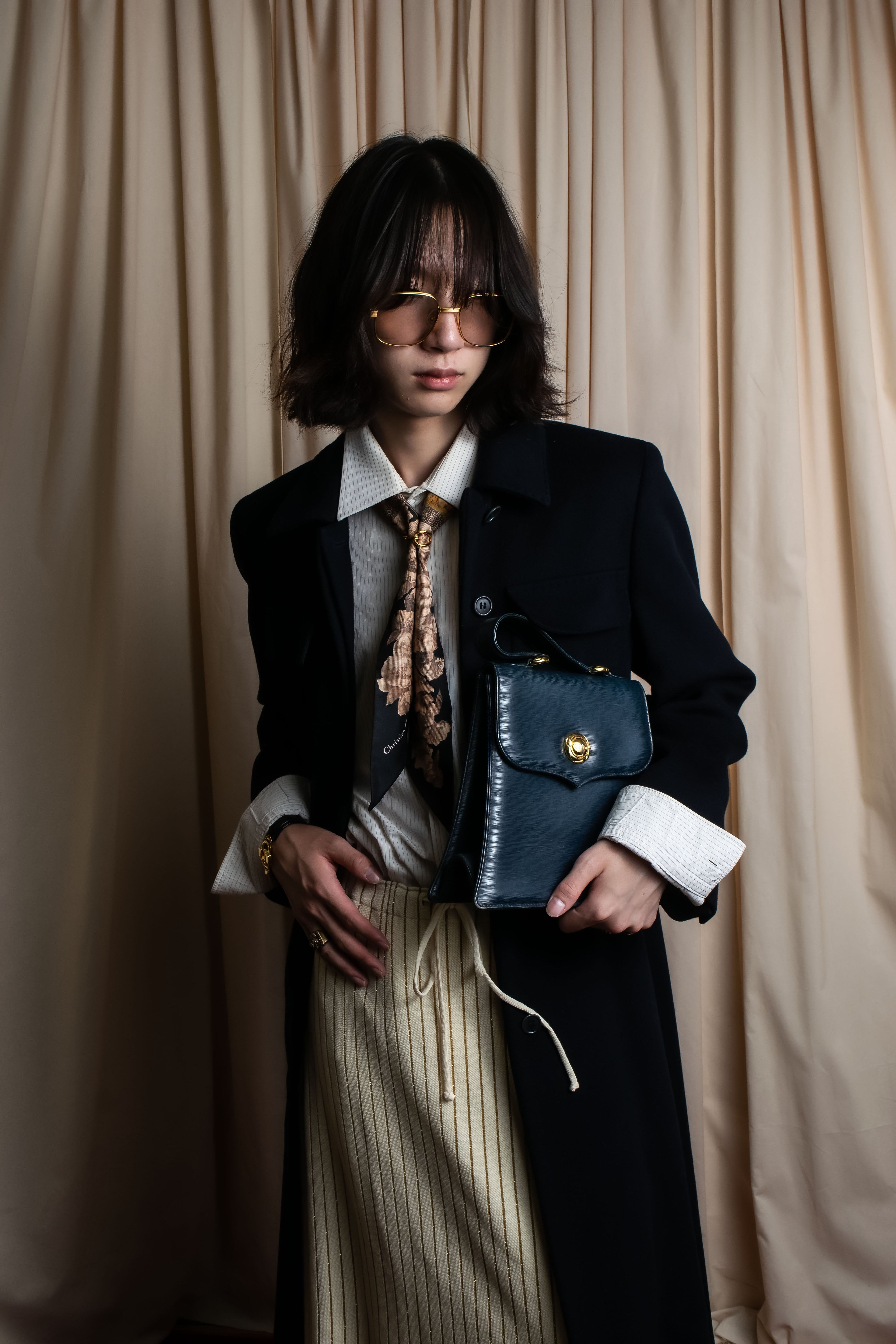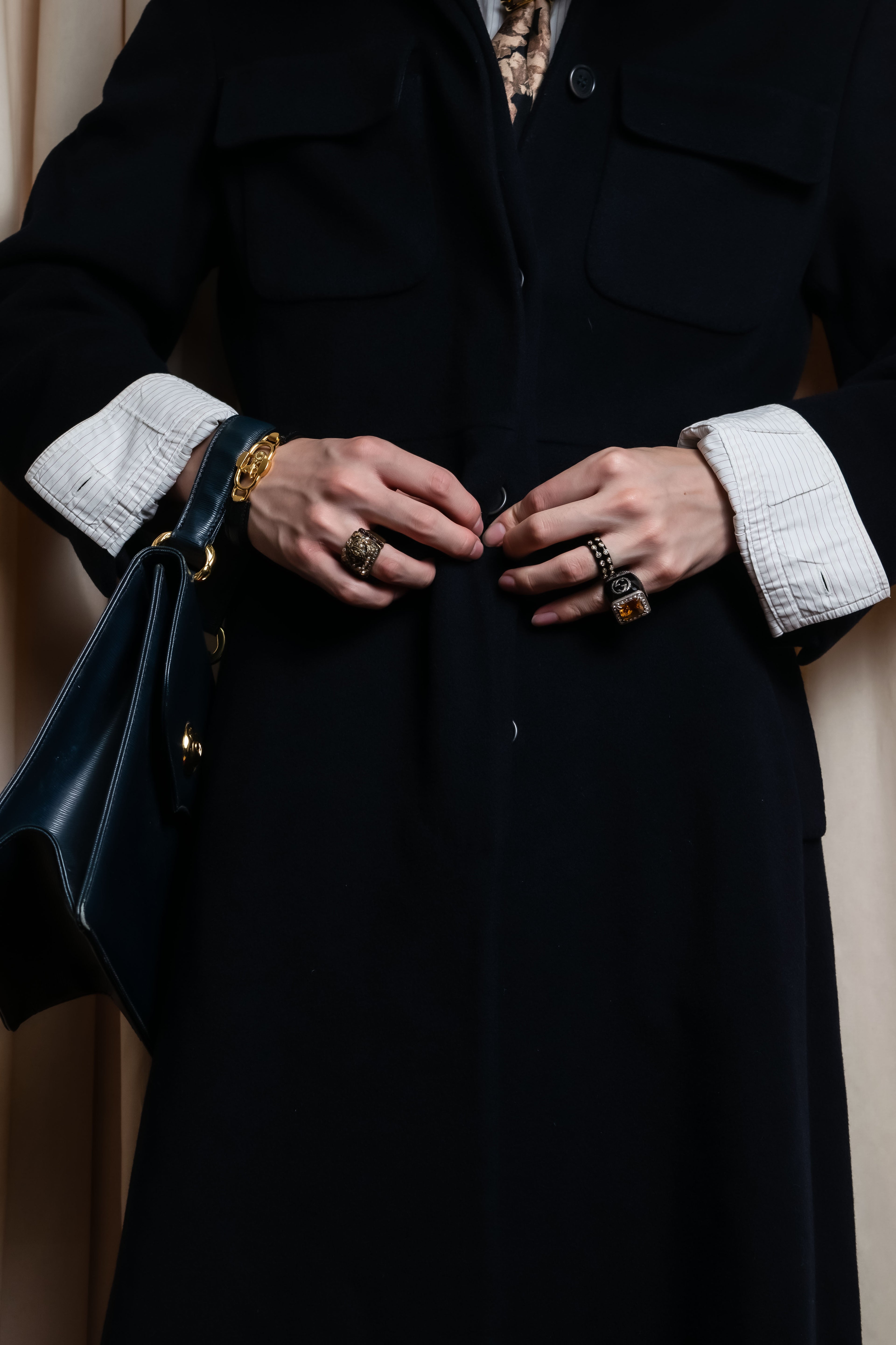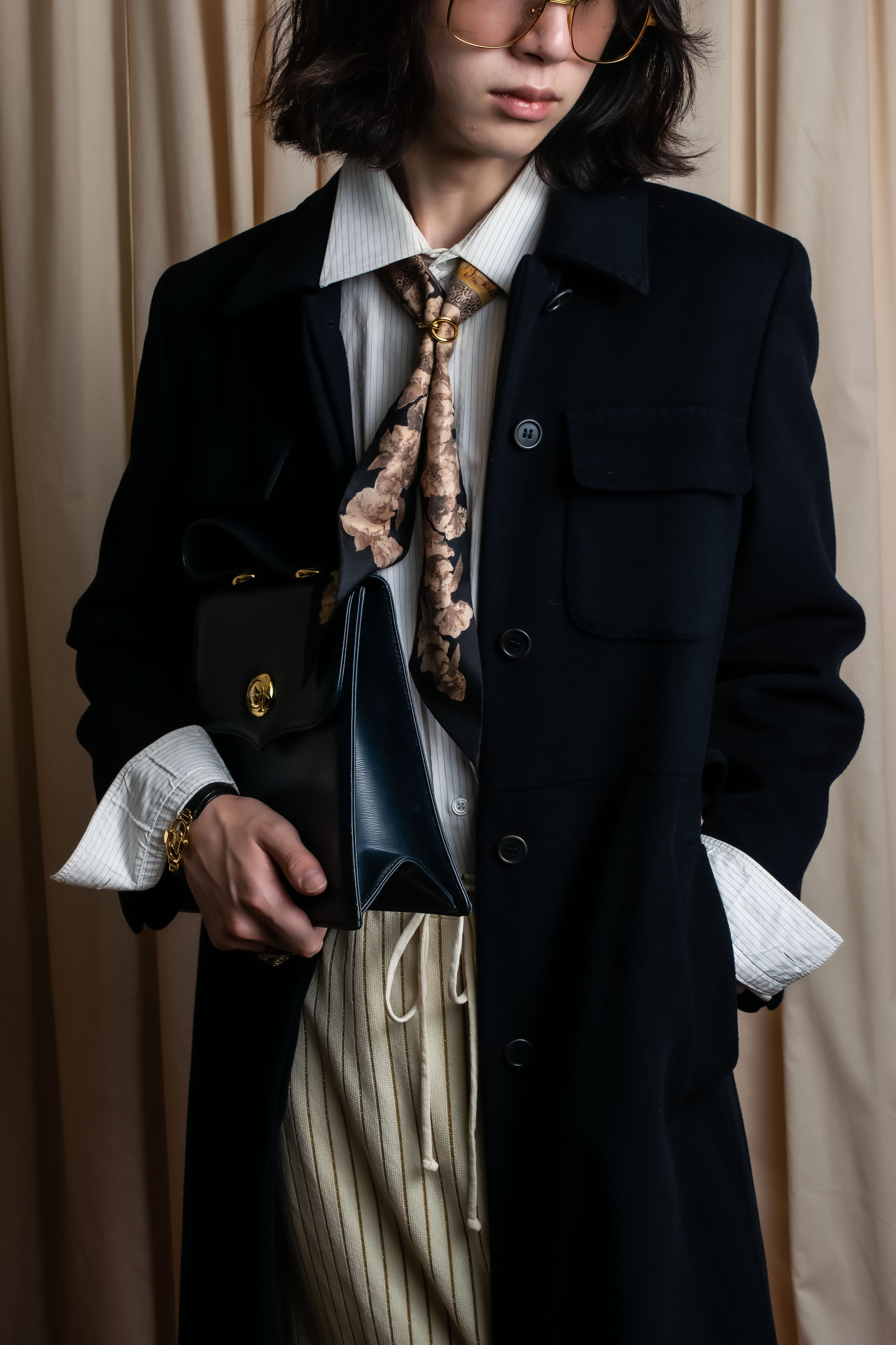 "BURBERRYS" Vintage stand collar concealed long coat -