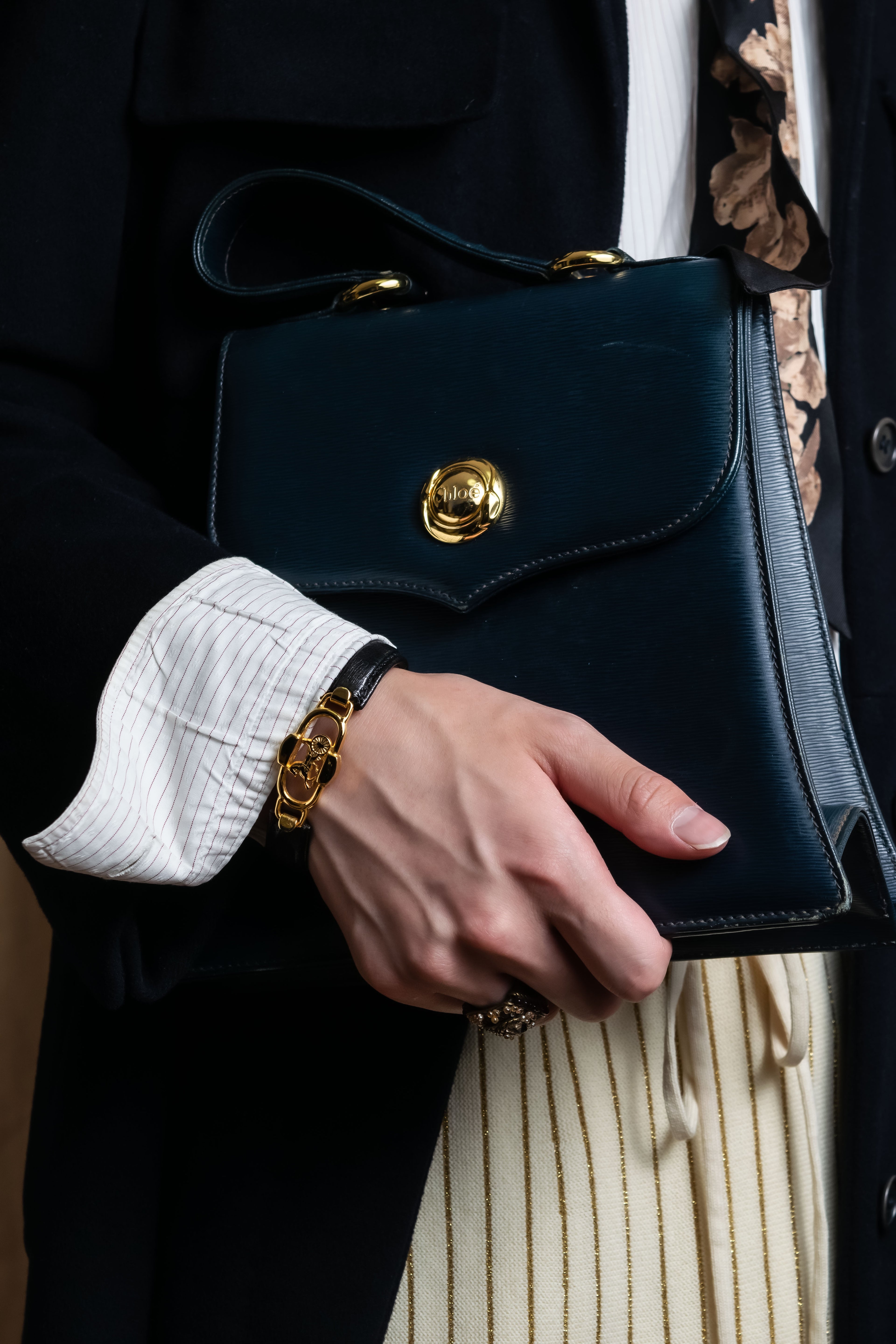"Christian Dior" Gold metal&black enamel combination design ring -