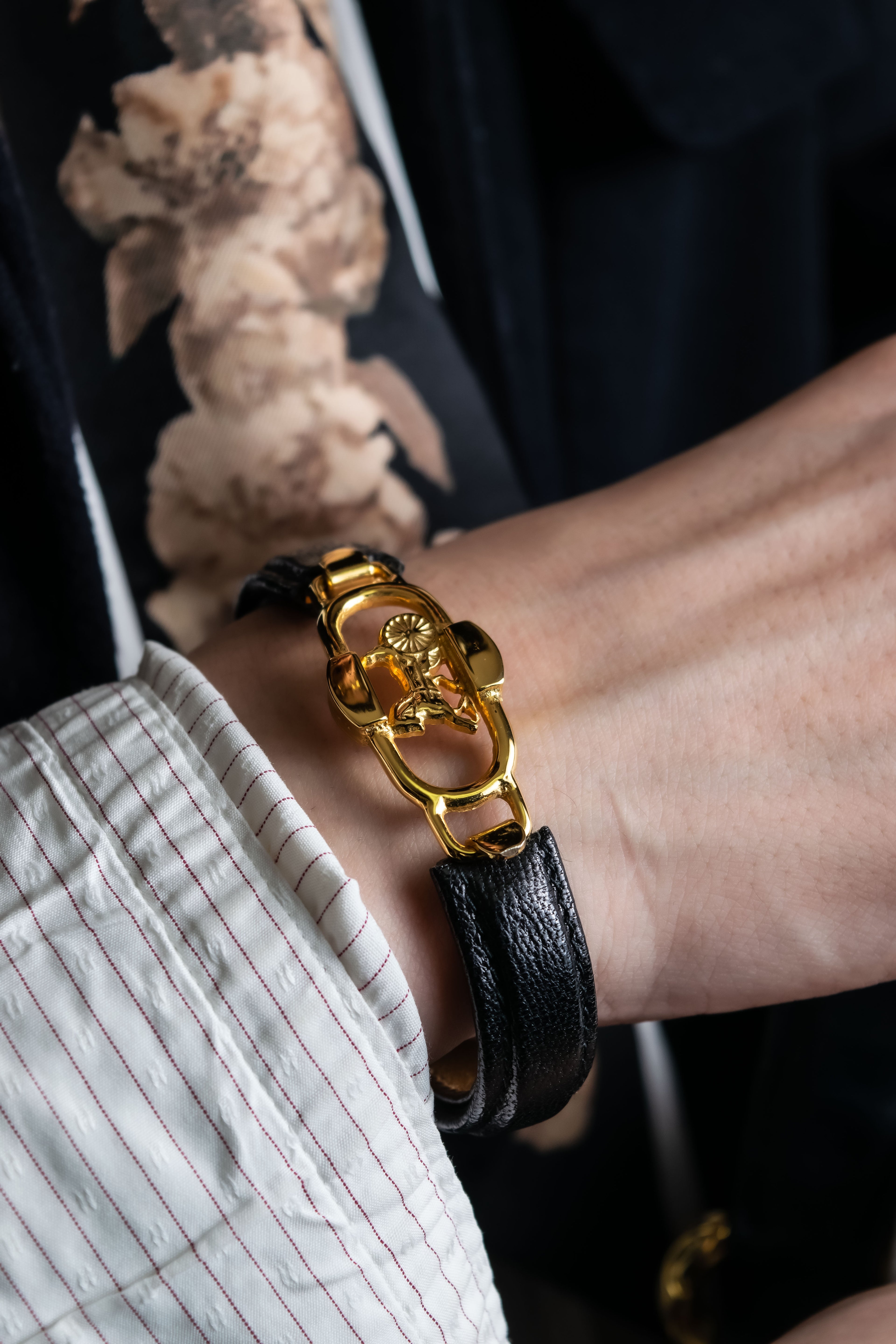 "CELINE" Horse-drawn carriage motif buckle leather bracelet -