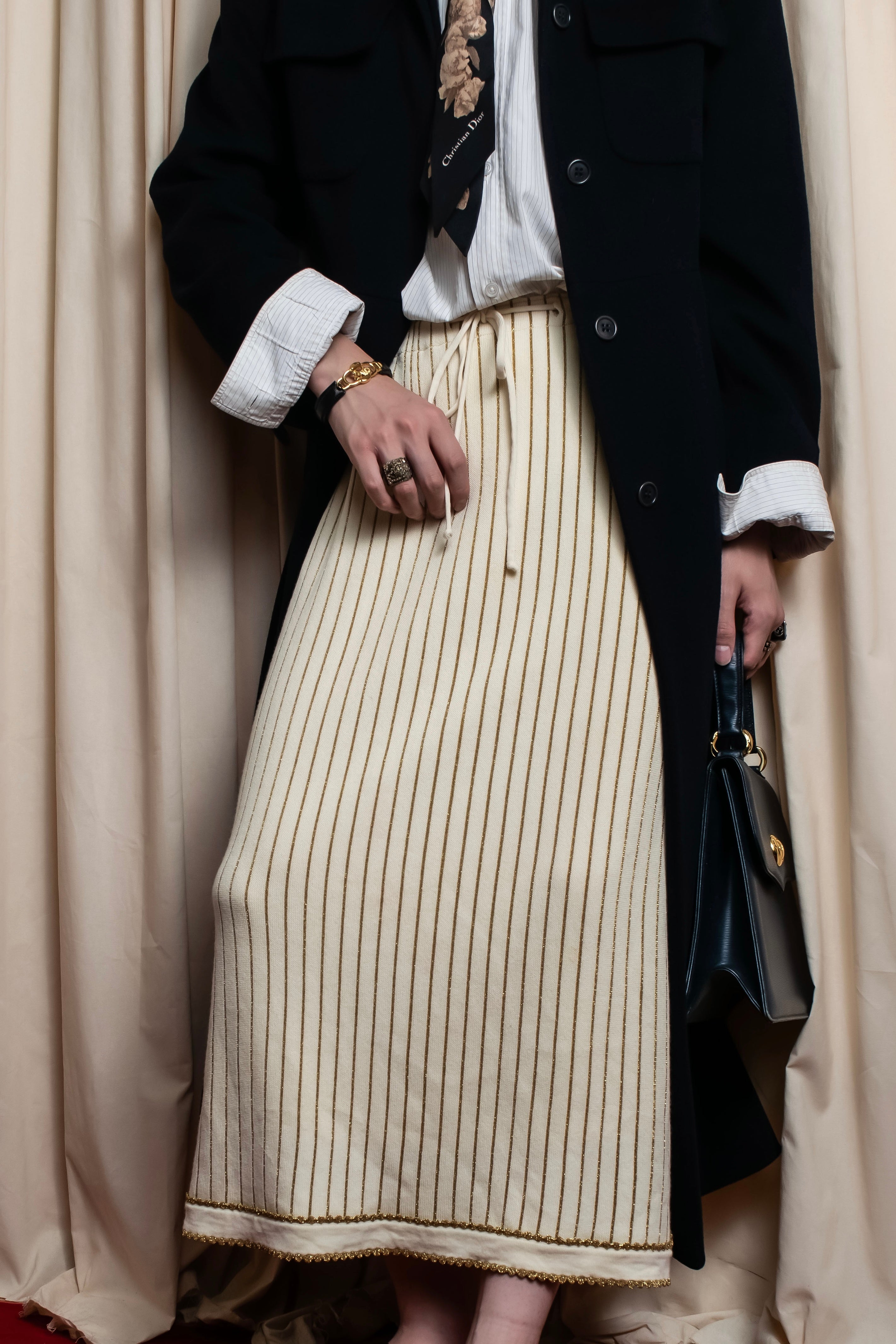 "HERMES" Multi-stripe pattern hand-sewn nuance cotton shirt
