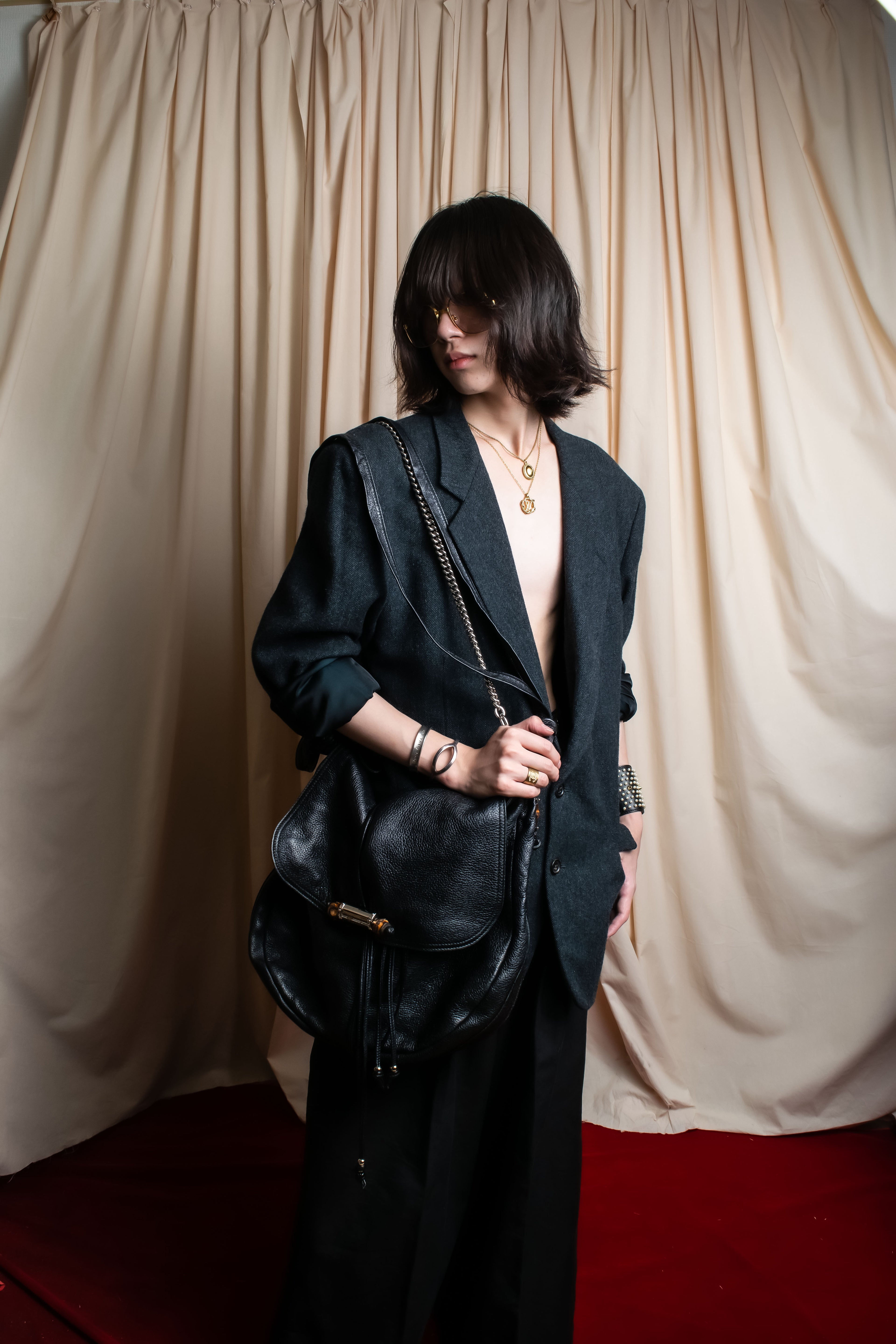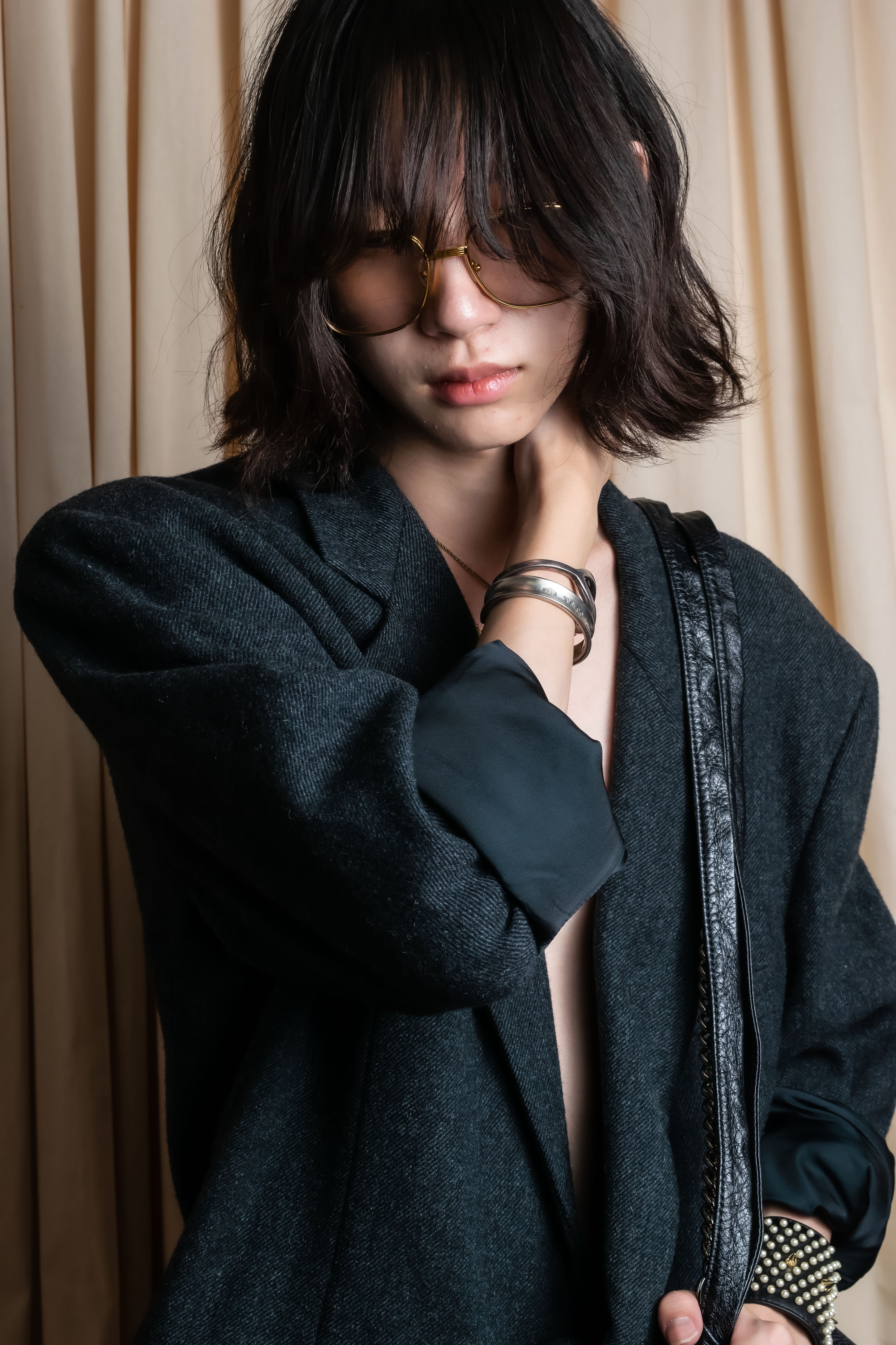 "YVES SAINT LAURENT" 70’s-80’s structured herringbone tweed tailored jacket