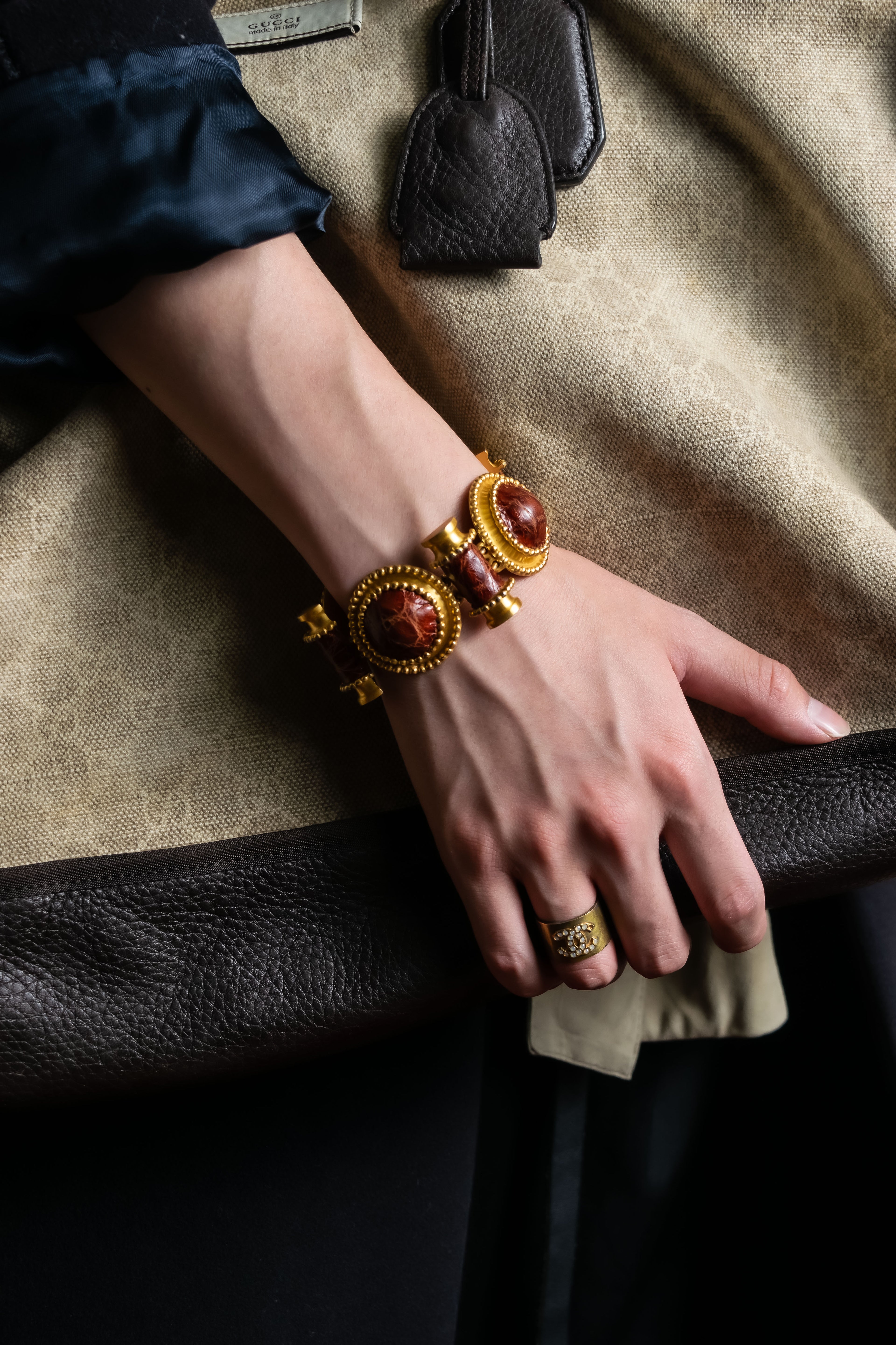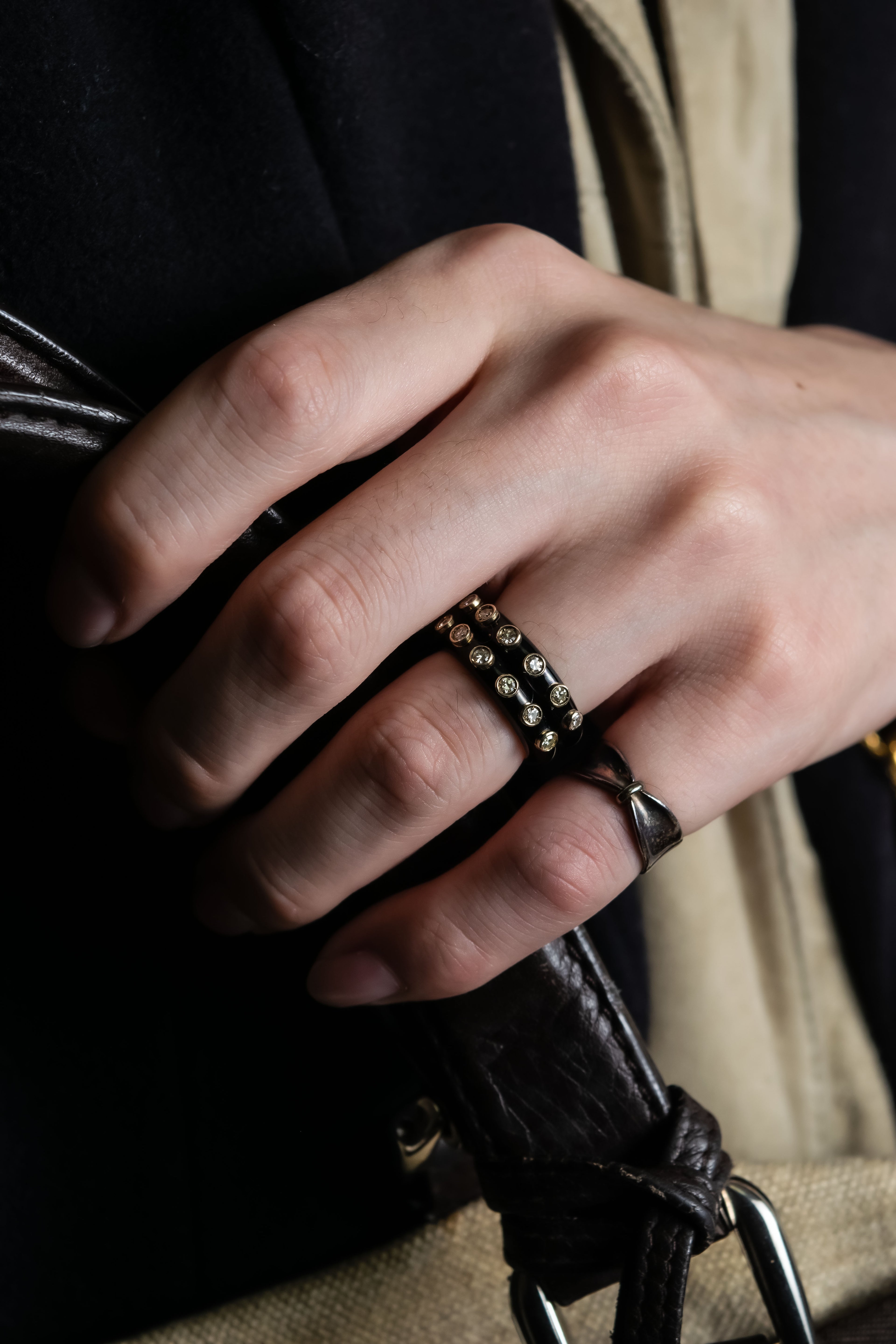 "Christian Dior" Gold metal&black enamel combination design ring -