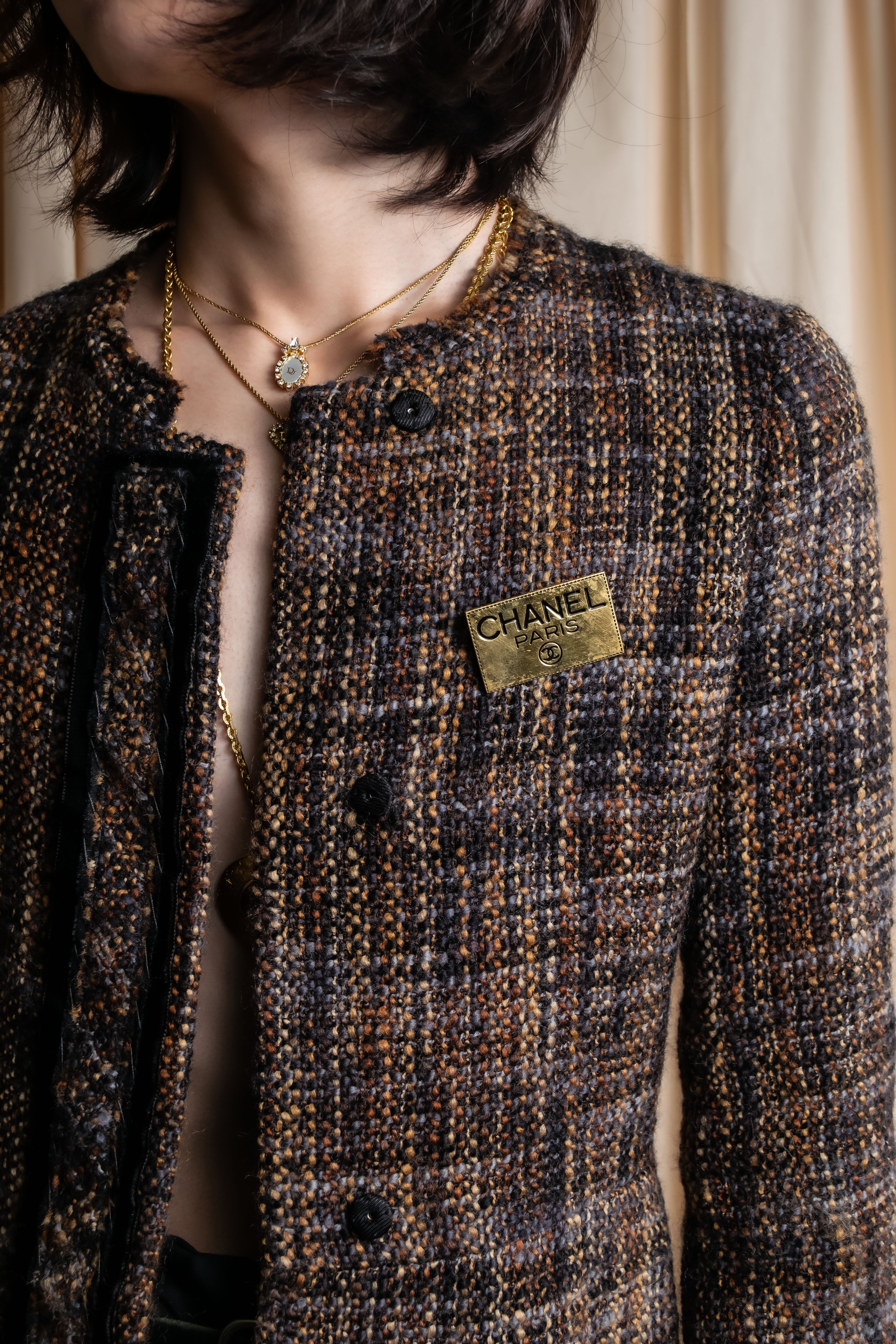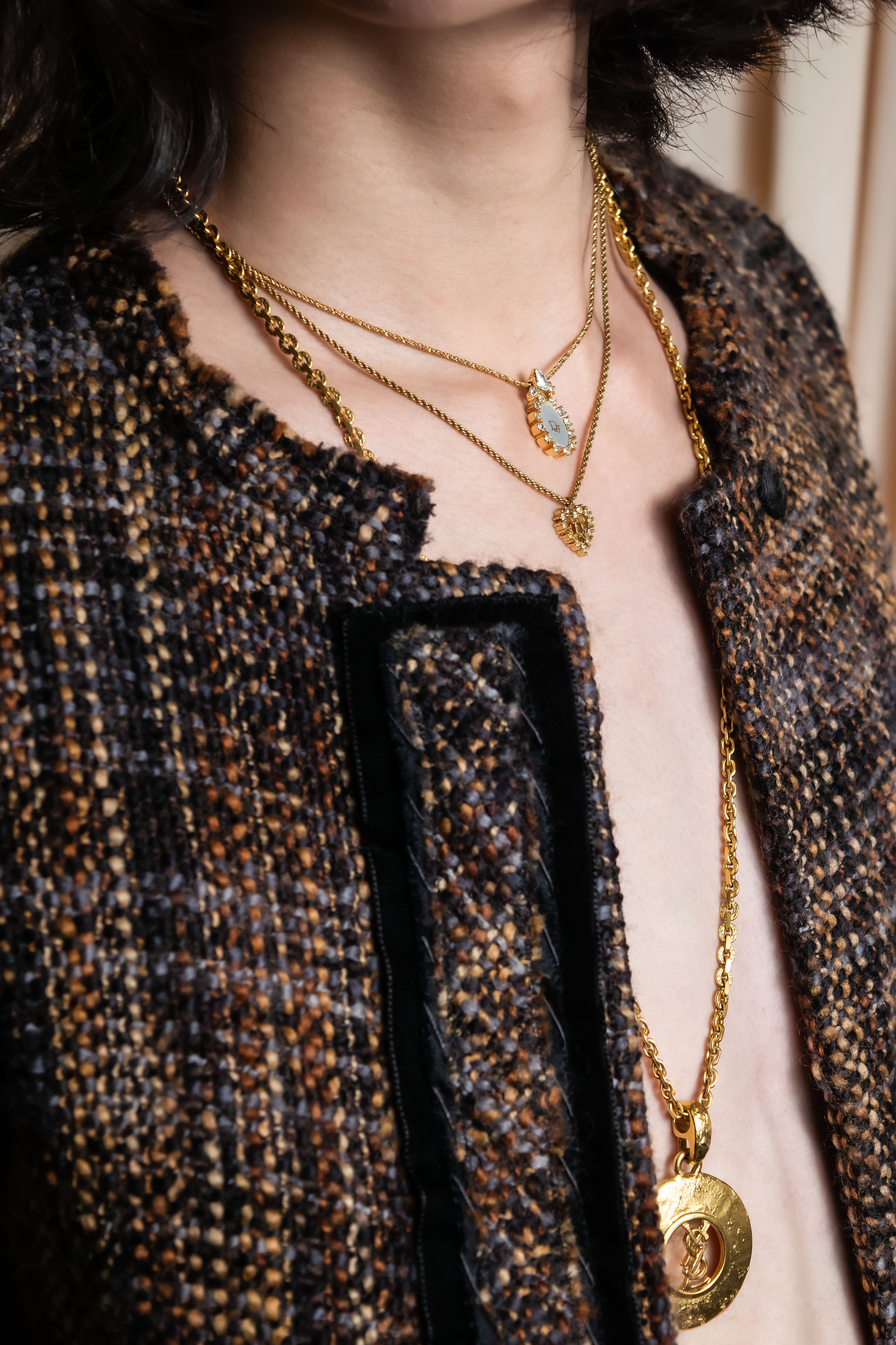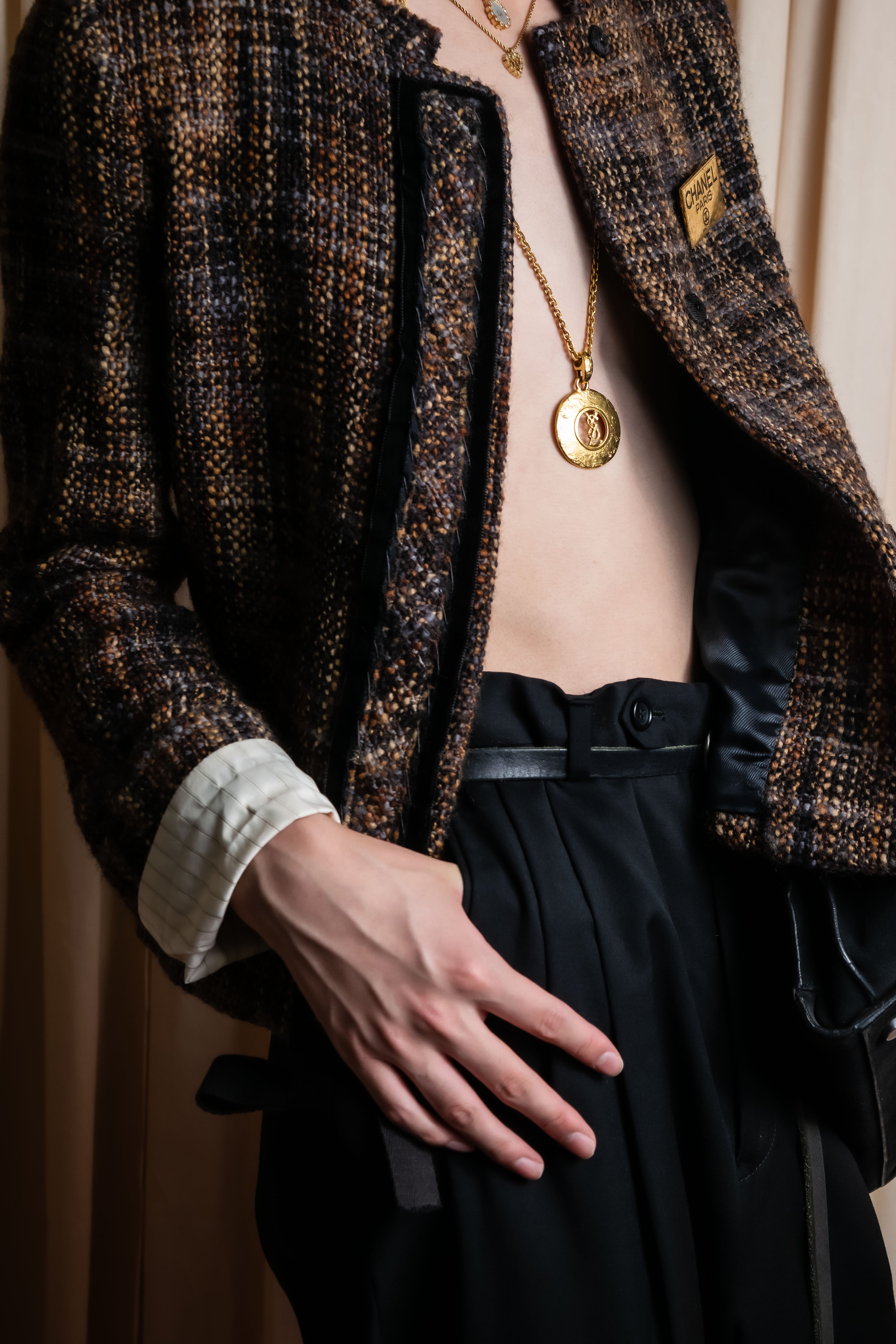 "YVES SAINT LAURENT" Embossed medallion YSL charm necklace -