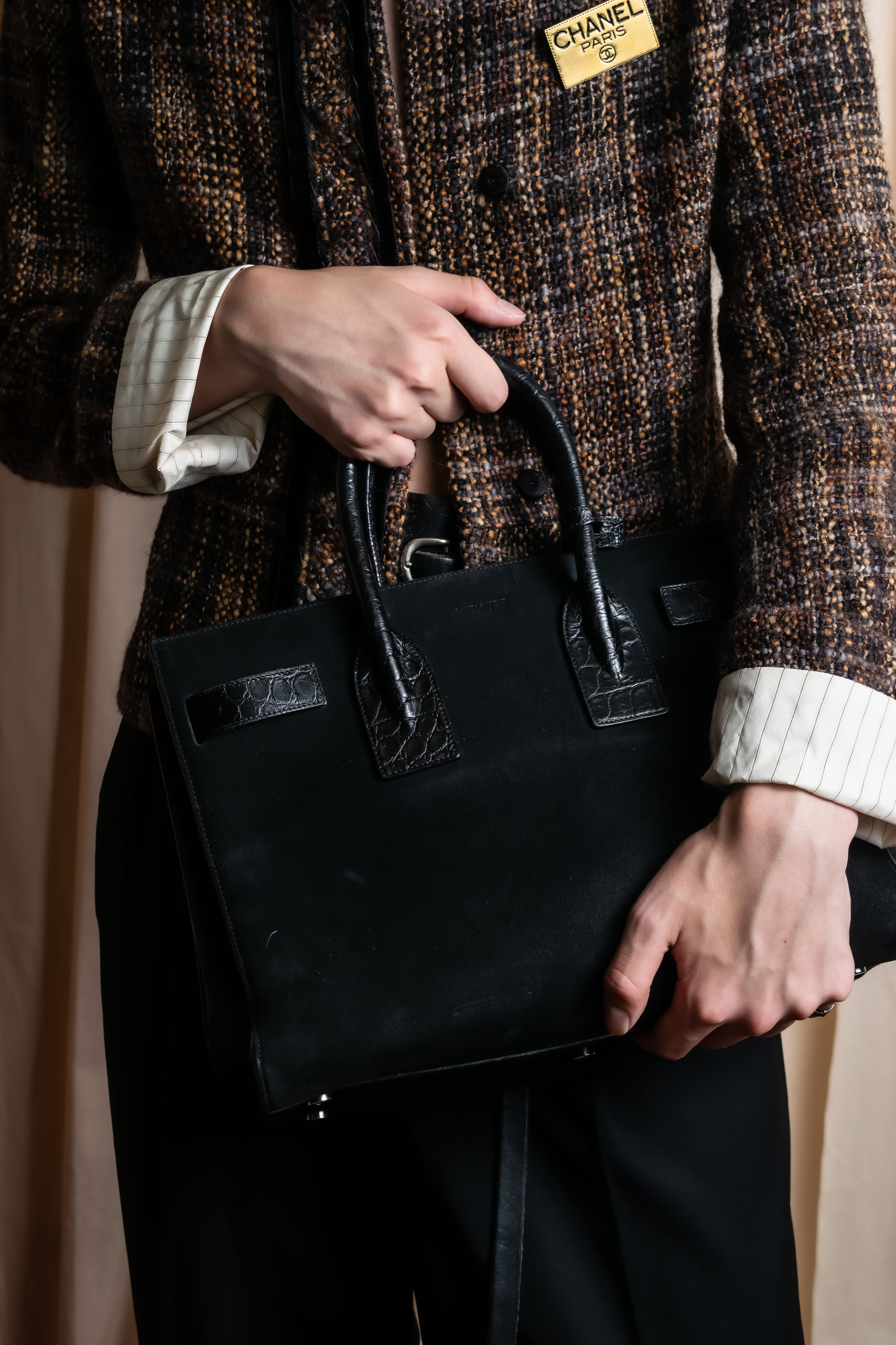 "Saint Laurent" Sac du Jour leather combination 2way bag -