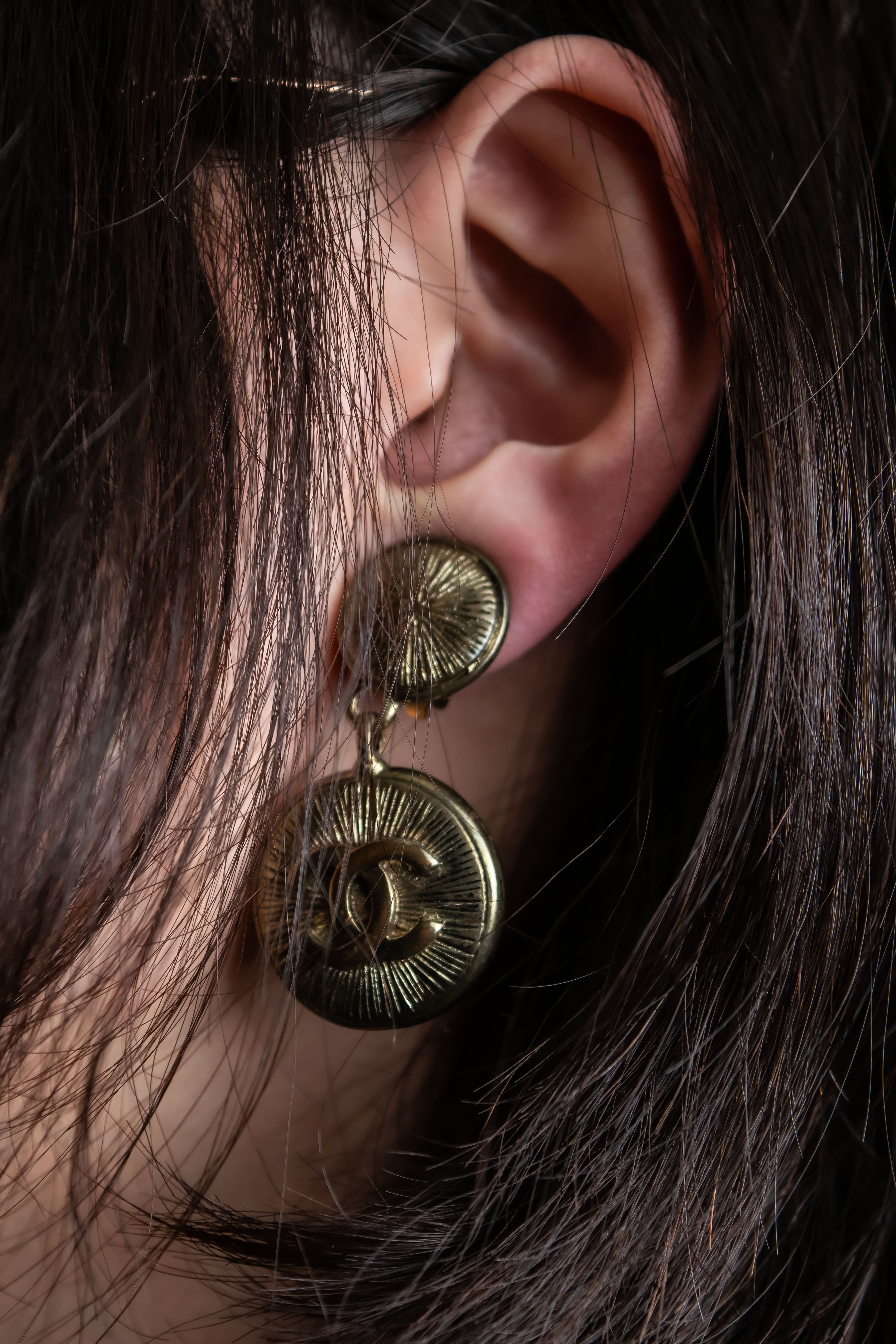 "CHANEL" Coco mark engraved gold earring -