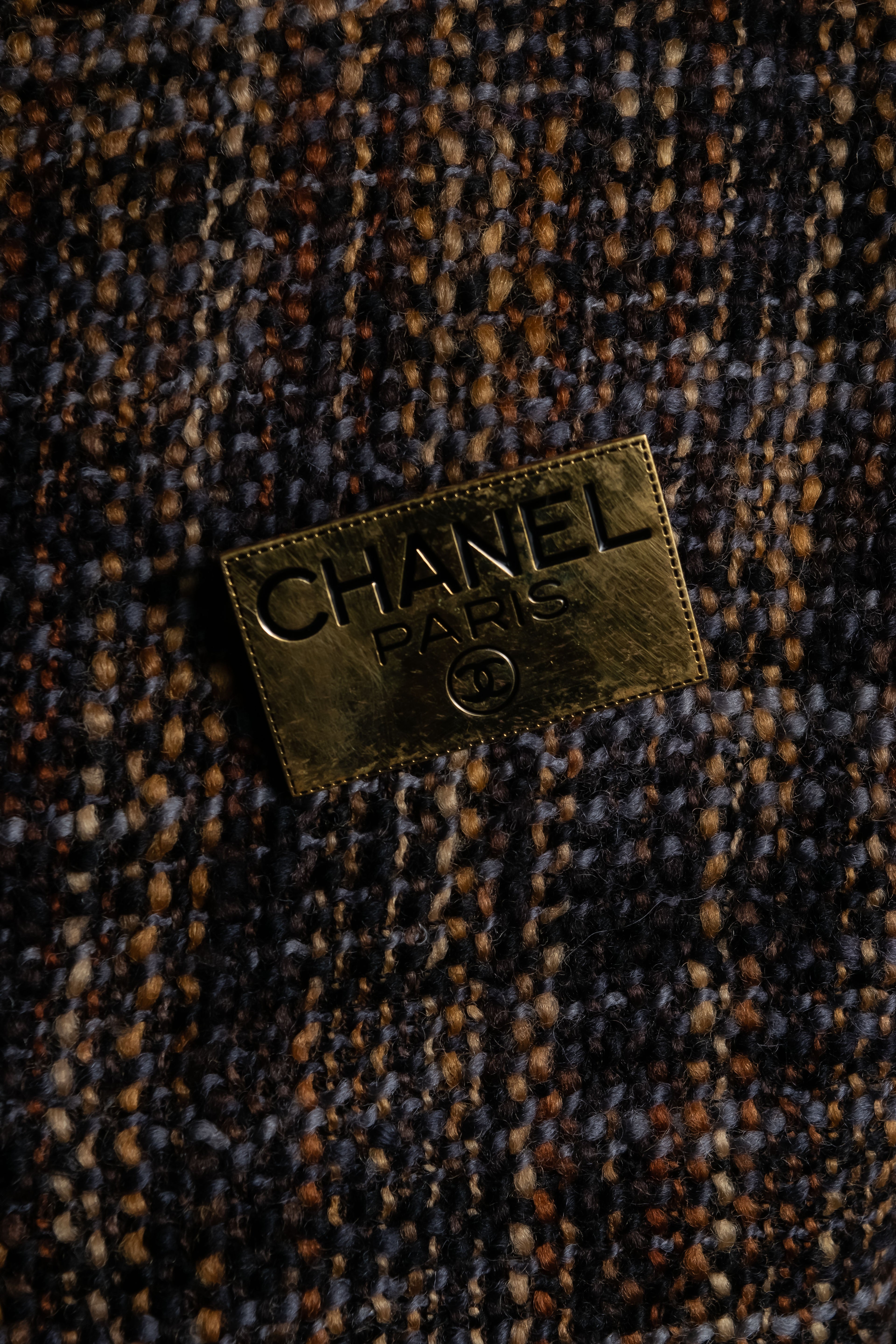 "CHANEL" Logo engraved gold plate brooch
