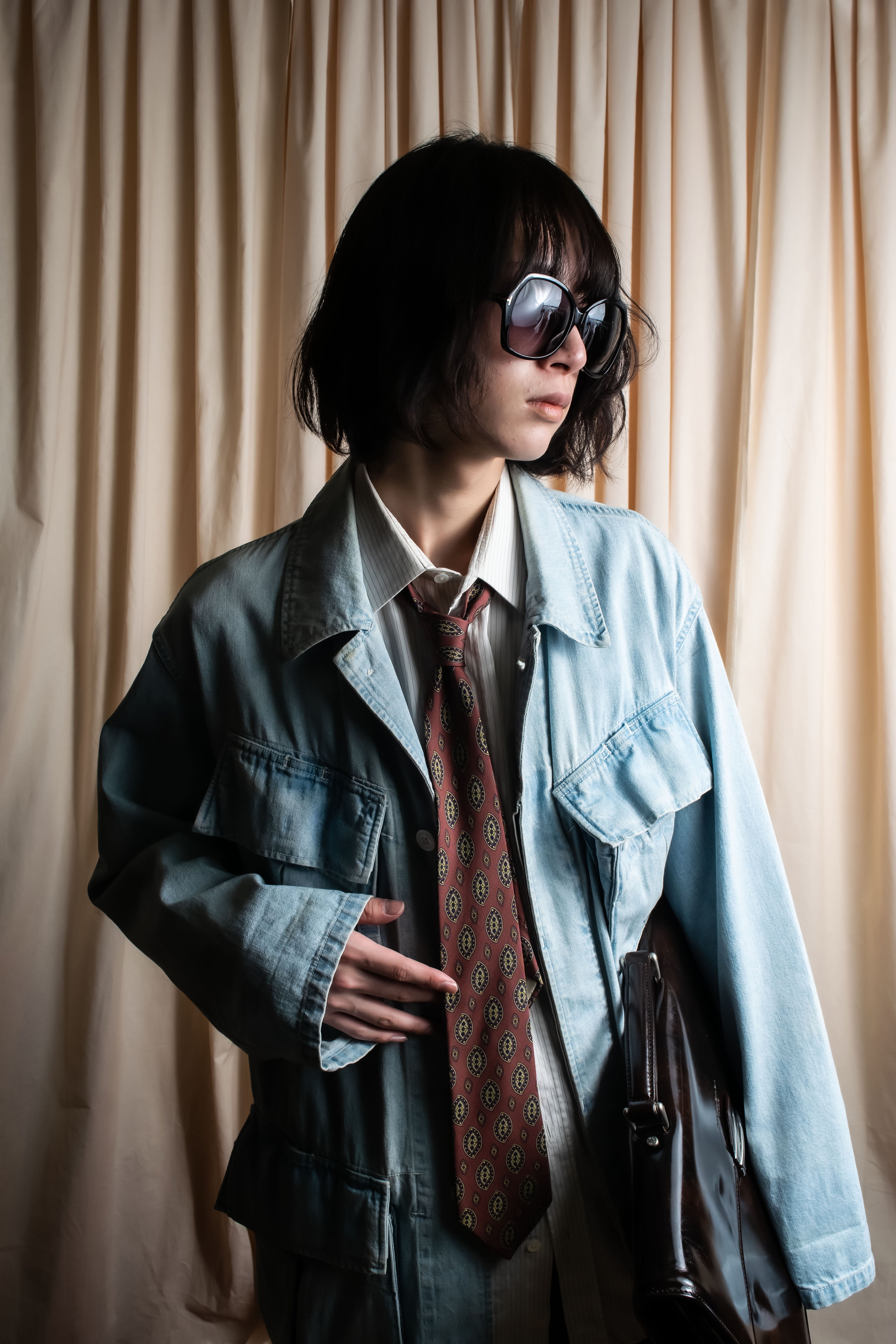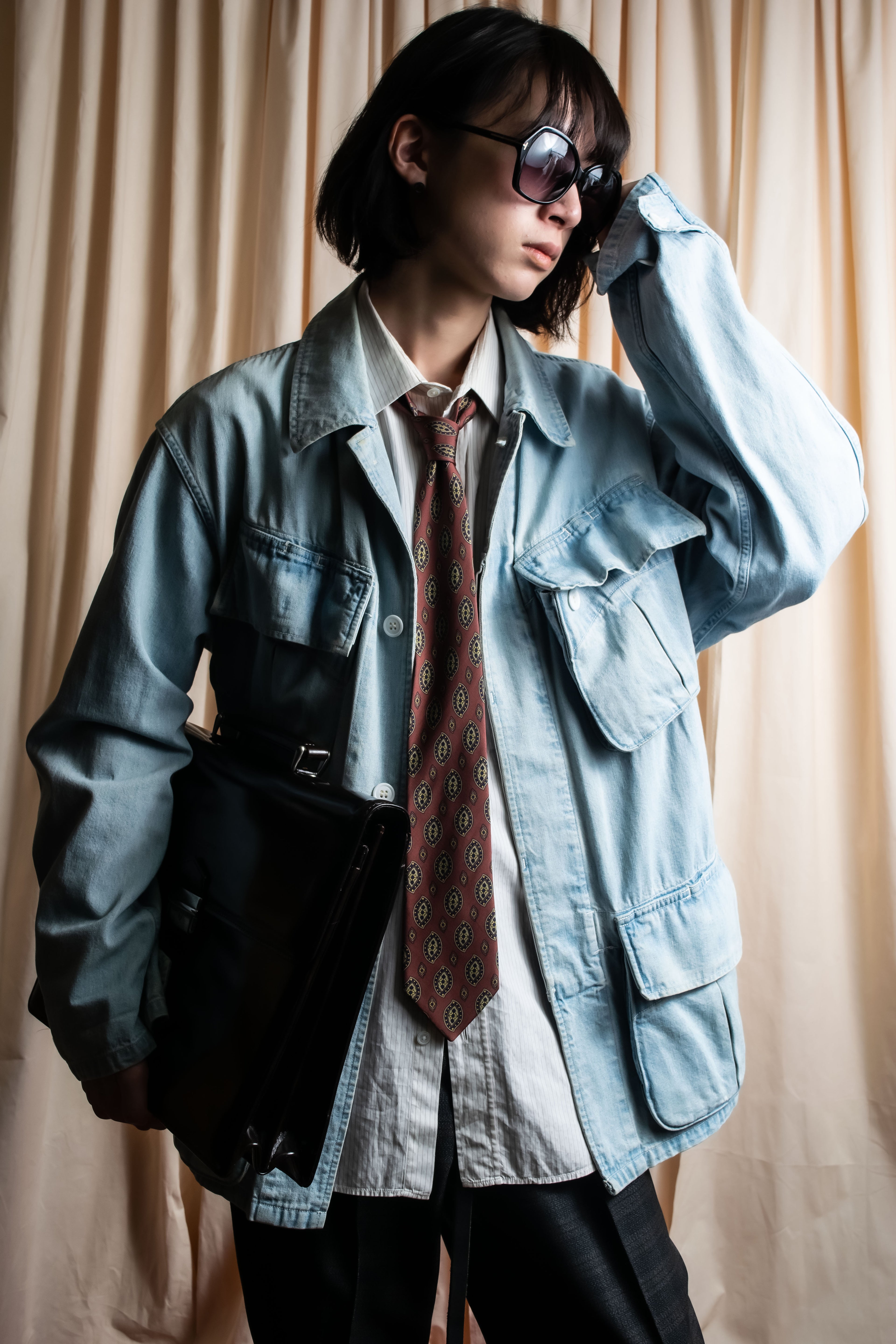 “Gianni Versace” 80’s-90’s Shadowed-texture tailored jacket