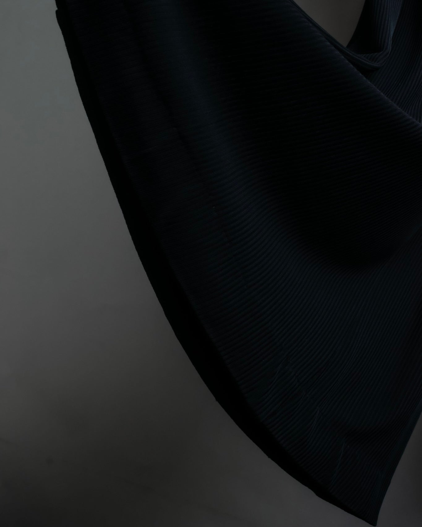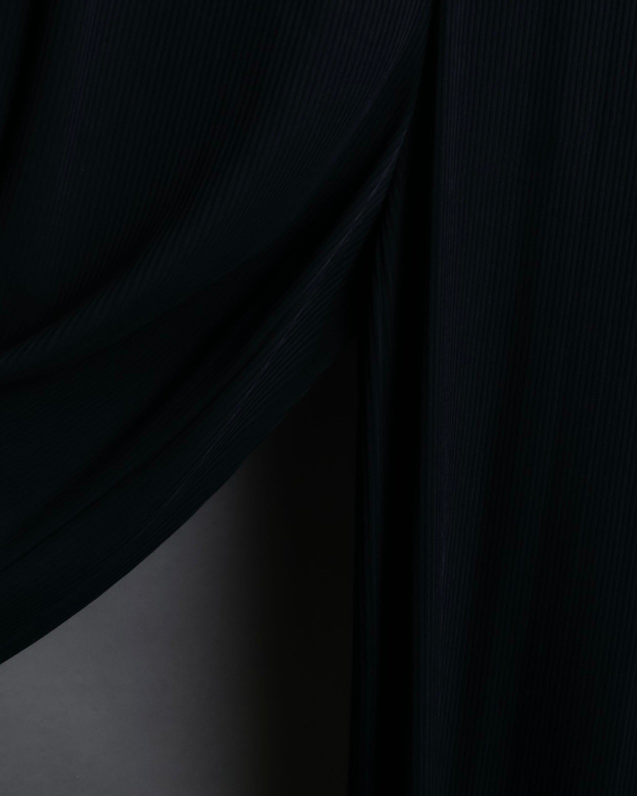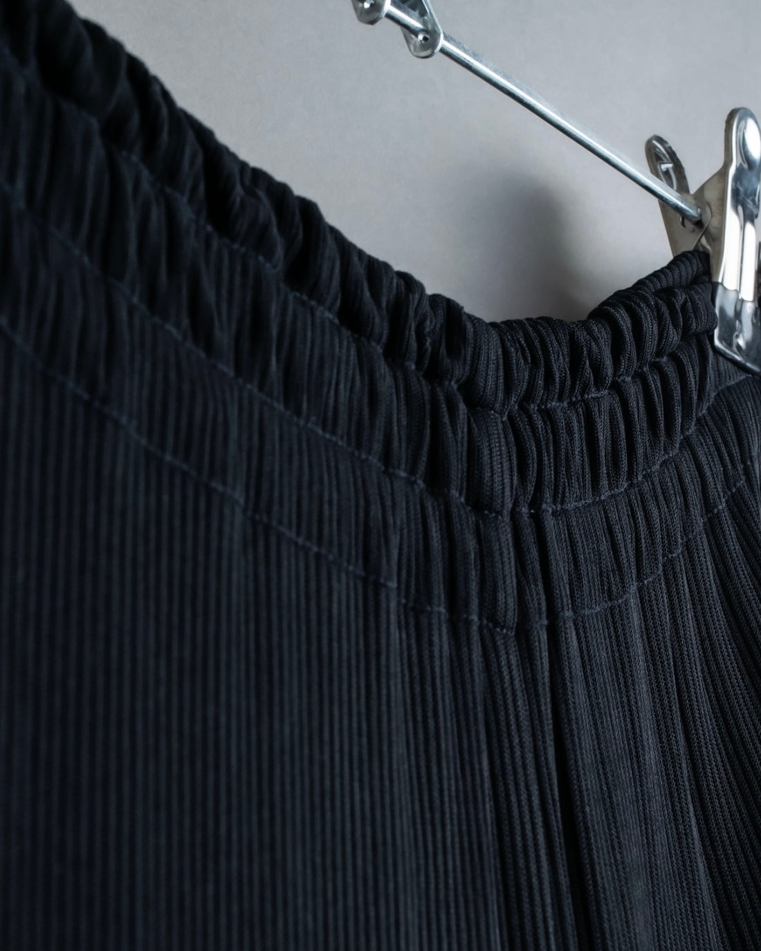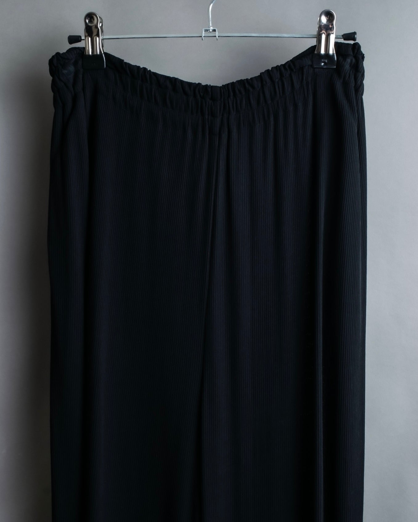 非常に細かなプリーツが全面にあしらわれたデザインと、裾にかけてゆったりとしたバギーシルエットによる、優雅な雰囲気漂うドレープ感が魅力のこちらの逸品。
