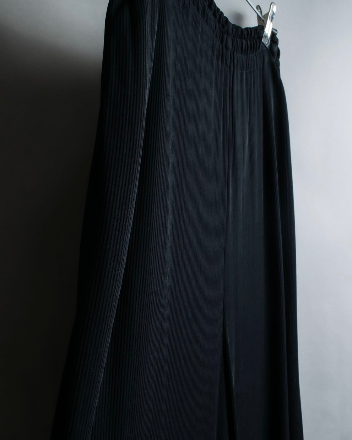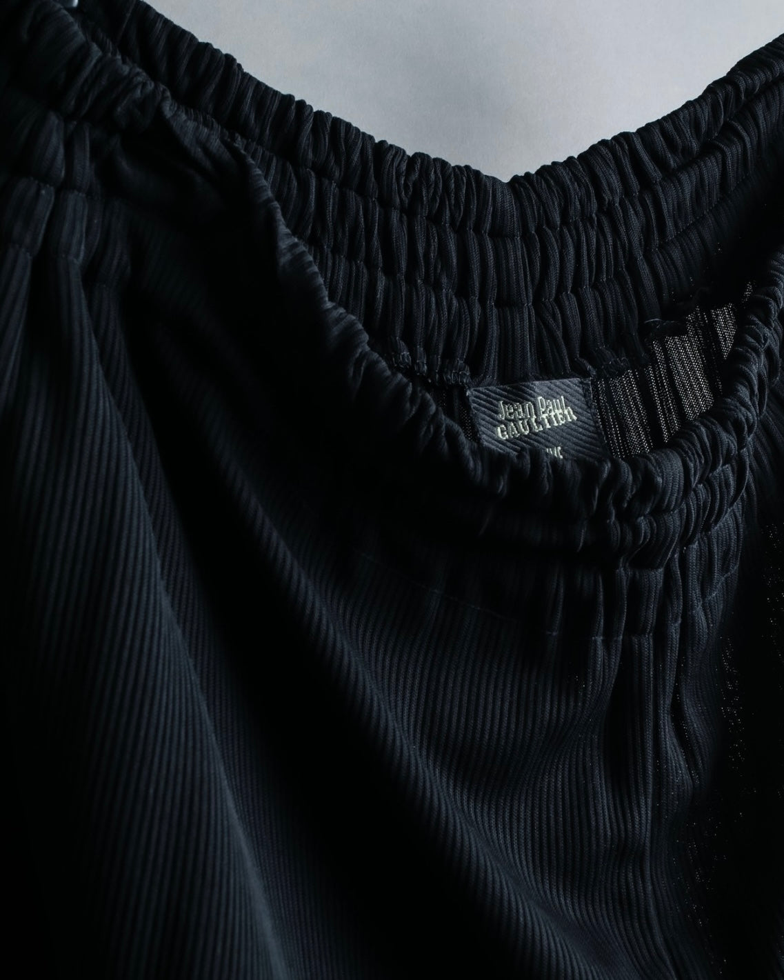 裾幅が非常に大きいのに加え、プリーツの入ったトロトロな生地感によってゴルチエらしいアイコニックでジェンダーフリーな雰囲気でご着用頂けます。