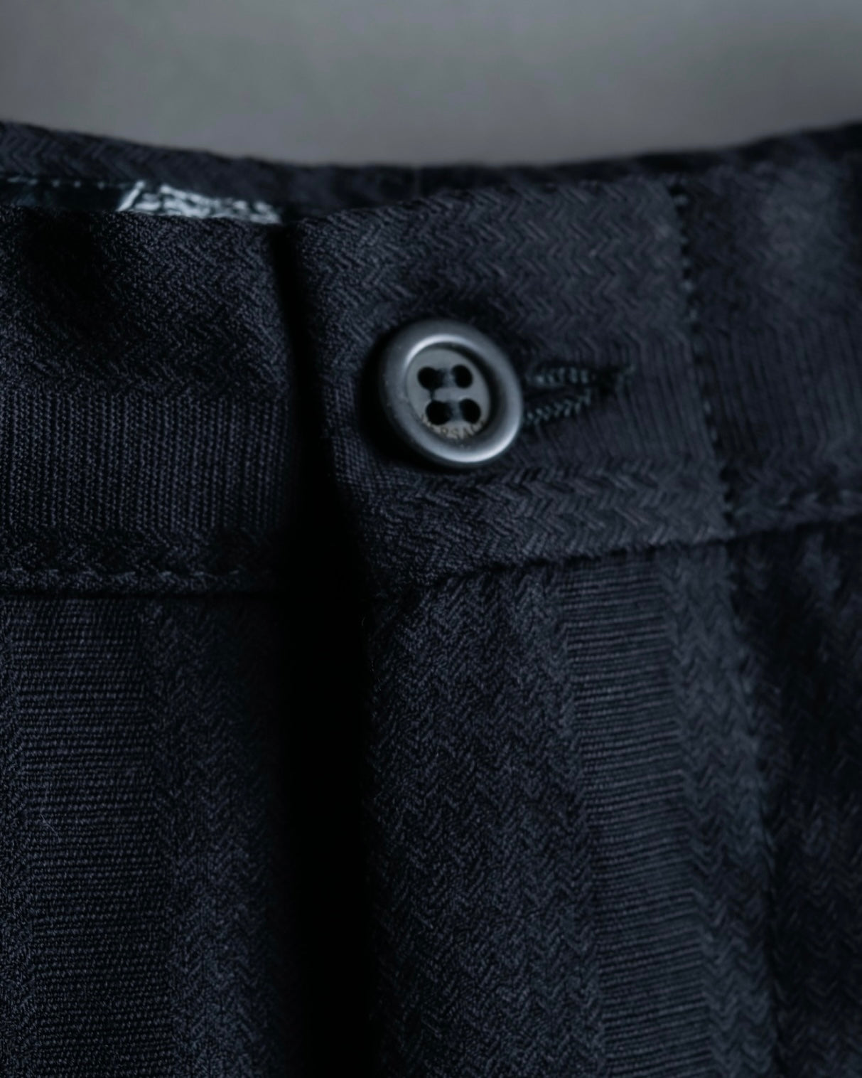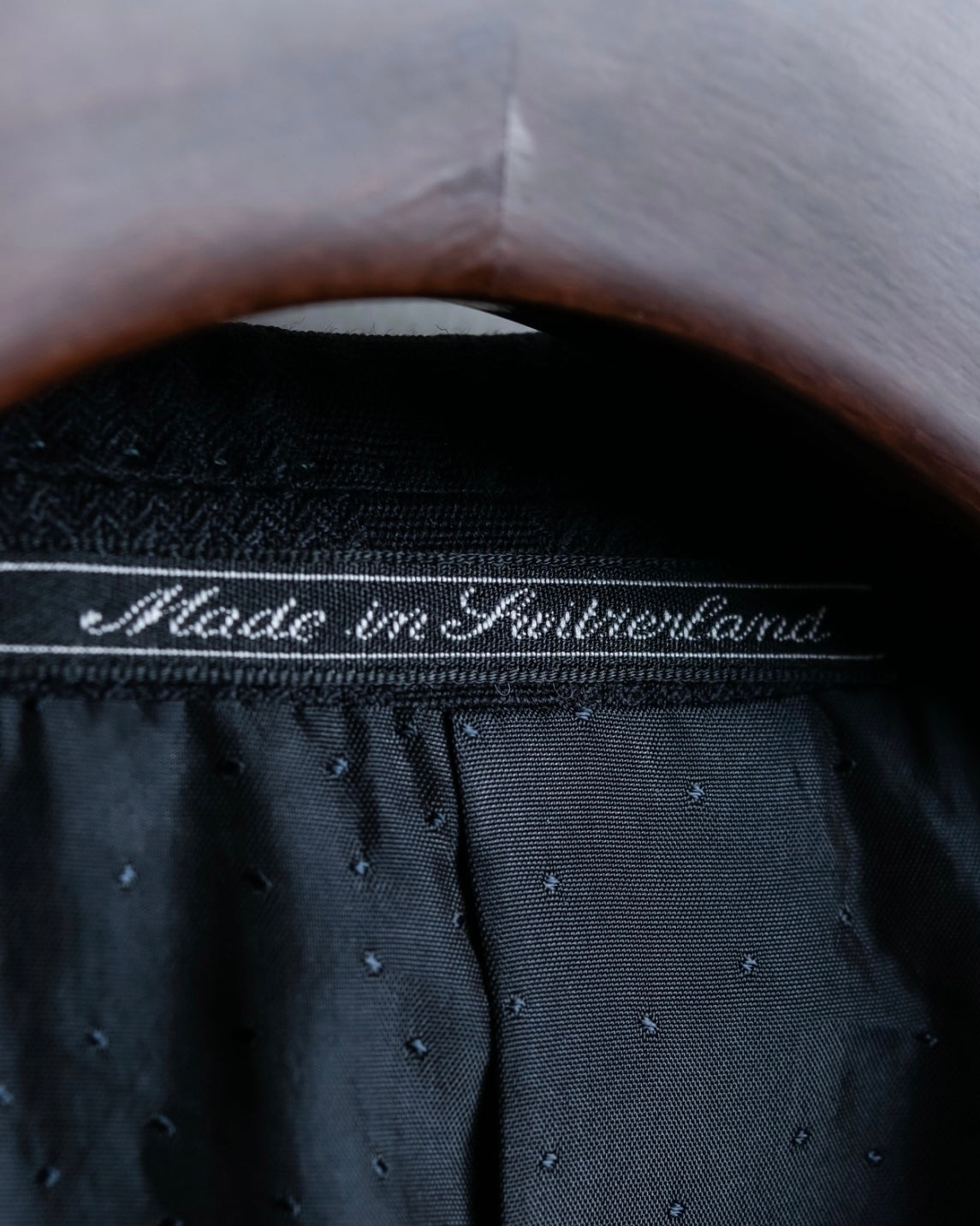 1つ目は極上の生地感となっており、イタリアで独自に開発した鈍く光る黒地のストライプを用いております。