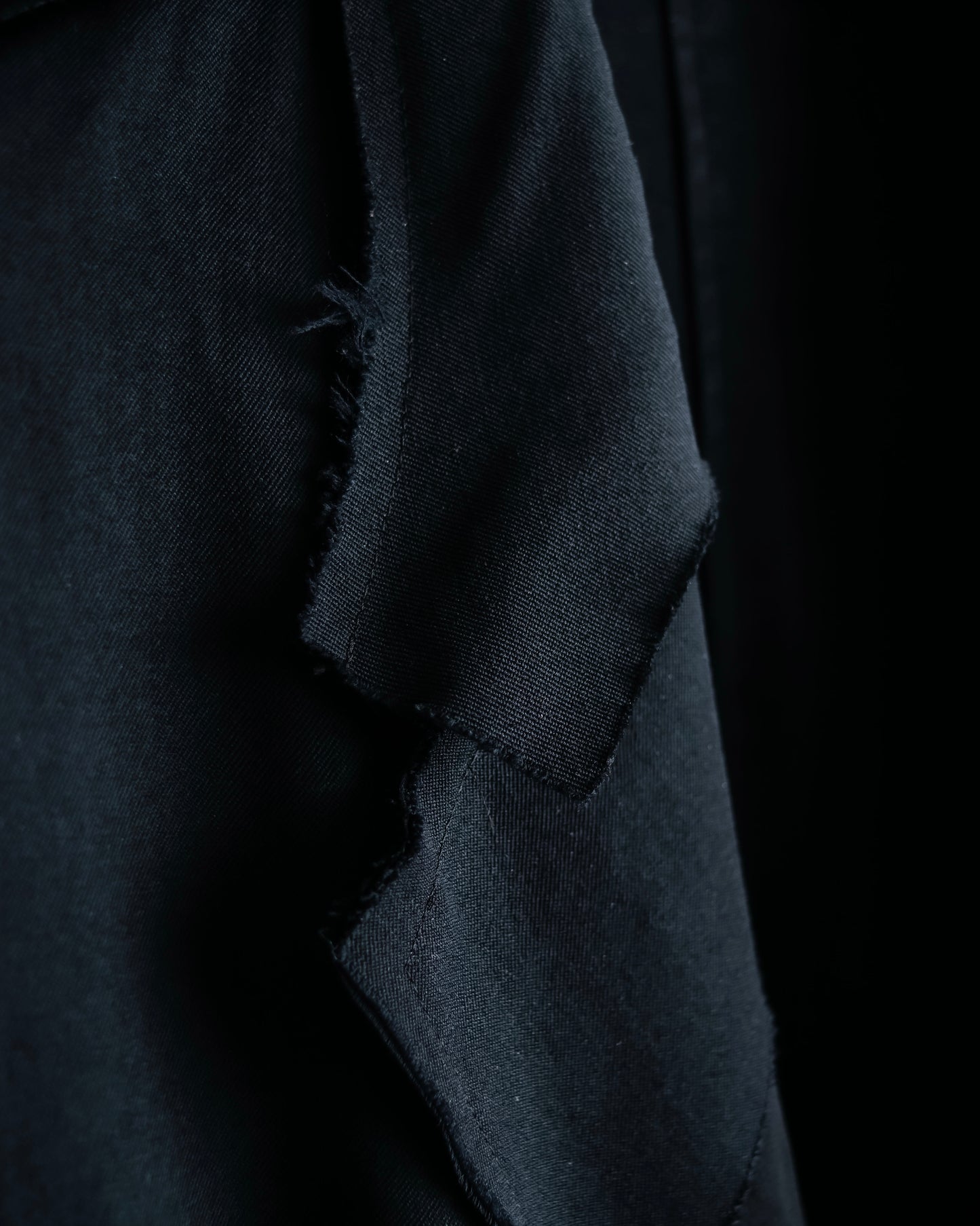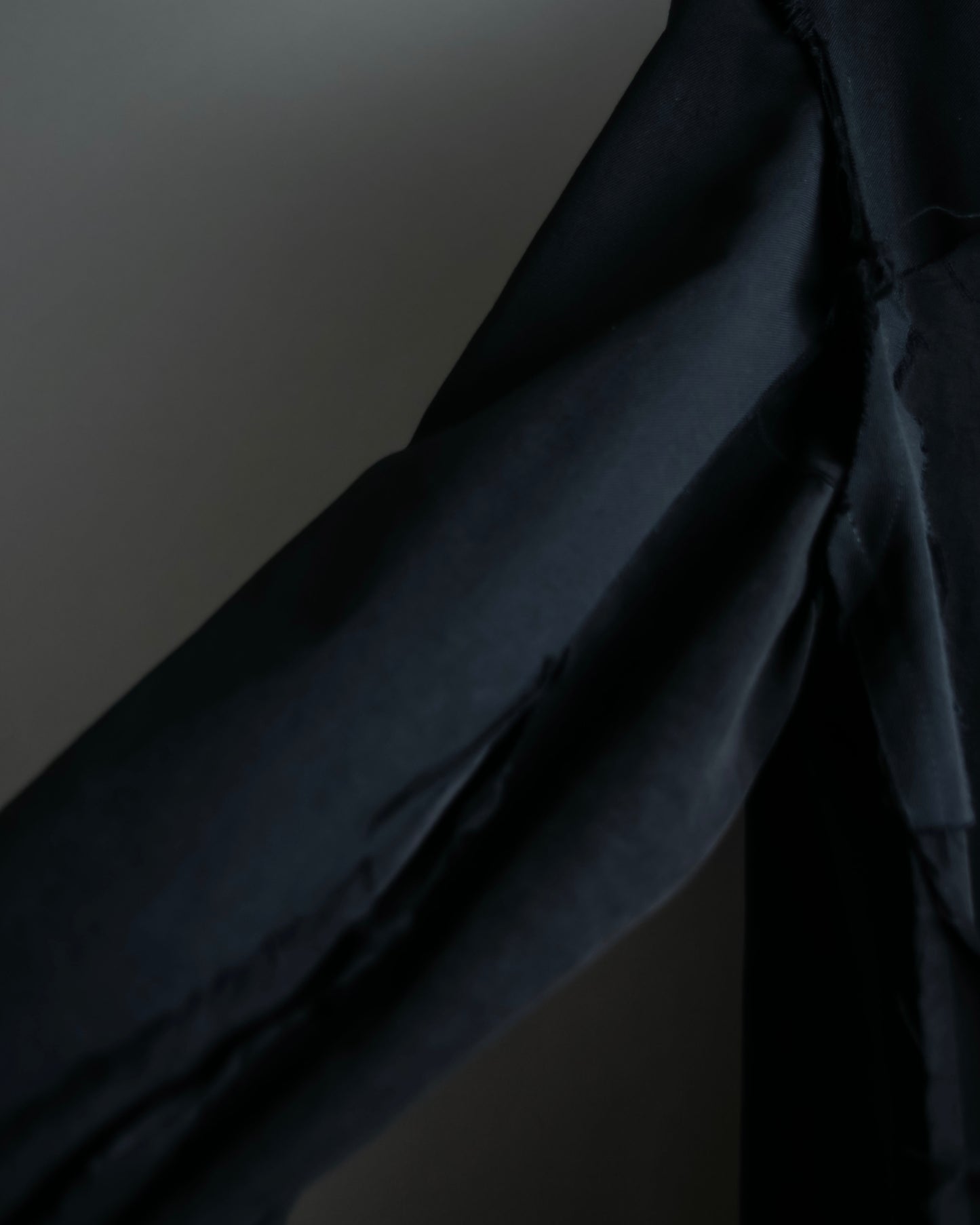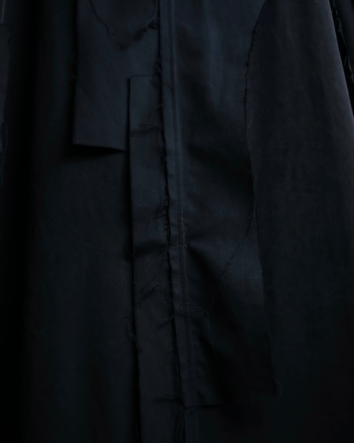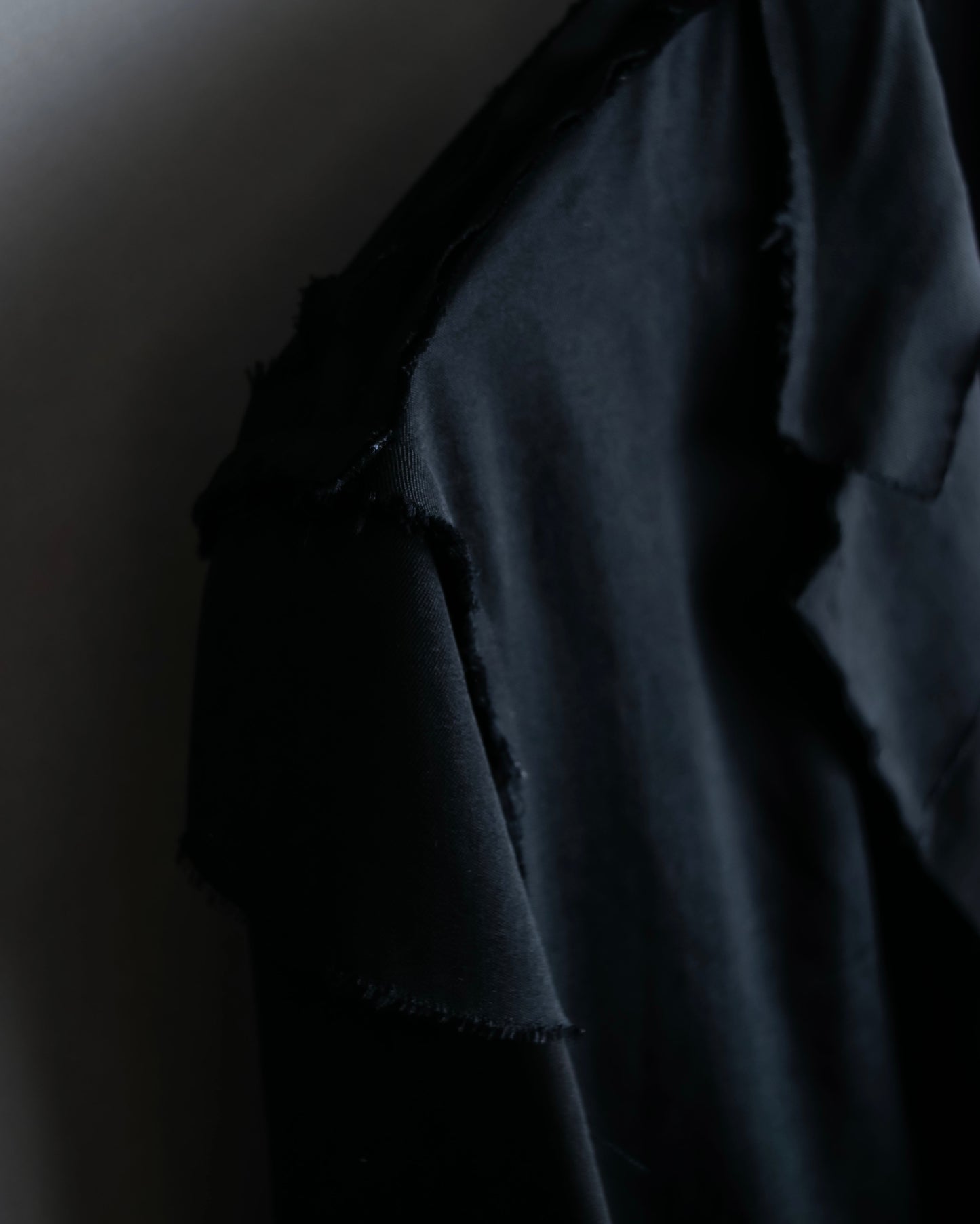 それらが生み出すアヴァンギャルドな魅力が最大の特徴となっておりますが、生地感についても極薄のポリエステルを使用している為、ここから先の季節にシャツとして長くご着用頂けるスペシャルなアイテムという側面も持ち合わせています。