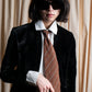 スタイリングとしては、ワイドスラックスや、光沢を抑えたニットなどを合わせることで、静かな存在感を引き立てつつ、性別を問わず柔らかさと芯の強さを兼ね備えた印象に仕上がります。ベロアやサテン、シルクなど質感に差をもたせた異素材とのレイヤードも映えますので、シーズンレスに気品あるスタイルを楽しめる逸品と言えますね。