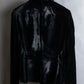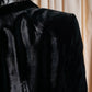 やや短めに設計された着丈と、身体に沿って自然にフィットするタイトなウエストラインは、構築的なフォルムの中にしなやかさを感じさせ、特に首元にかけて流れるように立ち上がるショールカラーが、肩から背面にかけての立体的なラインをより際立たせています。