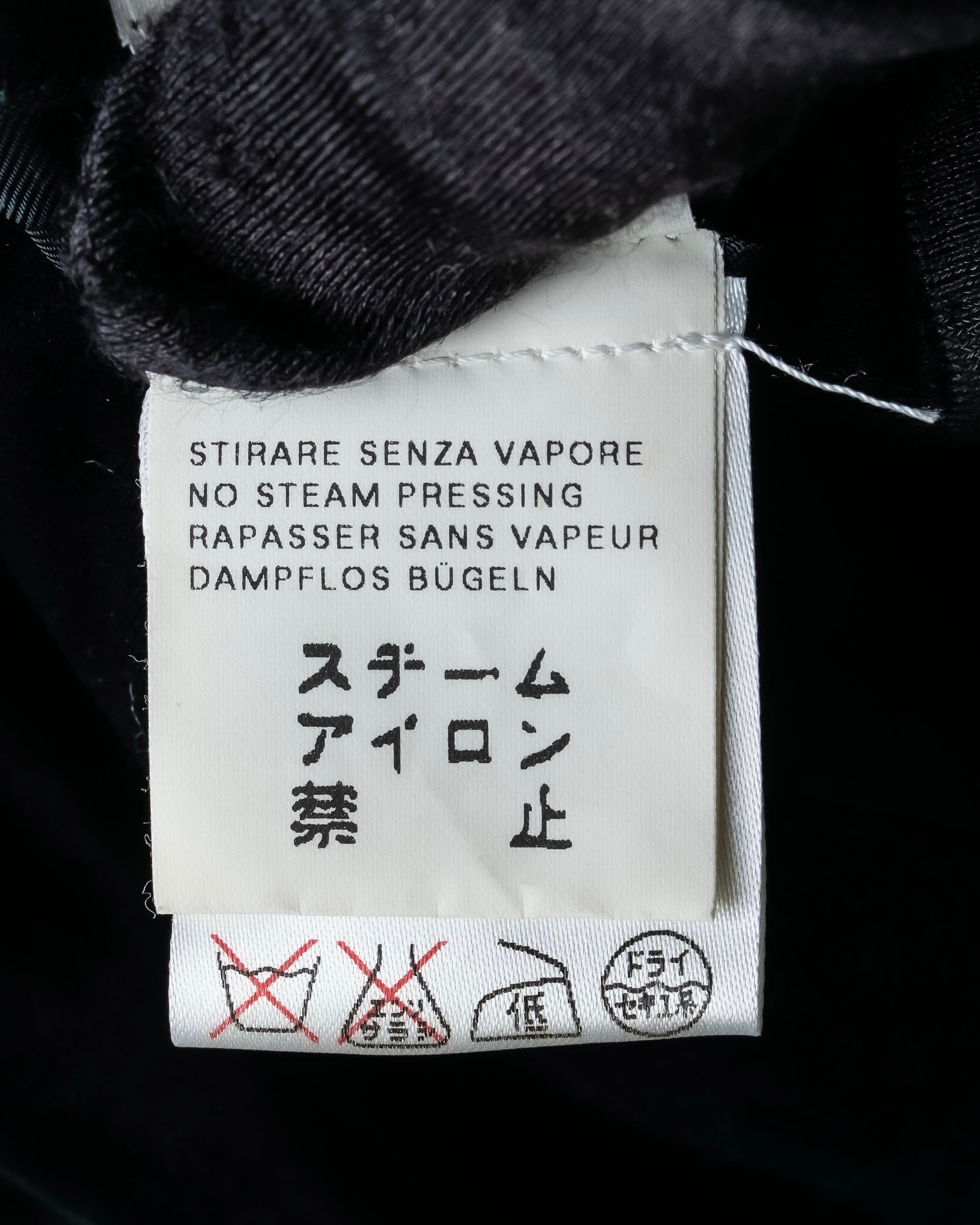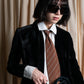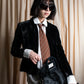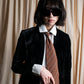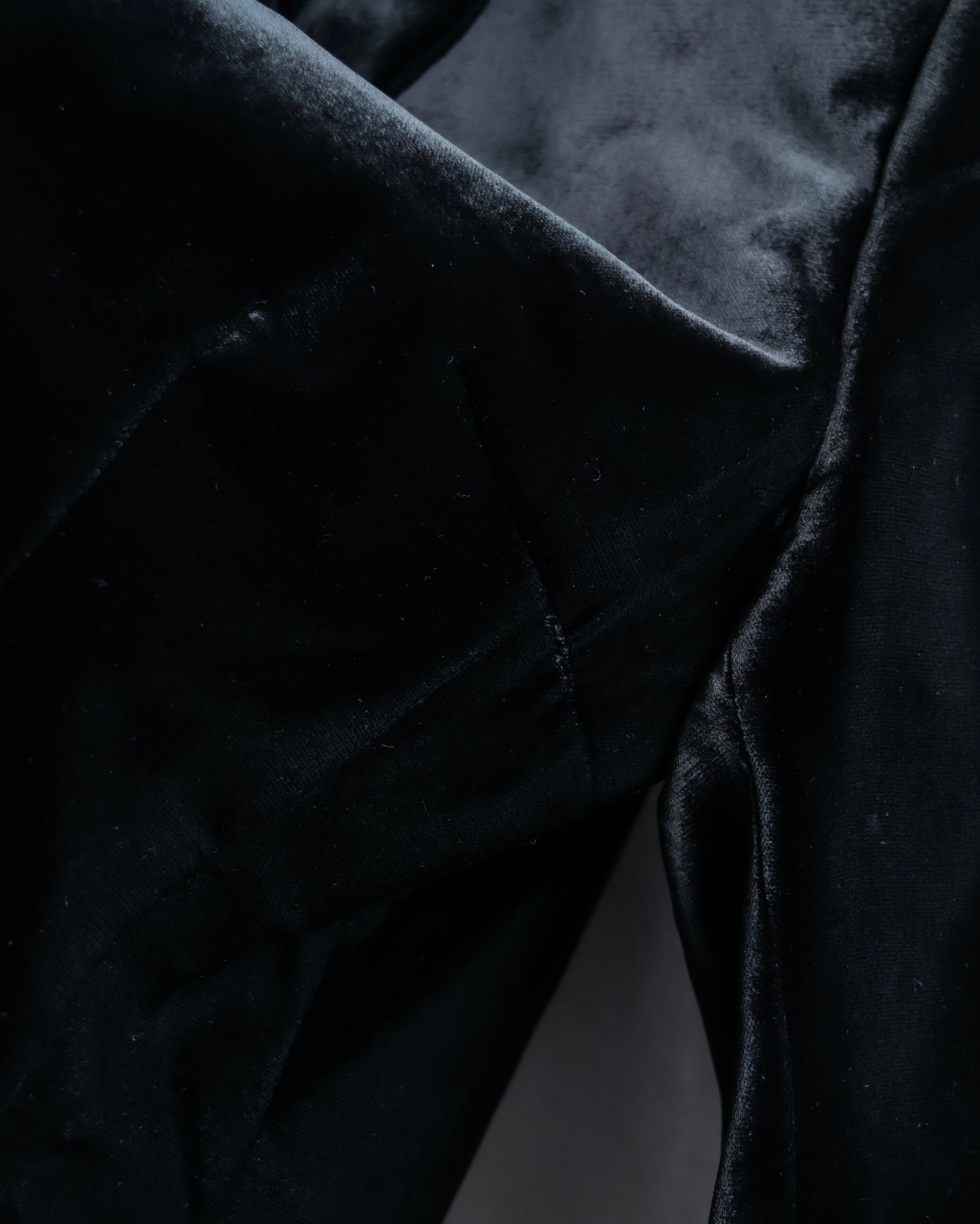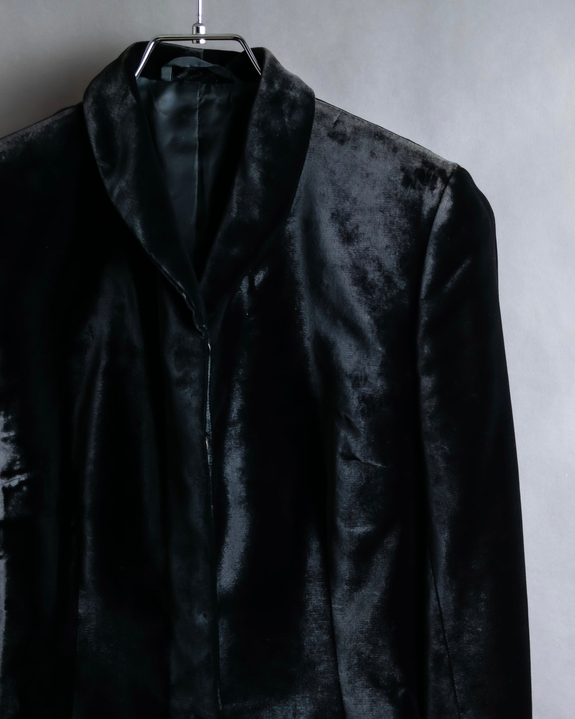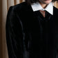 そして、フロントは比翼仕立てとなっており、ボタンを隠すことでフォルム全体にクリーンな印象をもたらし、ベルベット特有の素材感とともに、洗練された静謐さを引き立てていますね。