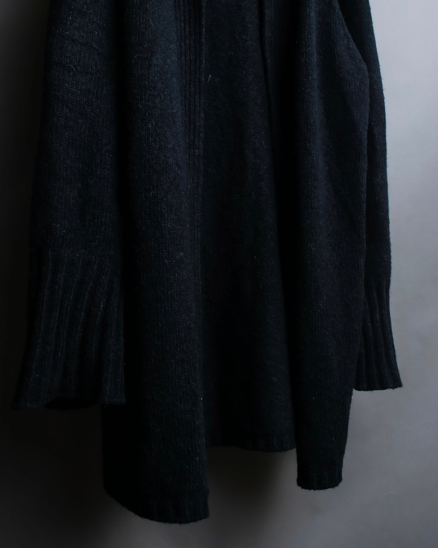 前面にボタンを取り付けないガウンのようなデザインに、91cmというかなり長めの着丈のシルエットが特徴的なこちらの逸品。ガウンのディテールは、襟口から前見頃が直線的に落ちるデザインなので、レイヤードした際にスタイリングのアクセントとなってくれます。