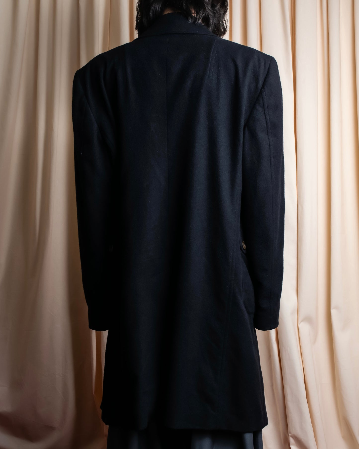 エレガントな広い肩幅とストンと落ちるオーバーサイズのシルエットは、モードな雰囲気を漂わせつつ、着る人の体型を問わず美しいラインを描いて頂けて、動きに合わせて生まれるドレープ感が、シルエットに更なる奥行きを生み出しております。