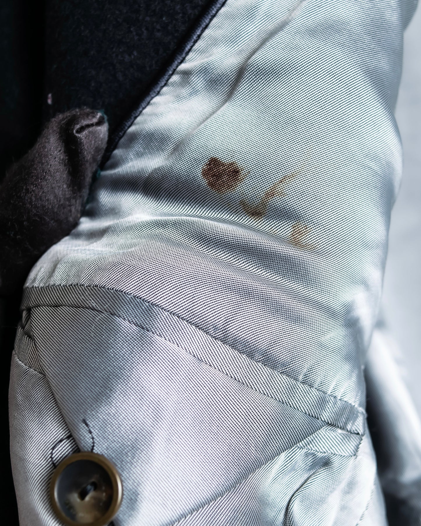 裏地スリット部分ほつれ 裏地右内ポケット部分シミ有り