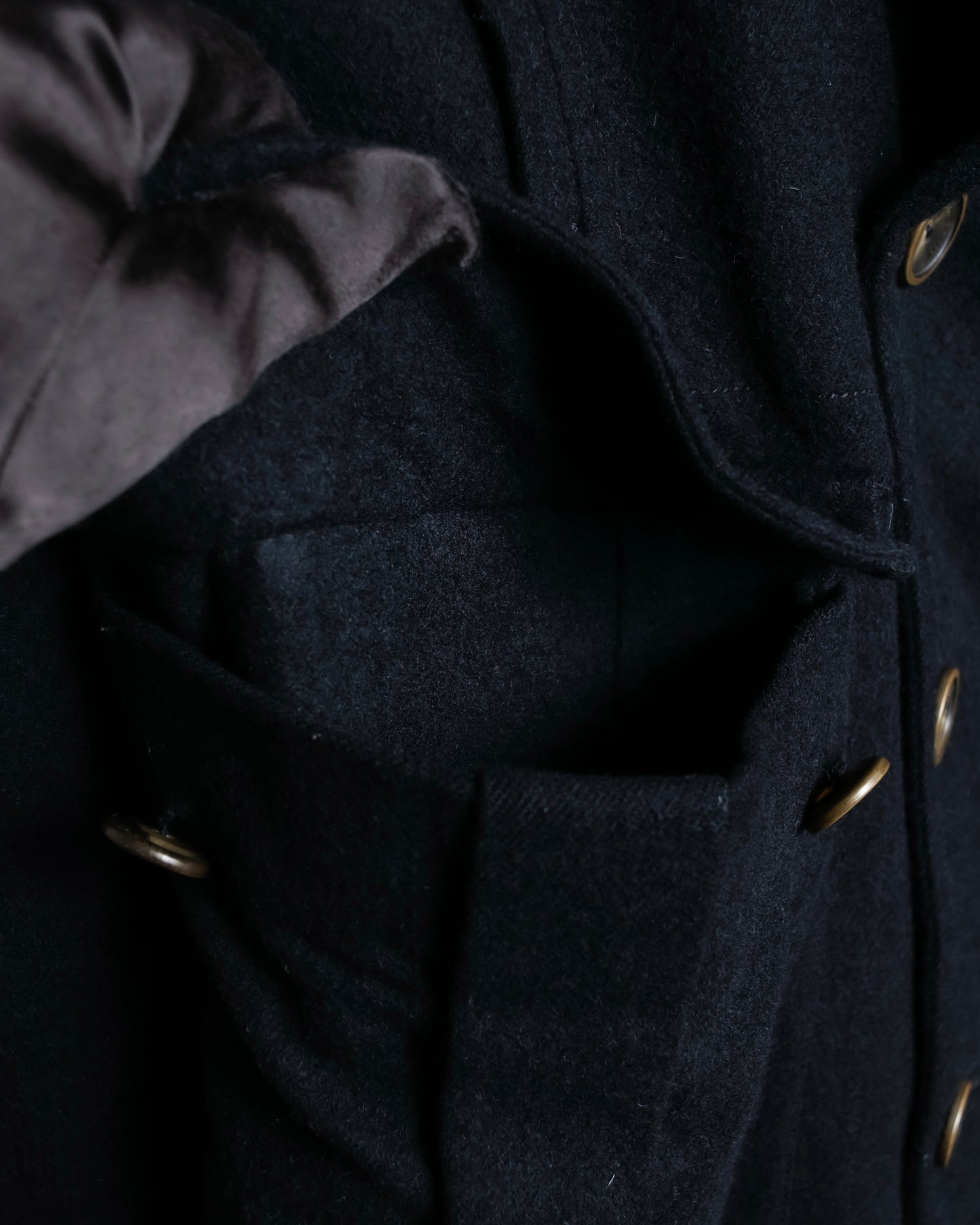 クラシカルなダブルブレストのベースに、華奢な襟が重なり合うような独特なラペルを加えることによって、適度にモード感が生まれ、唯一無二の風合いを演出しているこちらの逸品。