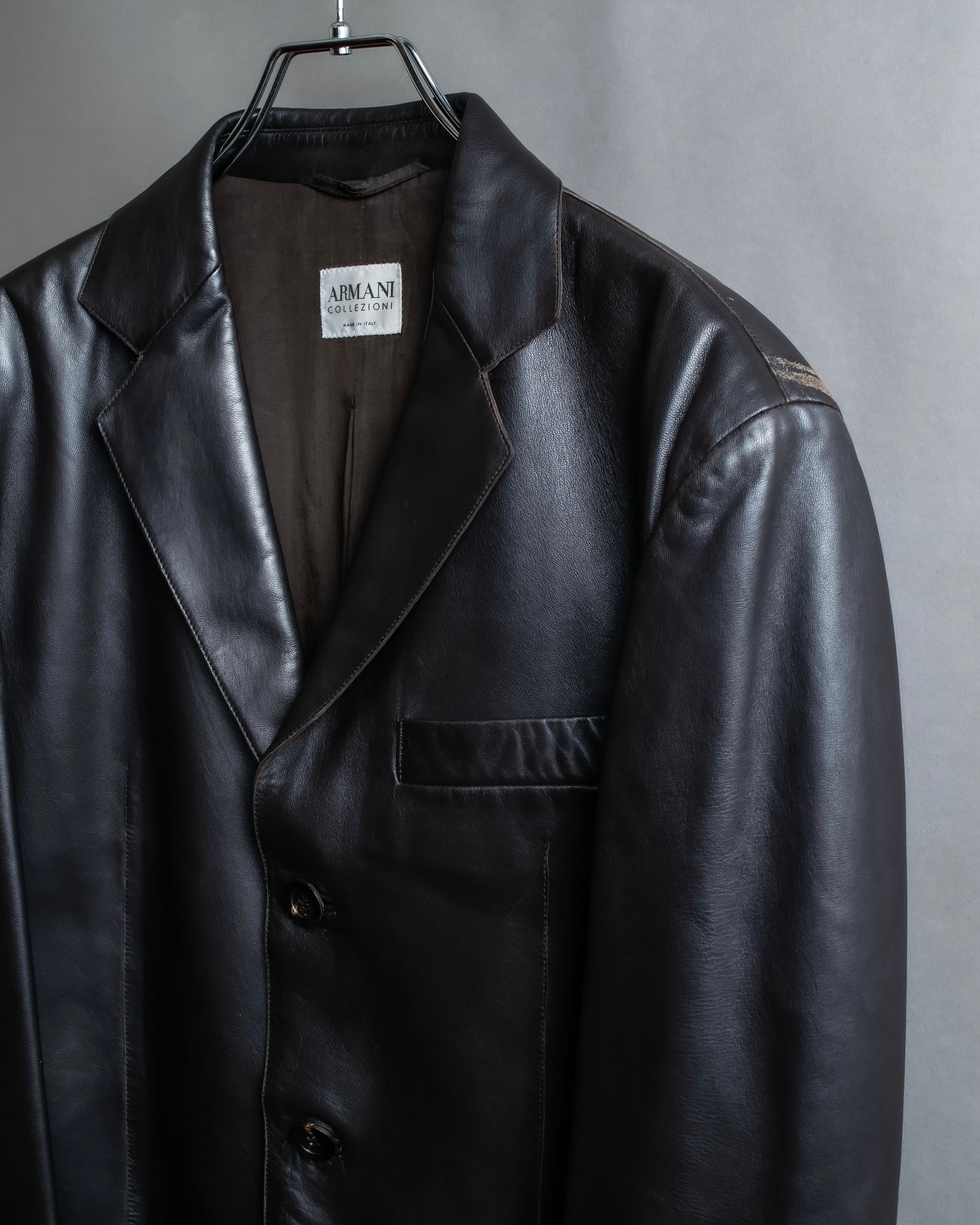 "ARMANI COLLEZIONI" 100% lamb leather oversized tailored jacket