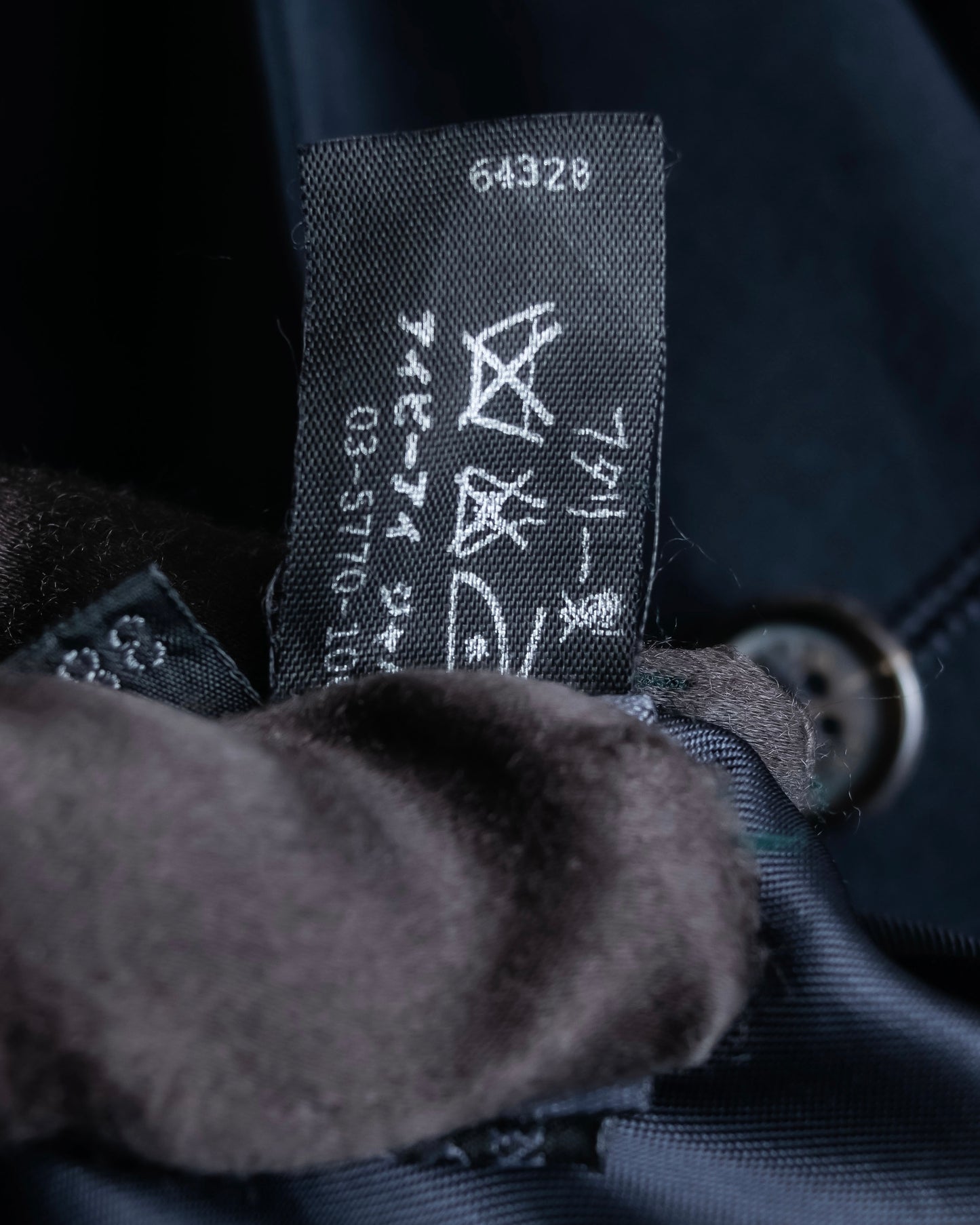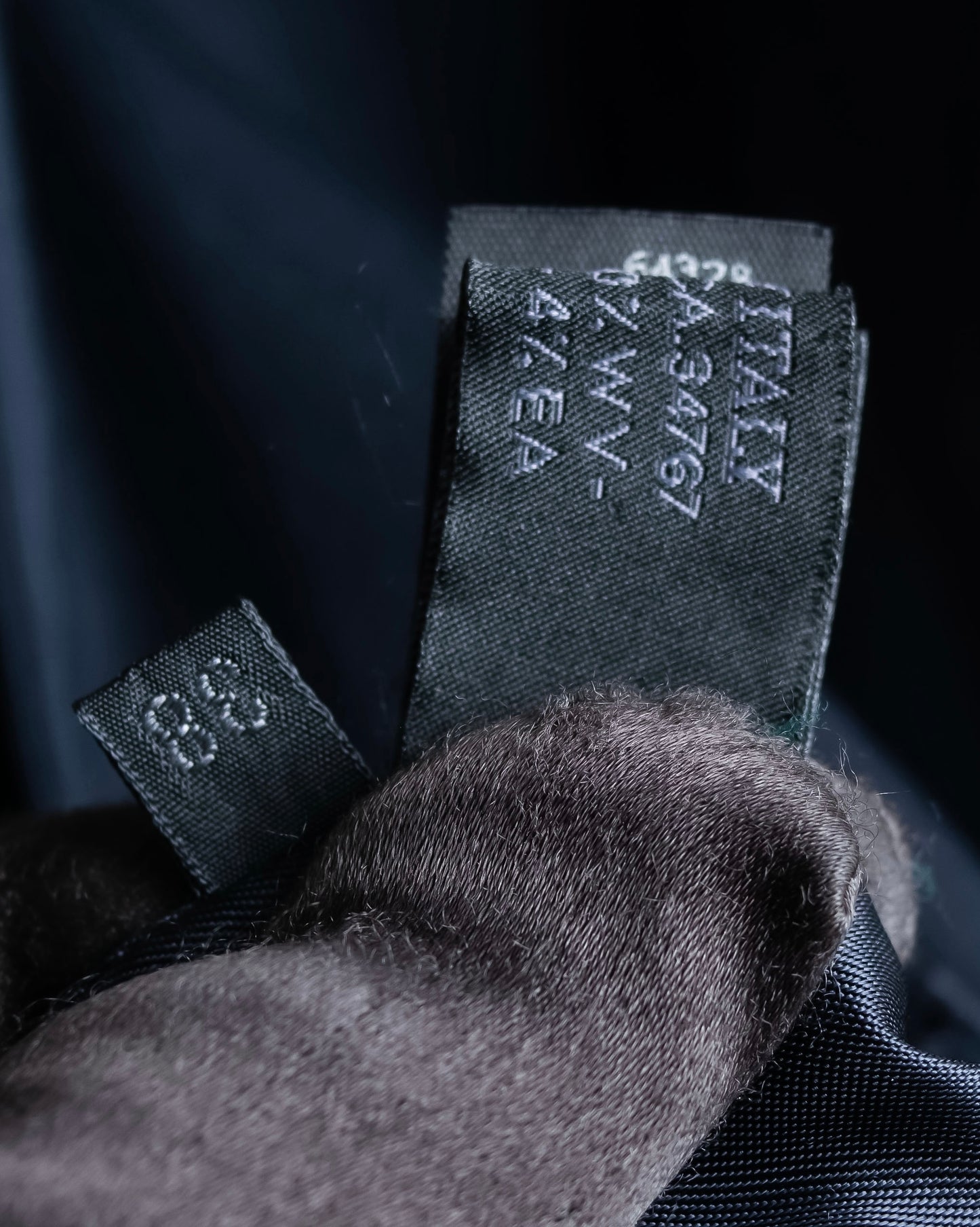 スタイリングとしては、こちらの逸品が持つジェンダーレスな風合いを活かし、インナーにボウタイブラウスを合わせ、ワイドパンツをレイヤードして頂く様な、フェミニンな上品さと攻めた着こなしの絶妙なバランスを表現するスタイリングを推奨しております。