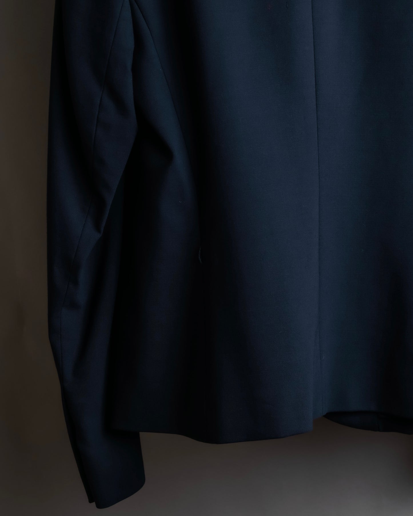 着丈の短いジャケットは、着用時のシルエットをスタイリッシュに見せる効果があるトレンドライクな印象に仕上がっており、やや肩の張ったショルダーラインとの対比が美しい逸品となっております。