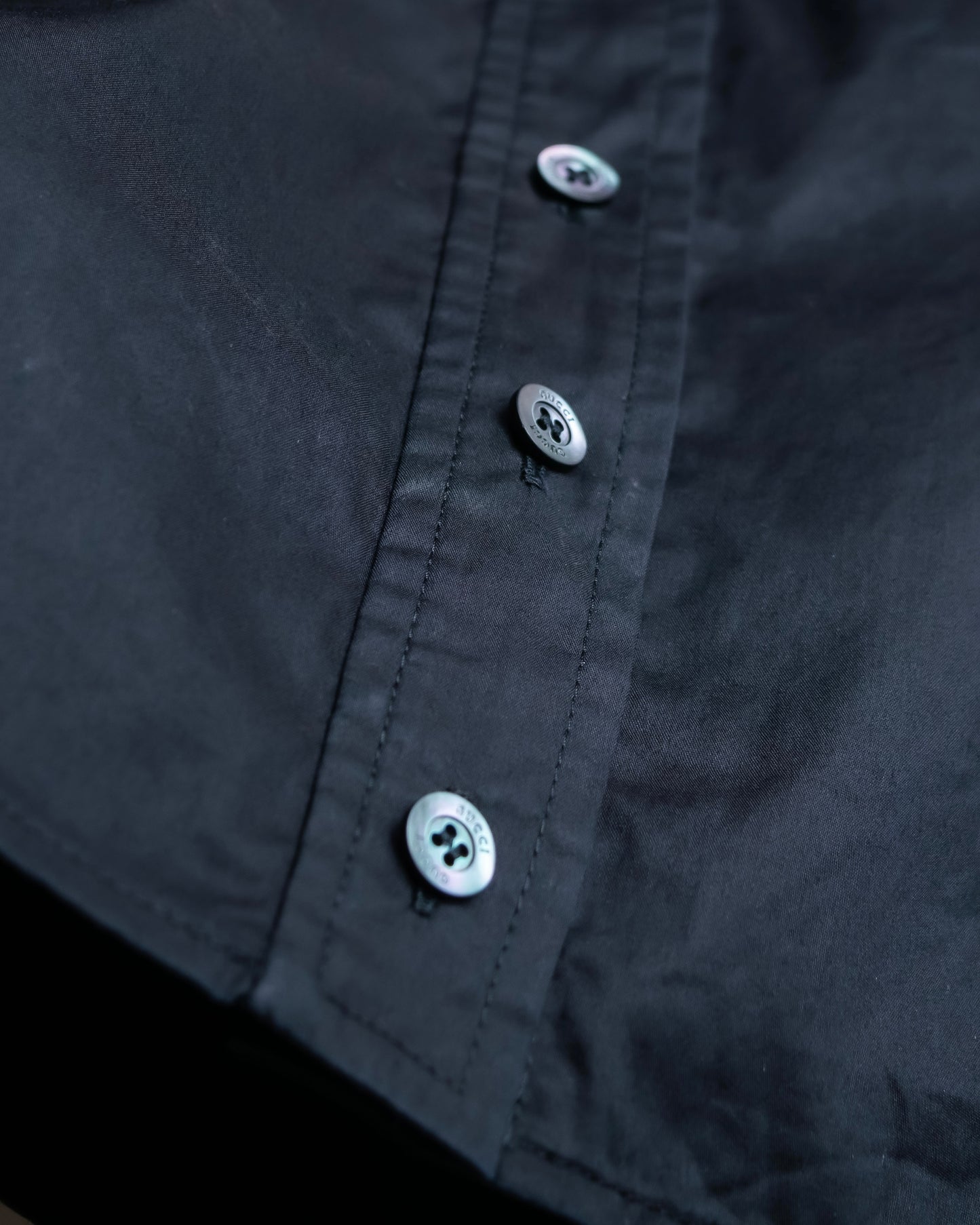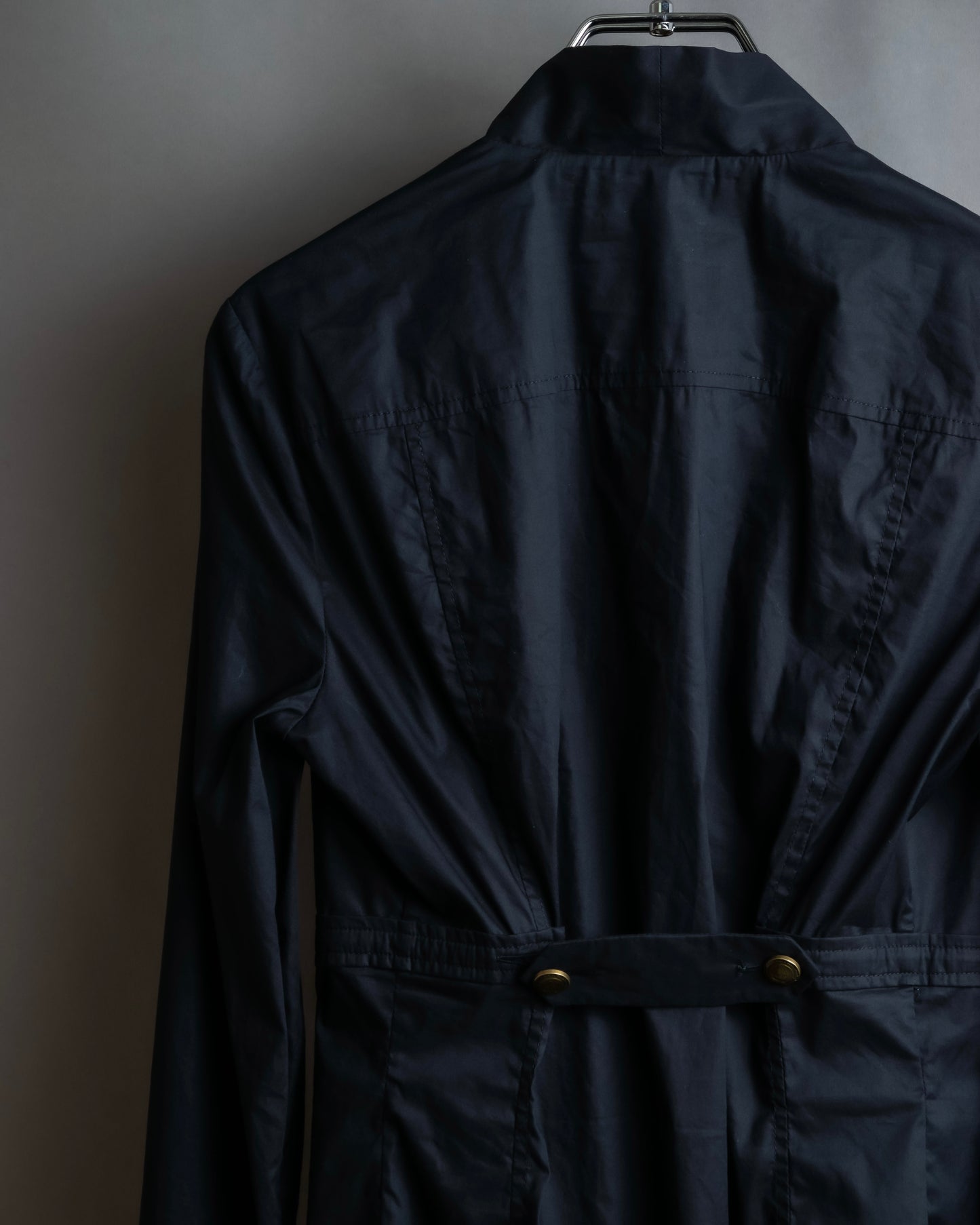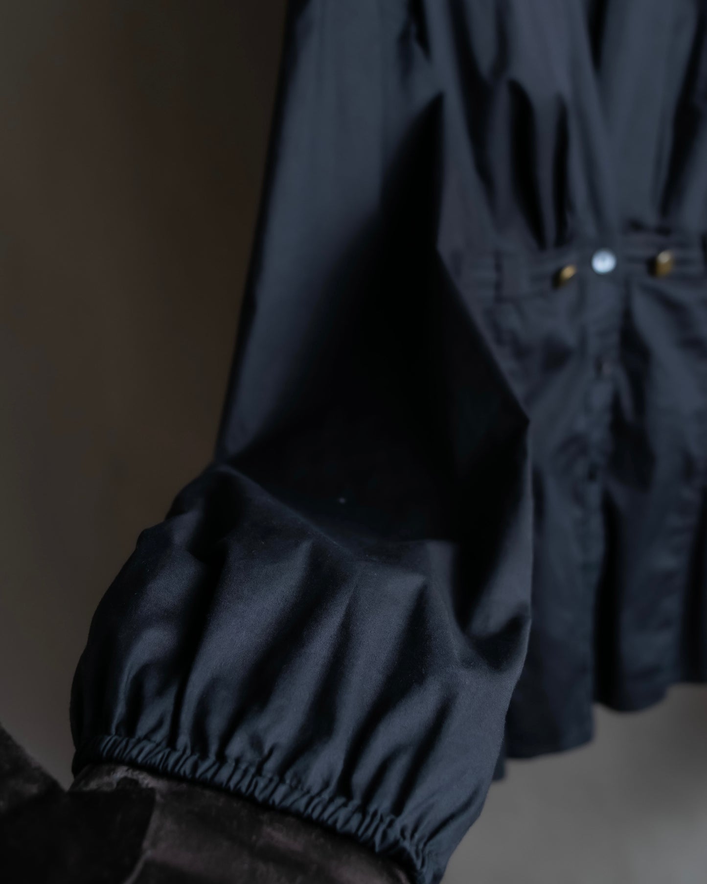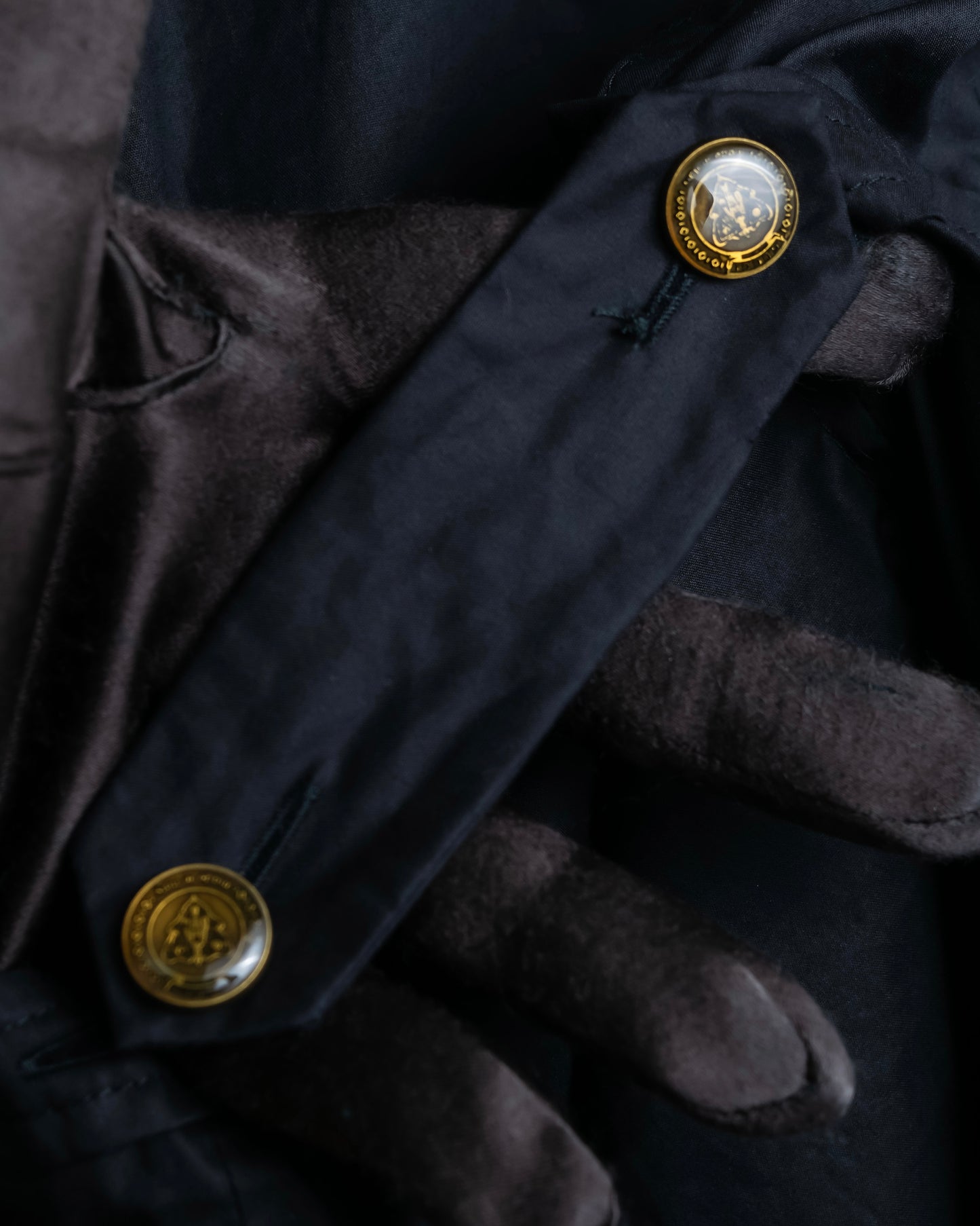 後身頃の金ボタンを外すことによりシルエットをワイドに変えることが可能となっているので、スタイリングや気分によって使い分けることが出来る細部までこだわり抜かれたディテールを持ち合わせております。