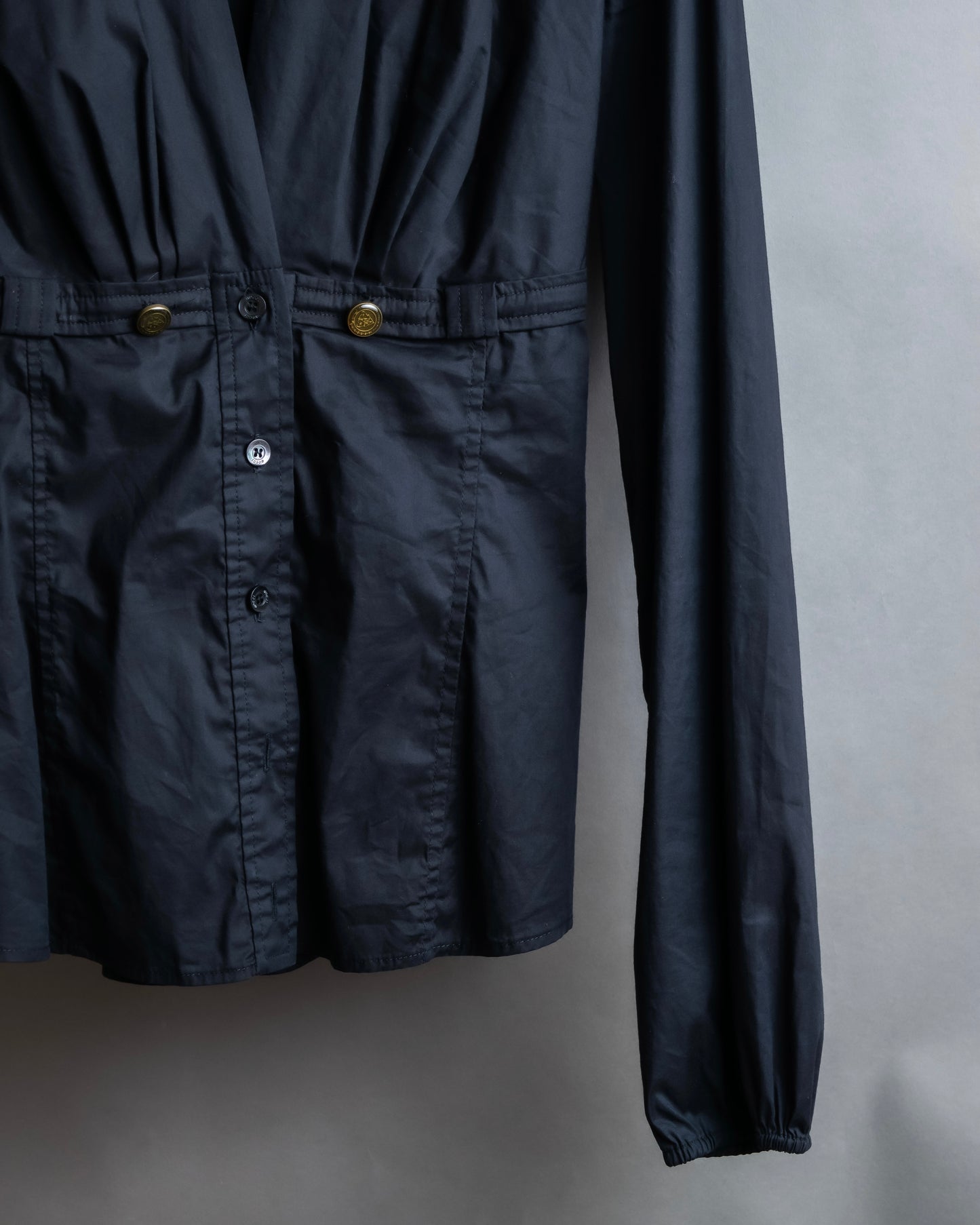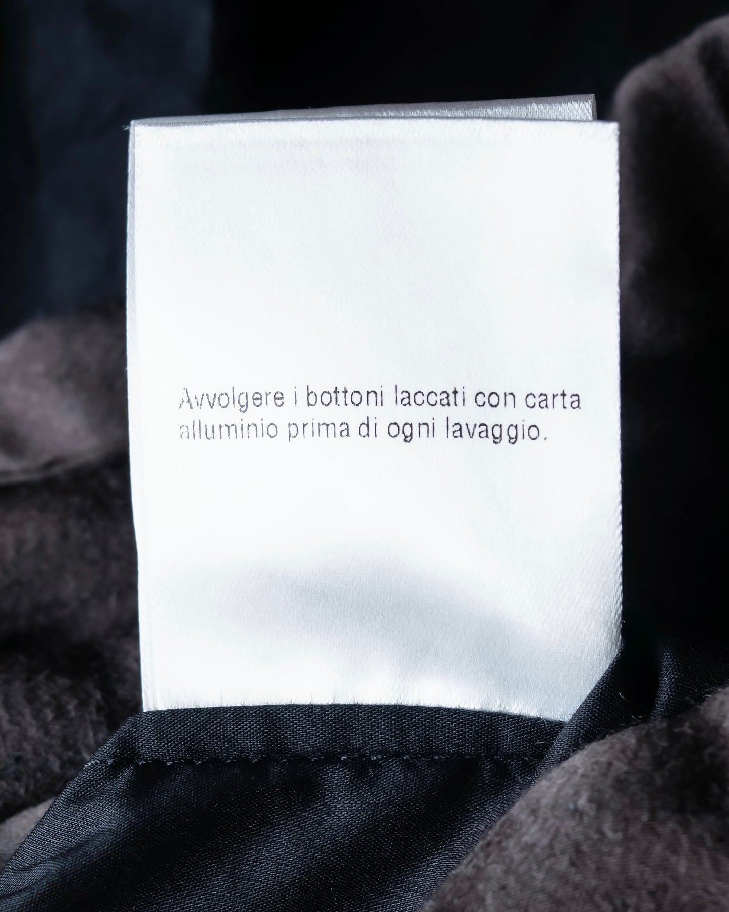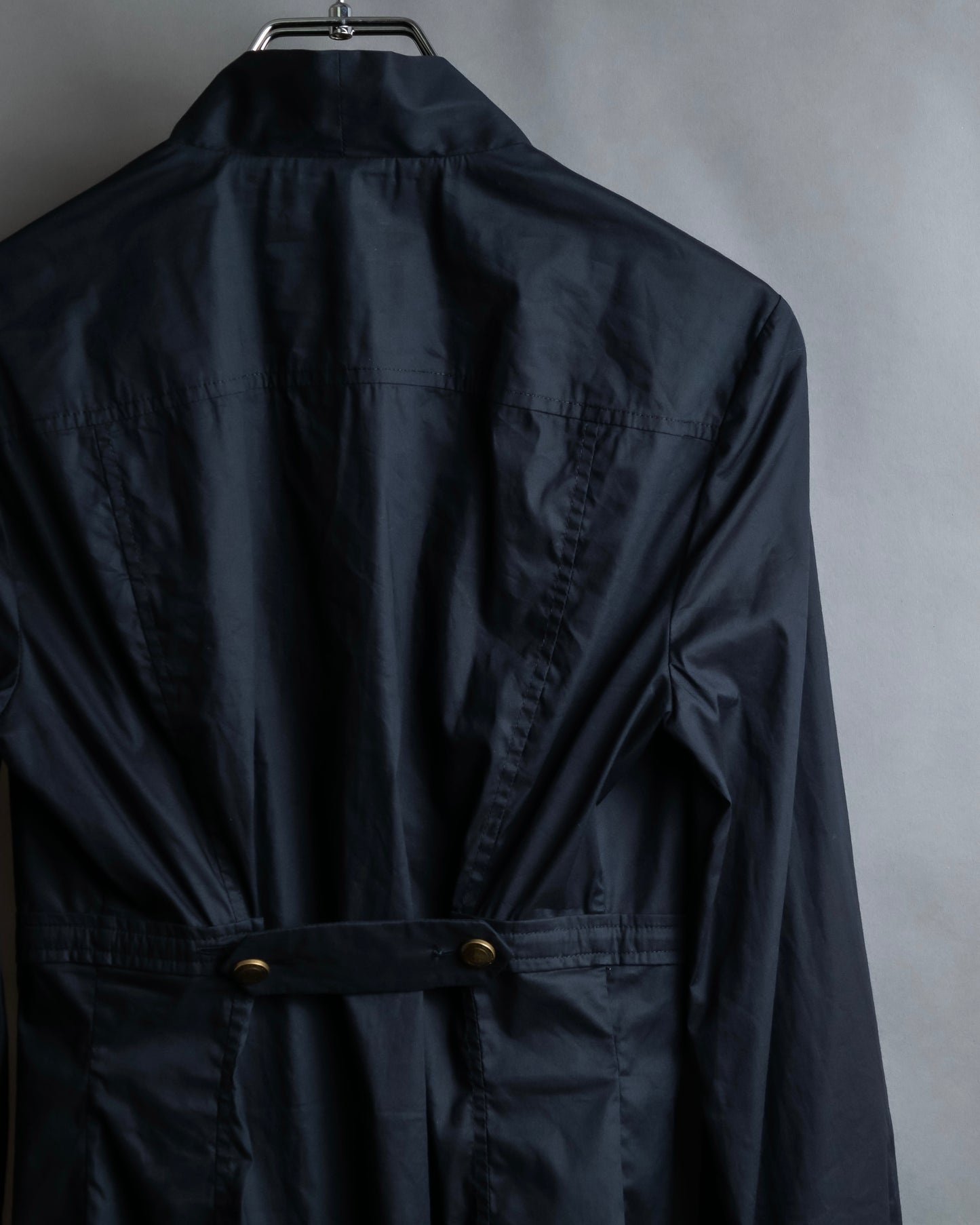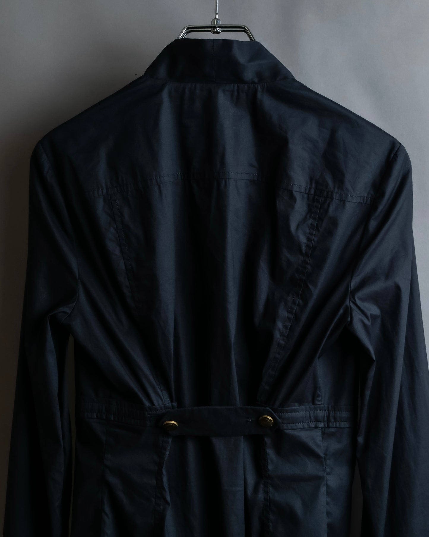 後身頃の金ボタンを外すことによりシルエットをワイドに変えることが可能となっているので、スタイリングや気分によって使い分けることが出来る細部までこだわり抜かれたディテールを持ち合わせております。