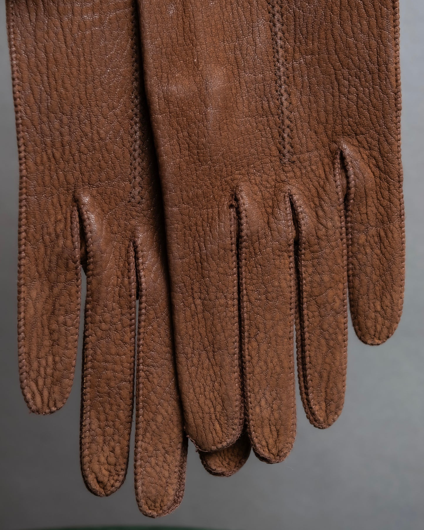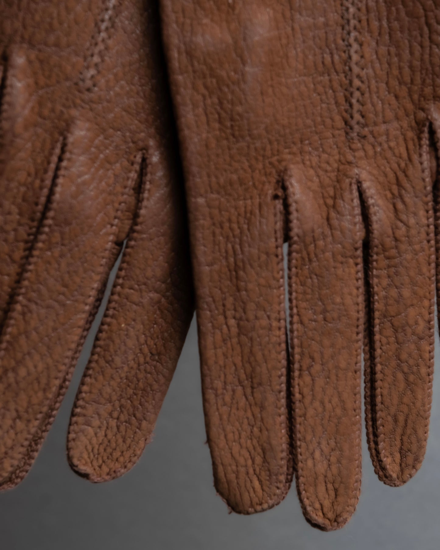 お色味は上品なキャメルブラウンとなっており、市場に多く出回っている黒のレザーグローブよりも、柔らかい印象に仕上がる為、秋冬に向けてグローブを取り入れてみたいという方のエントリーモデルとしてお勧め出来る逸品となっております。
